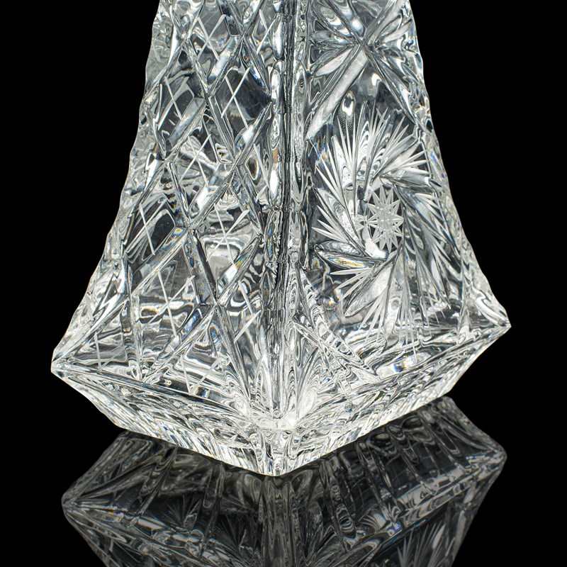 Tapered sides with diamond crosshatch cut pattern, enhancing light play