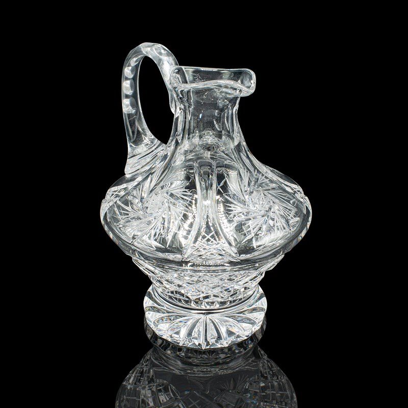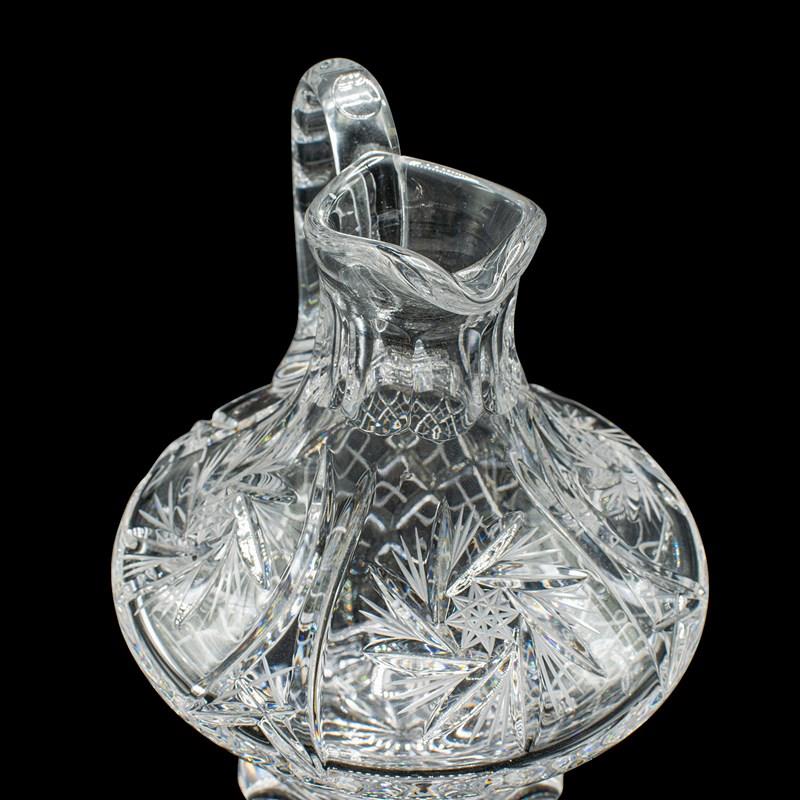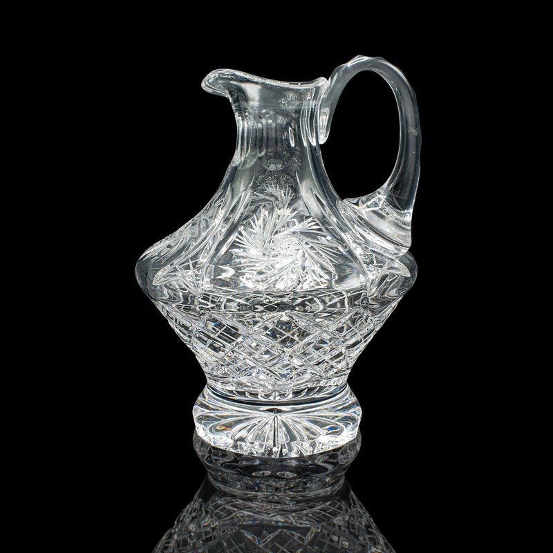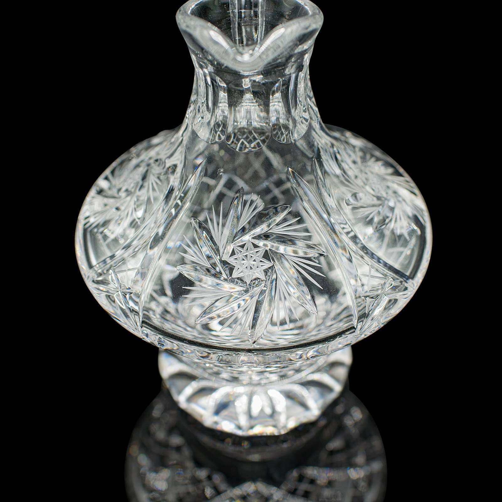 This is a delightful vintage whiskey waterer. An English, cut crystal glass pouring ewer, dating to mid 20th century, circa 1950.