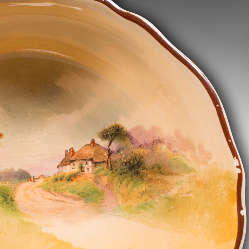 This is a delightful vintage decorative footed bowl with appealing landscape detail and great colour. Delivered polished and ready to display.