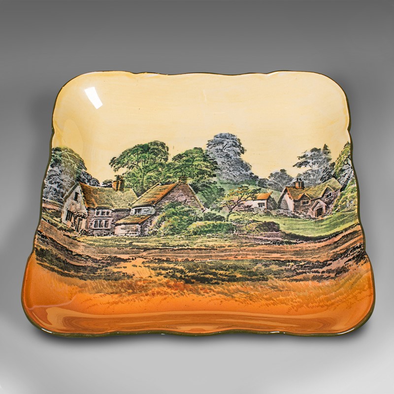 Vintage Decorative Square Dish, English, Ceramic Serving Plate, Early 20th, 1930