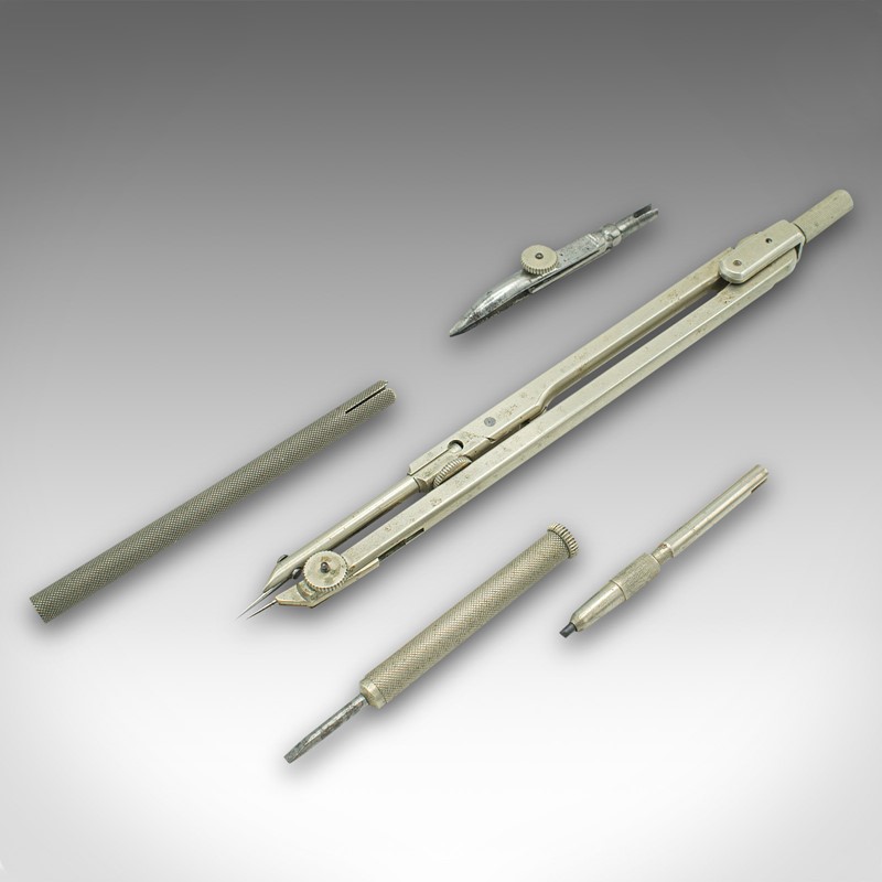 This is a vintage draughtsman's set. A German, nickel silver drawing instrument set by E.O. Richter Präcision, dating to the mid 20th century, circa 1930.