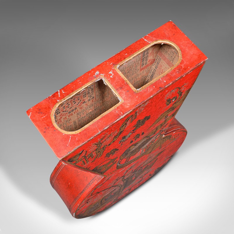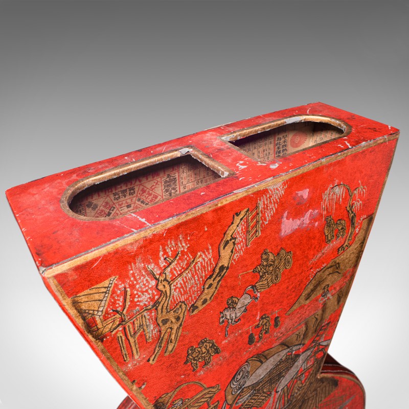 This is a vintage dried flower vase. A Chinese, waxed paper over board decorative drum vase, dating to the late 20th century, circa 1970.