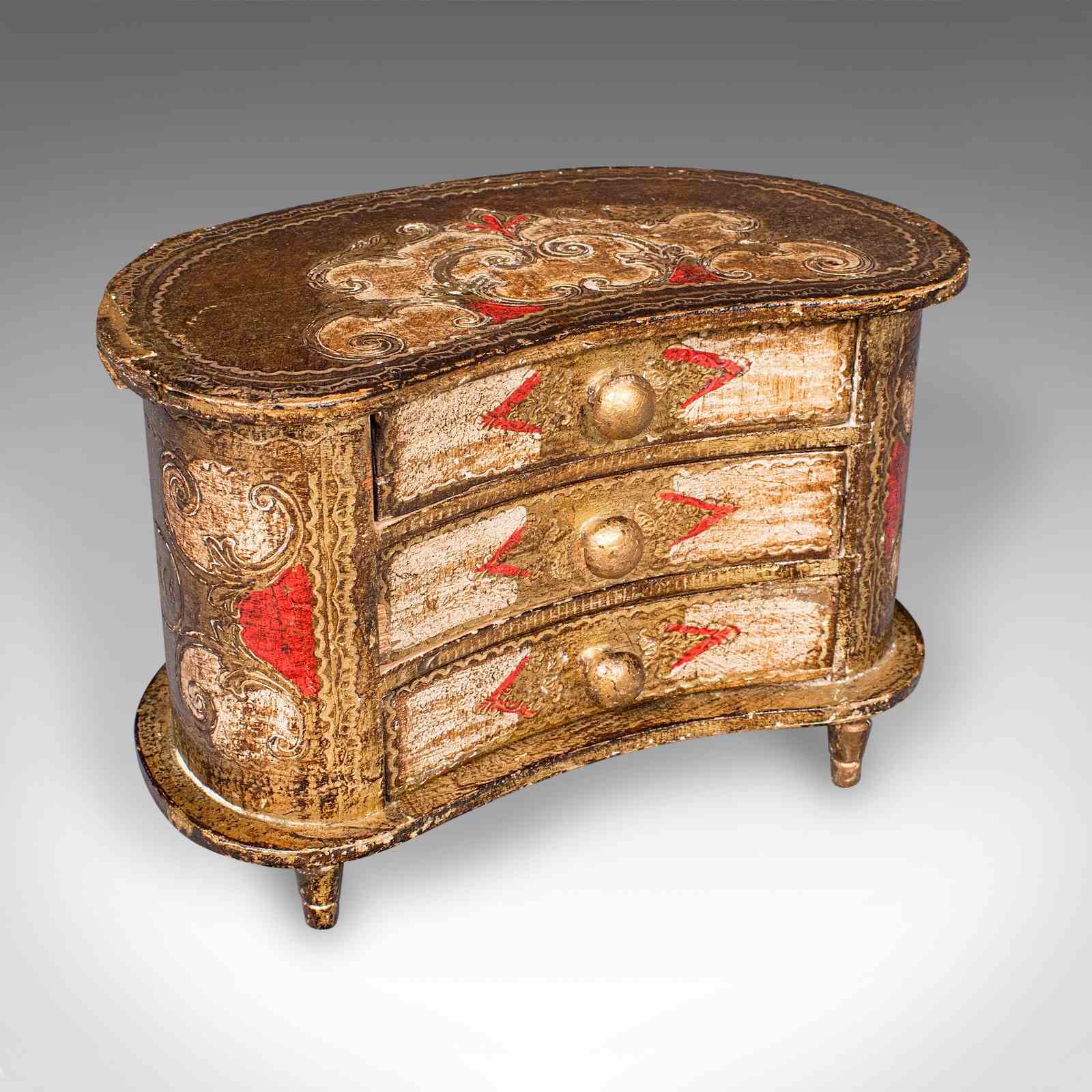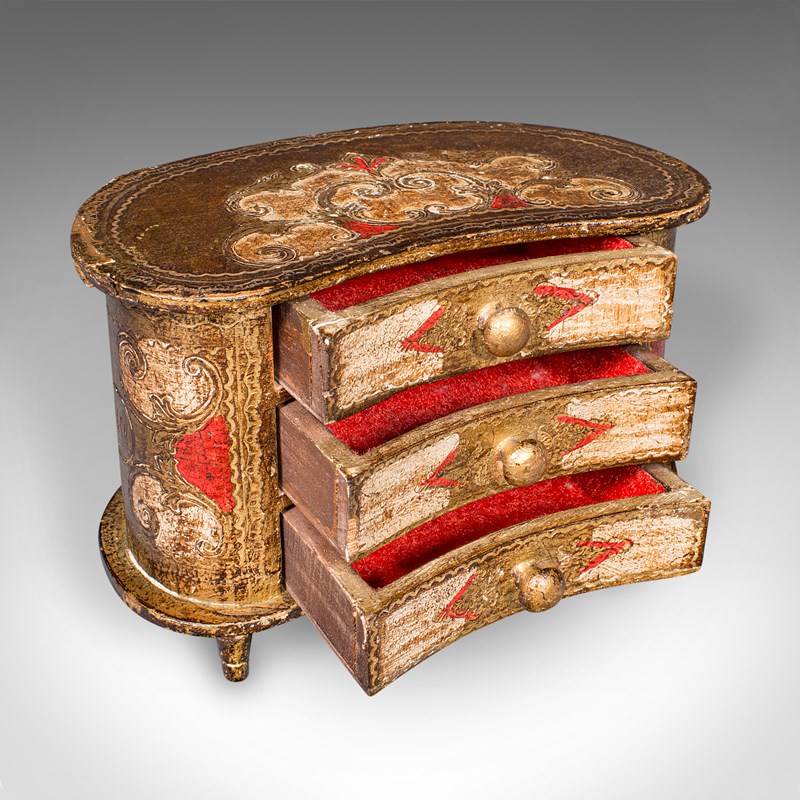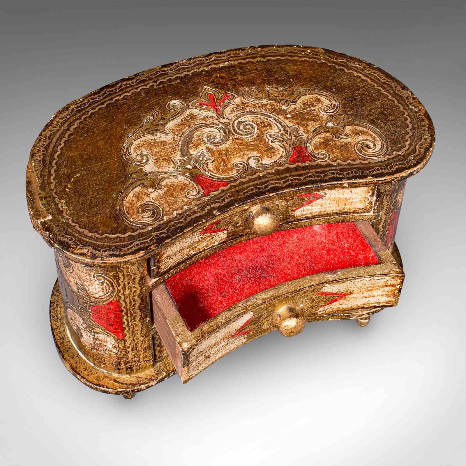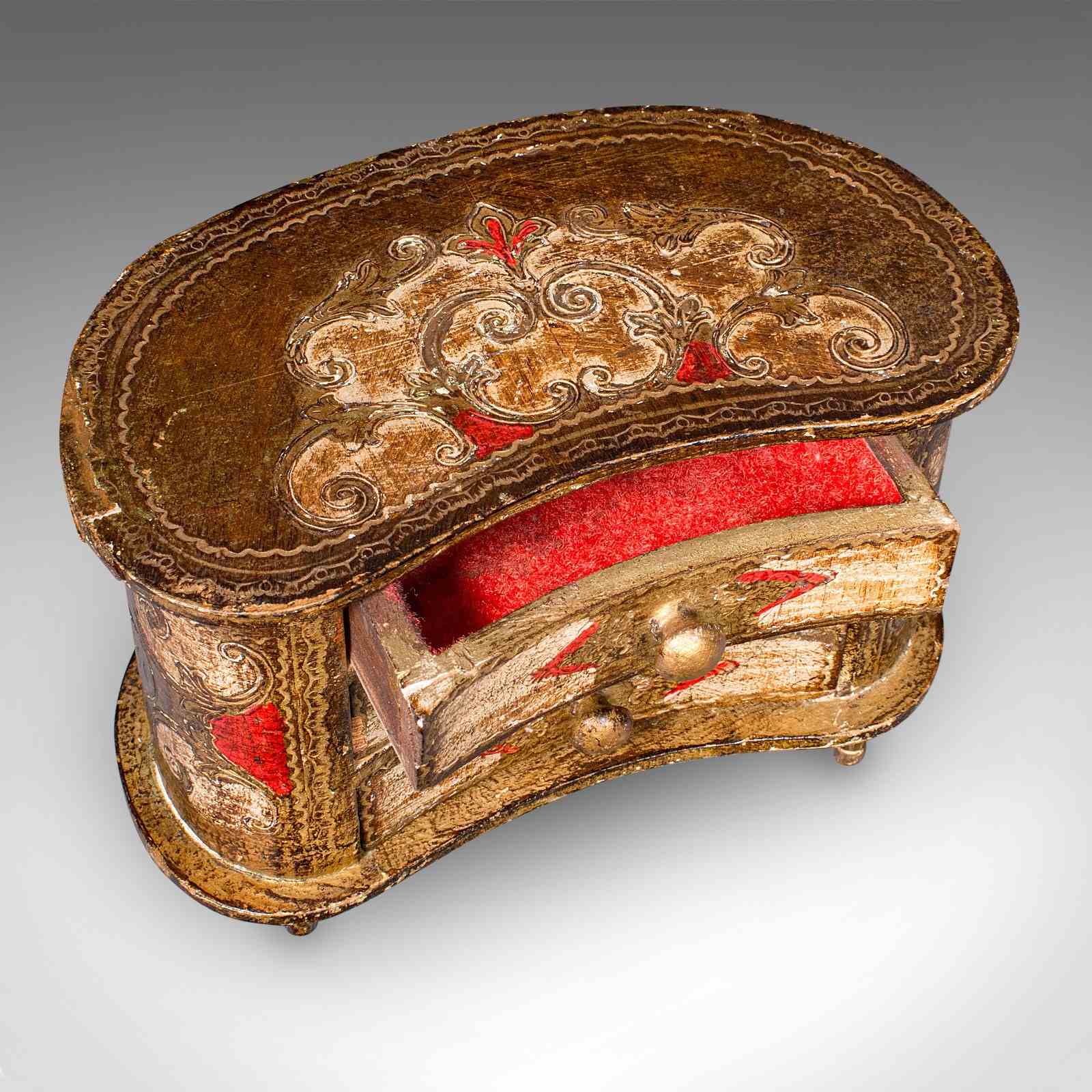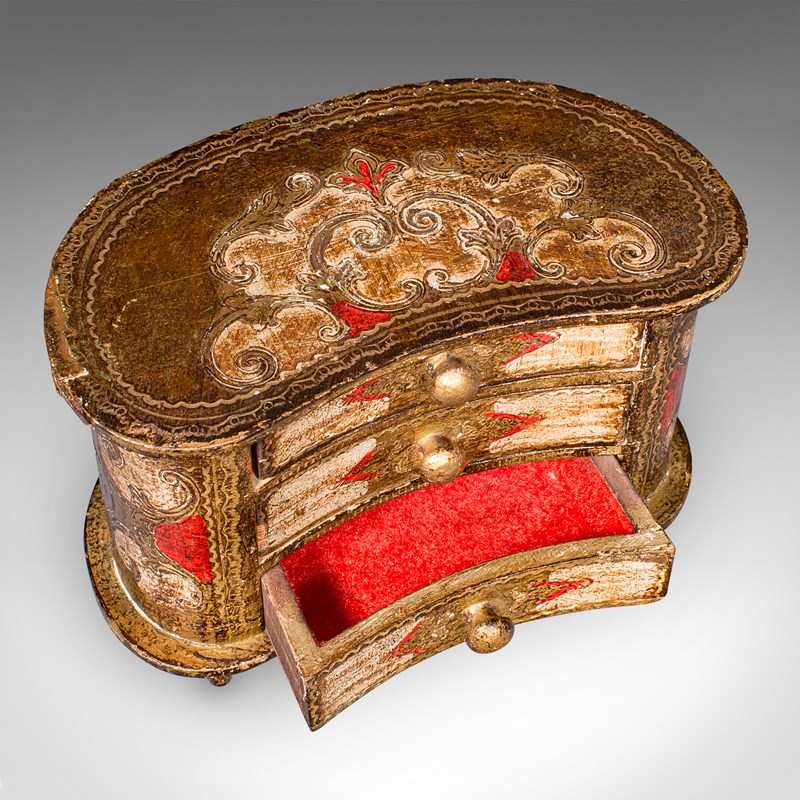 This vintage Florentine jewellery chest makes a beautiful decorative piece while offering practical storage, an elegant addition to any dressing table or collection of Italian giltwood furniture. Delivered ready for the home.
