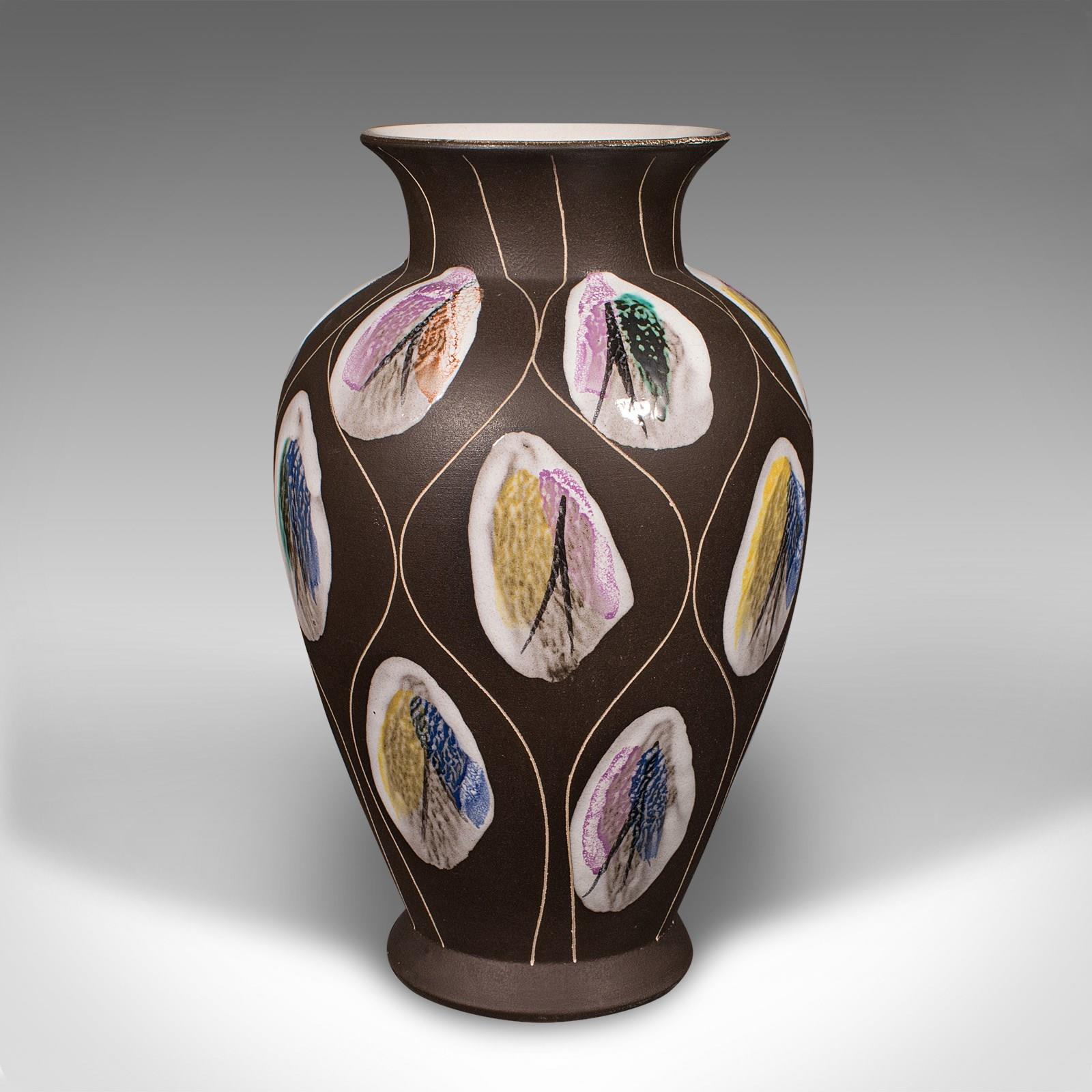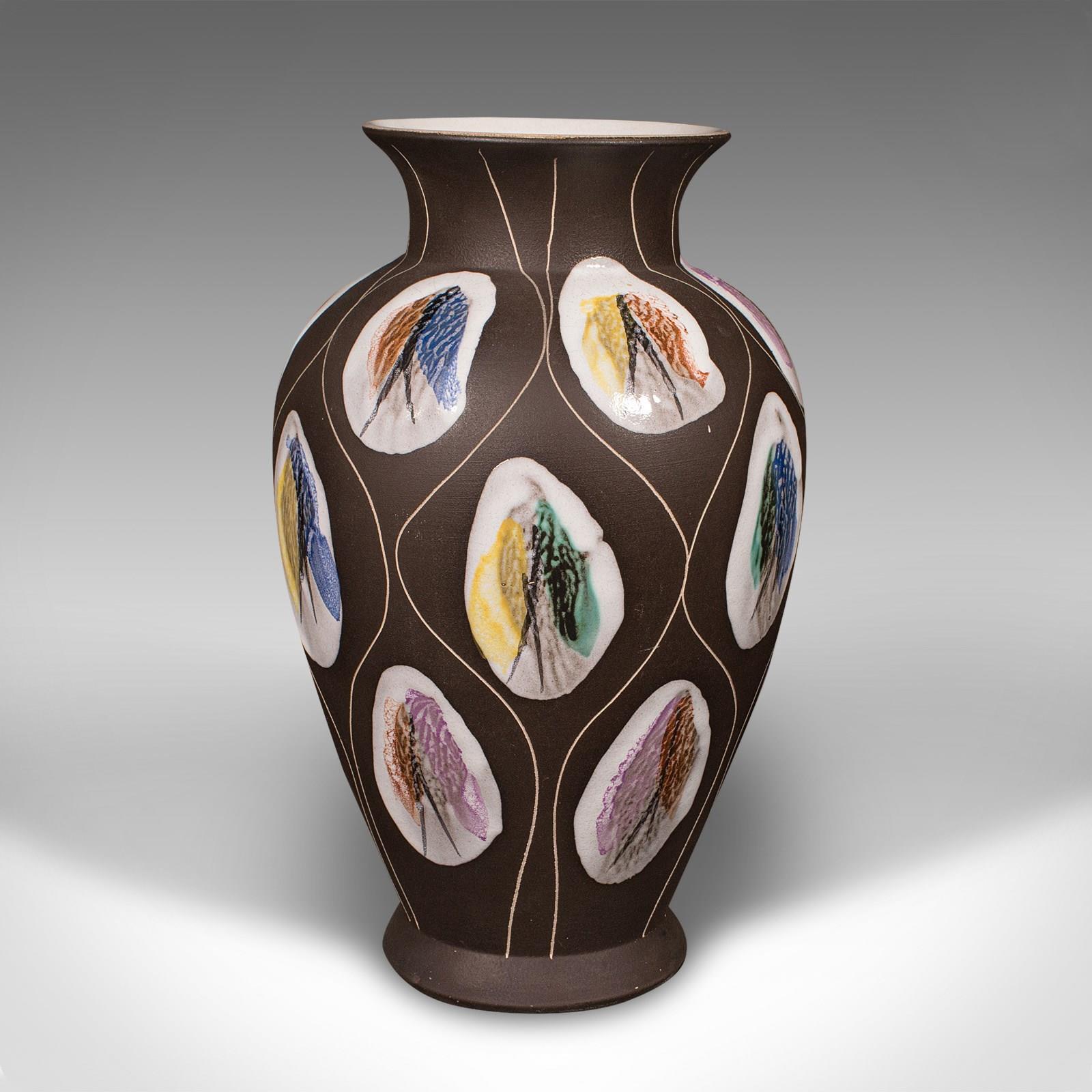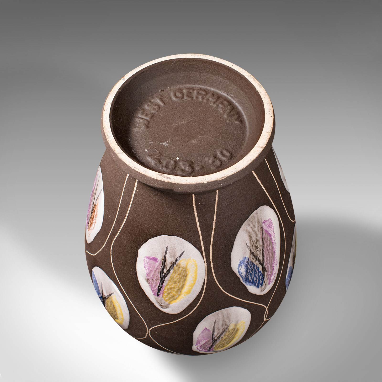 This is a vintage flower vase. A German, matte ceramic display urn, dating to the mid century period, circa 1960.