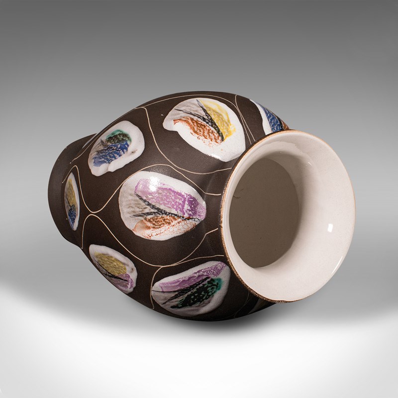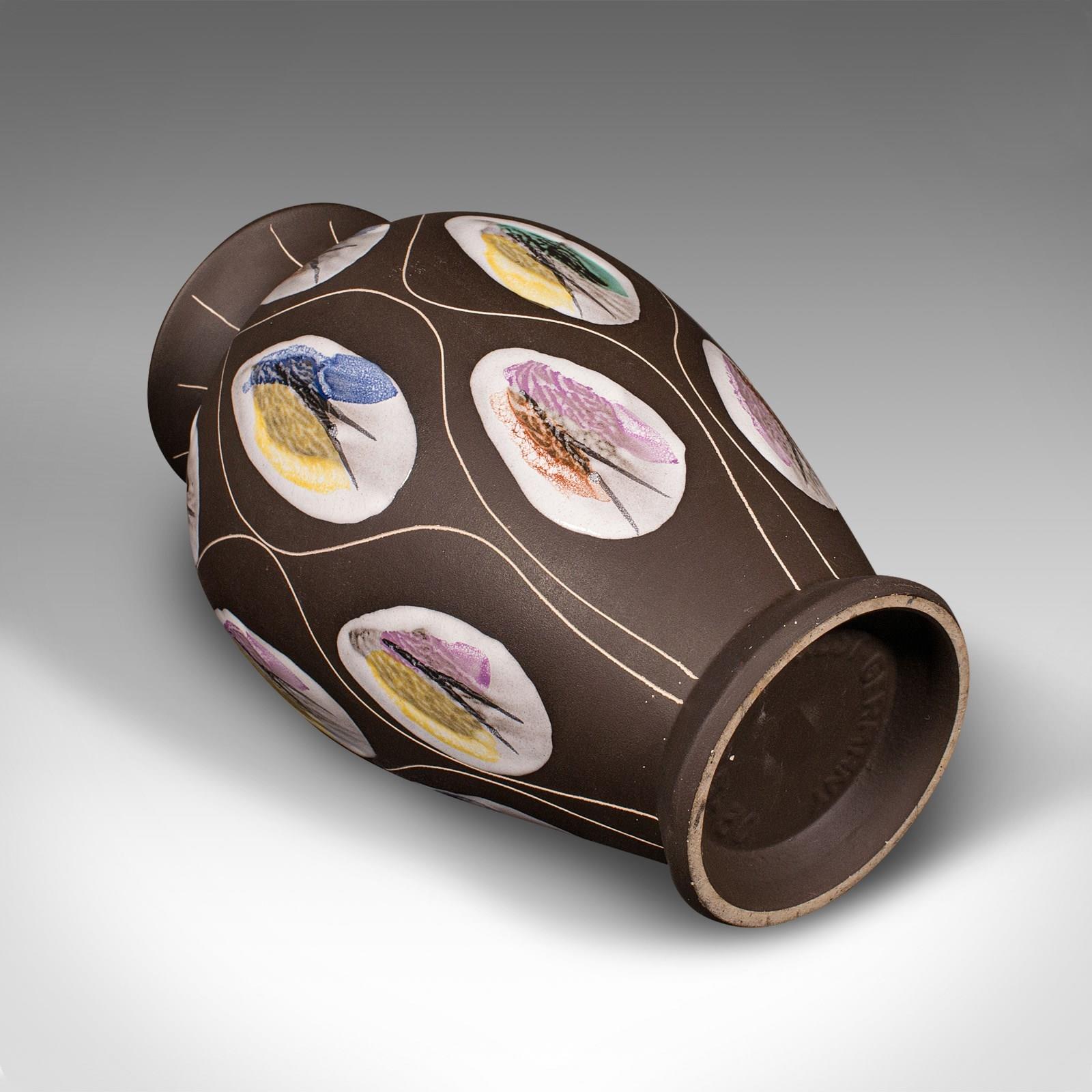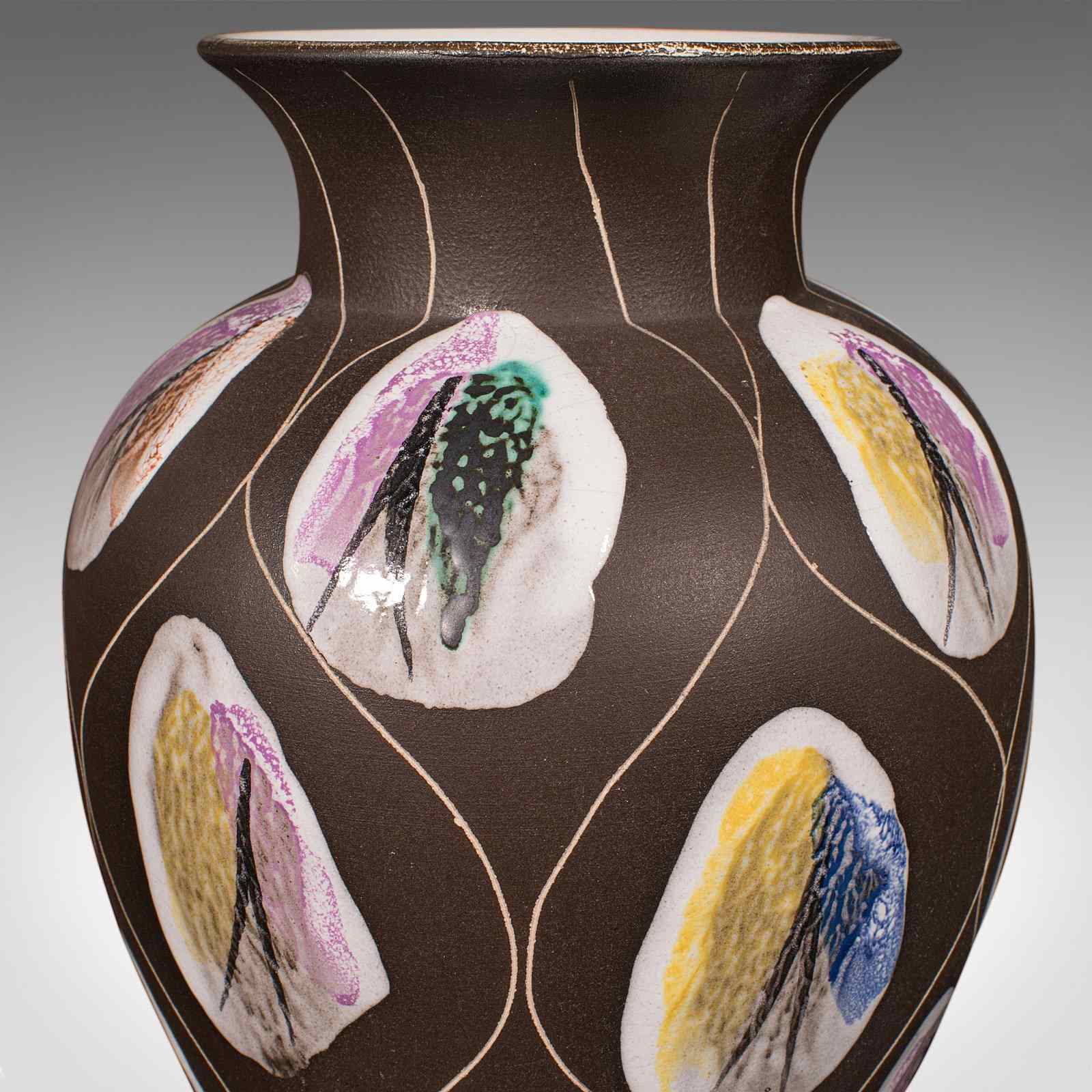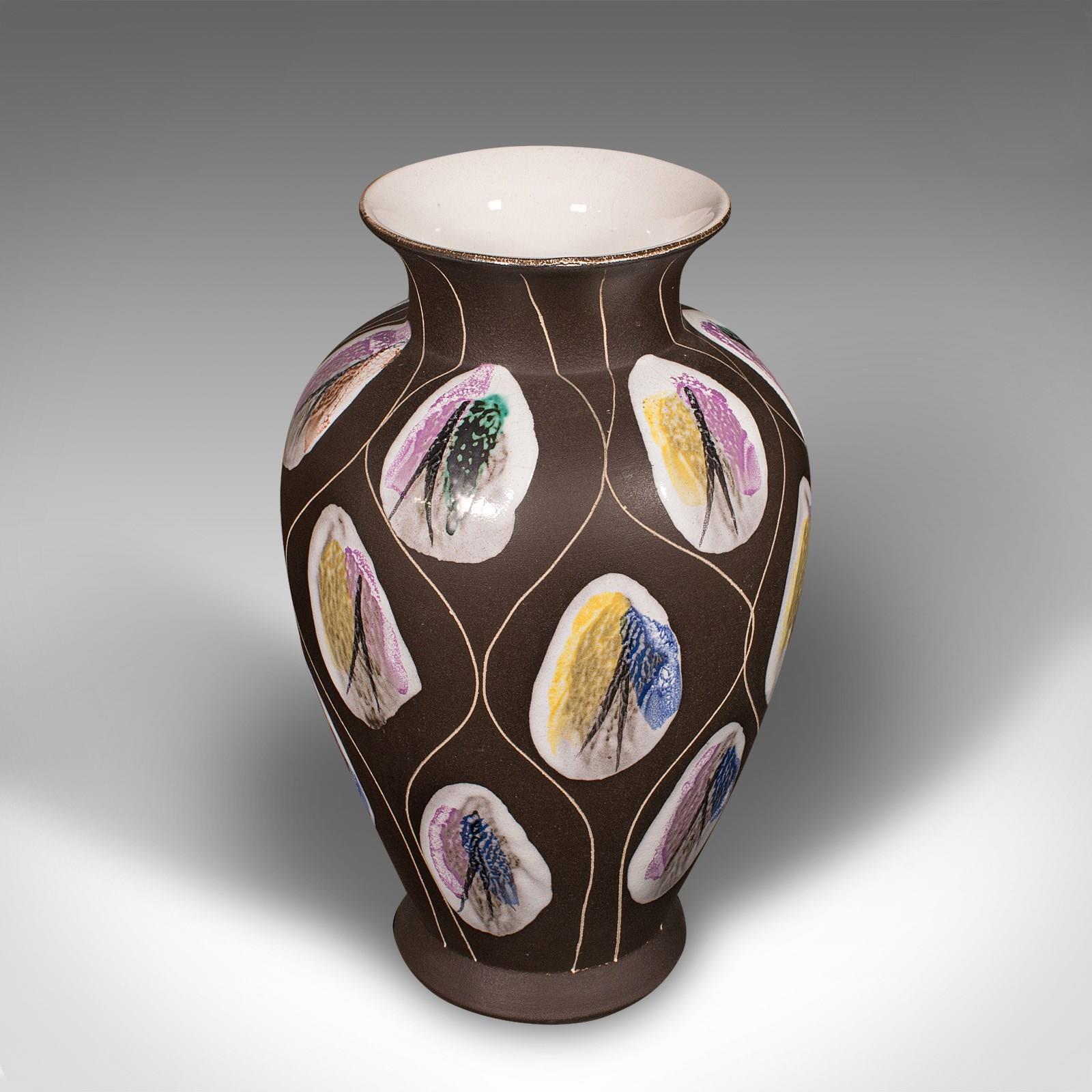 This is a vintage flower vase. A German, matte ceramic display urn, dating to the mid century period, circa 1960.
