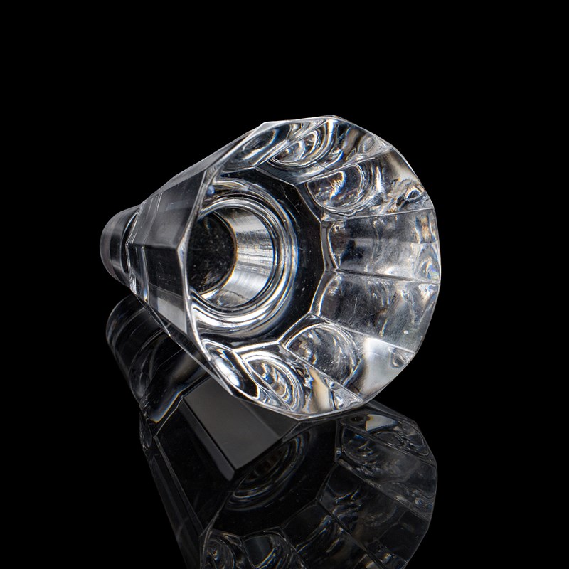 Tapering faceted stopper sits neatly within the neck