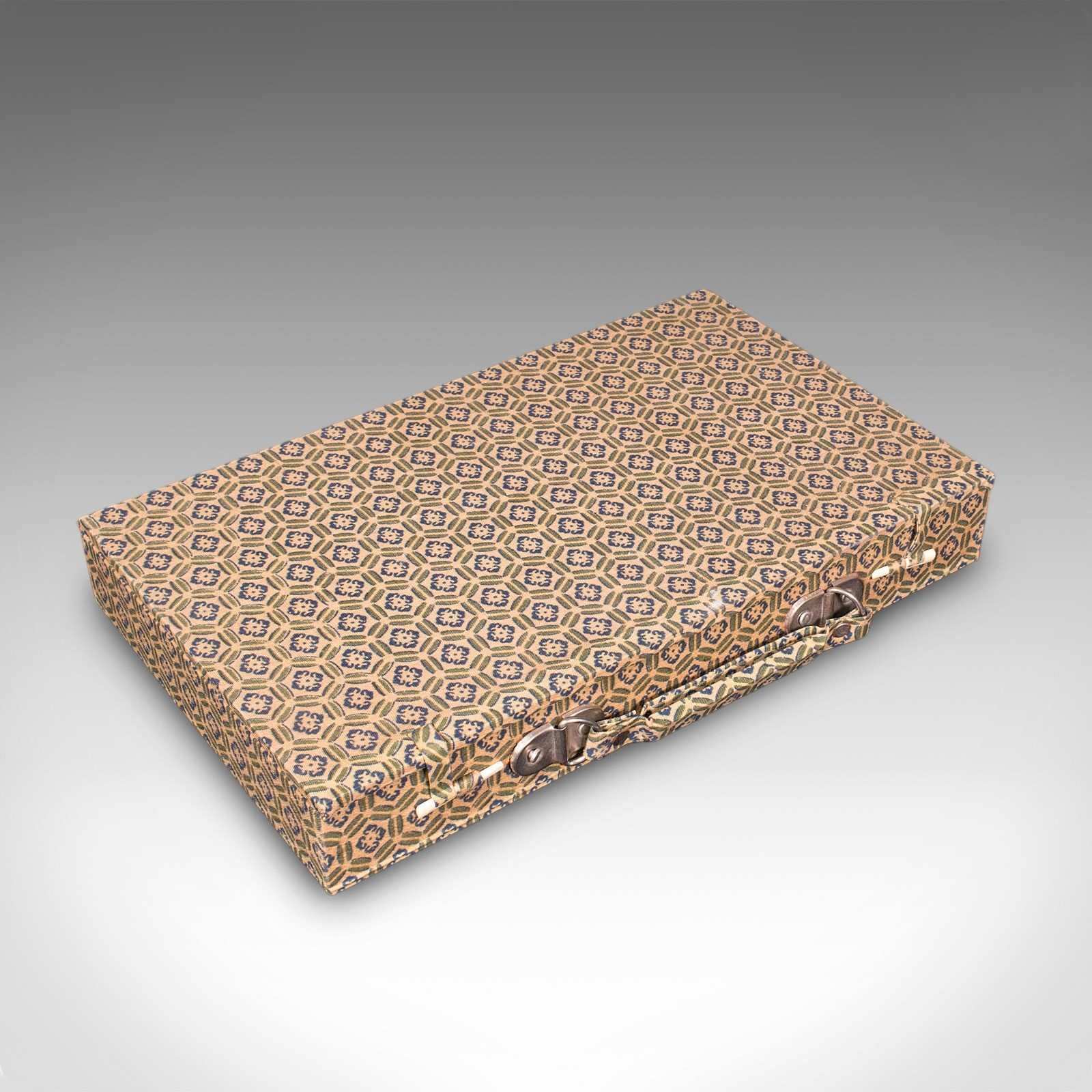 This is a vintage Mah Jong case. A Chinese, upholstered gaming box with bamboo pieces, dating to the mid 20th century, circa 1960.