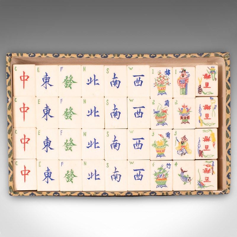 This is a charming vintage Mah Jong case, presented within an attractive fabric covered case. Delivered ready to enjoy or shared as a gift.