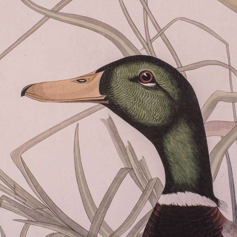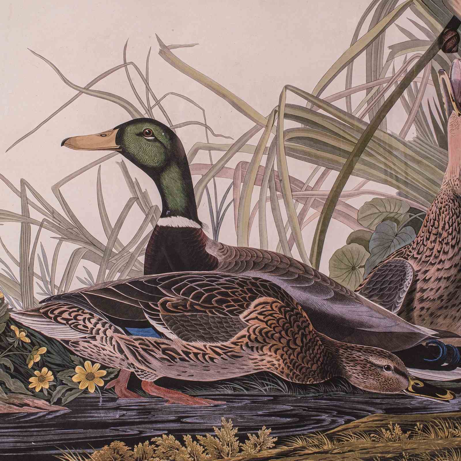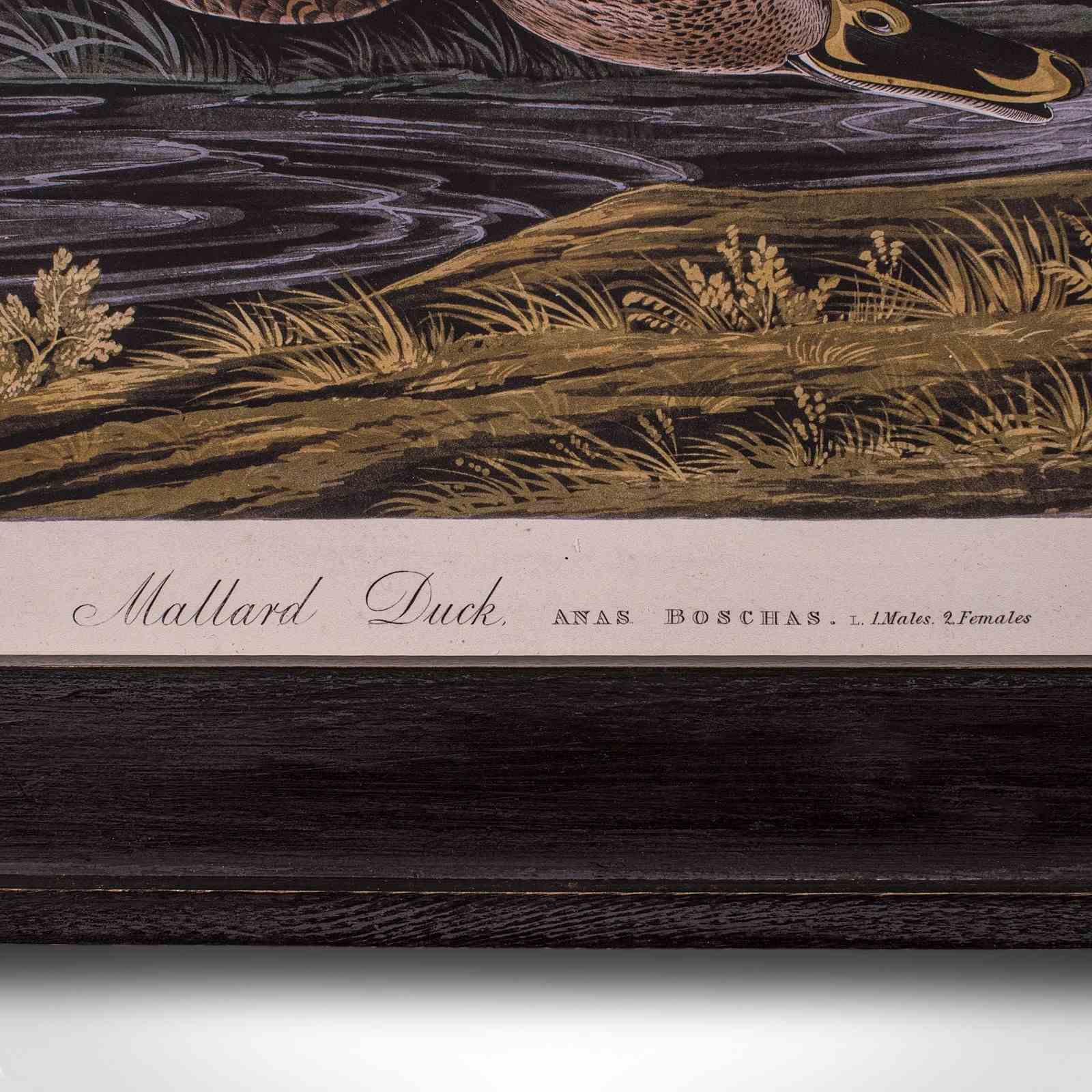 This is a large vintage Mallard picture. An English, framed print engraving of wildlife interest originally by J.J. Audubon (1785 - 1851), dating to the mid 20th century, circa 1960.