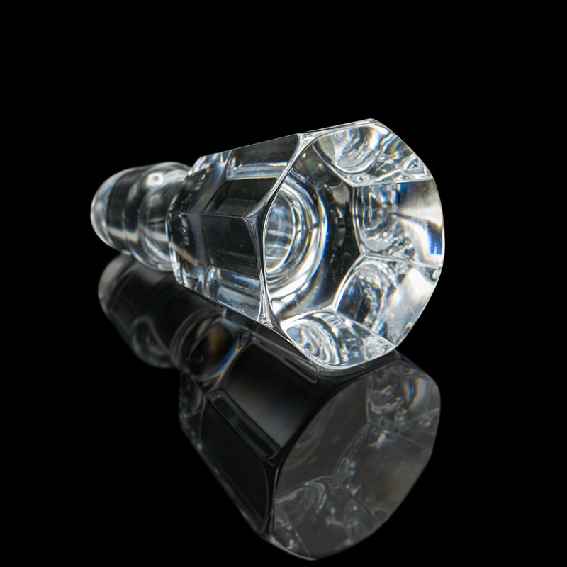Faceted glacier stopper sits neatly within the flared stem for a secure fit