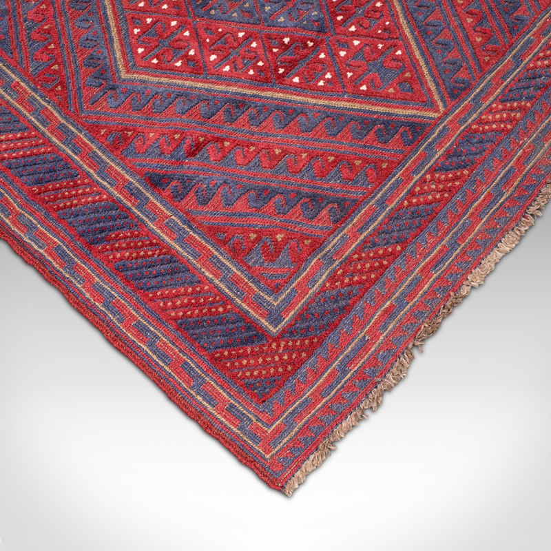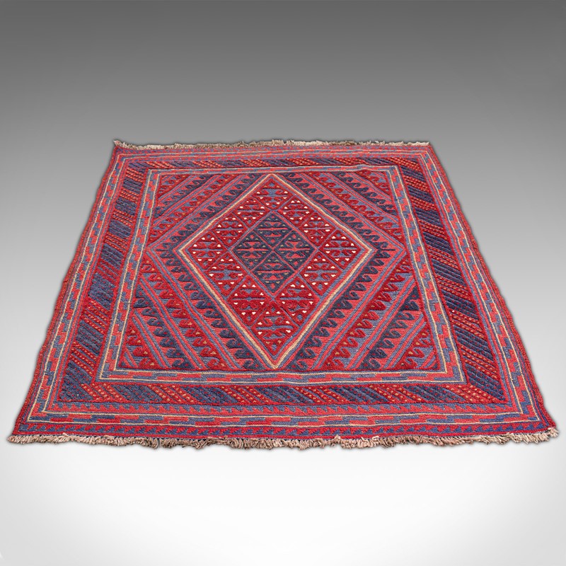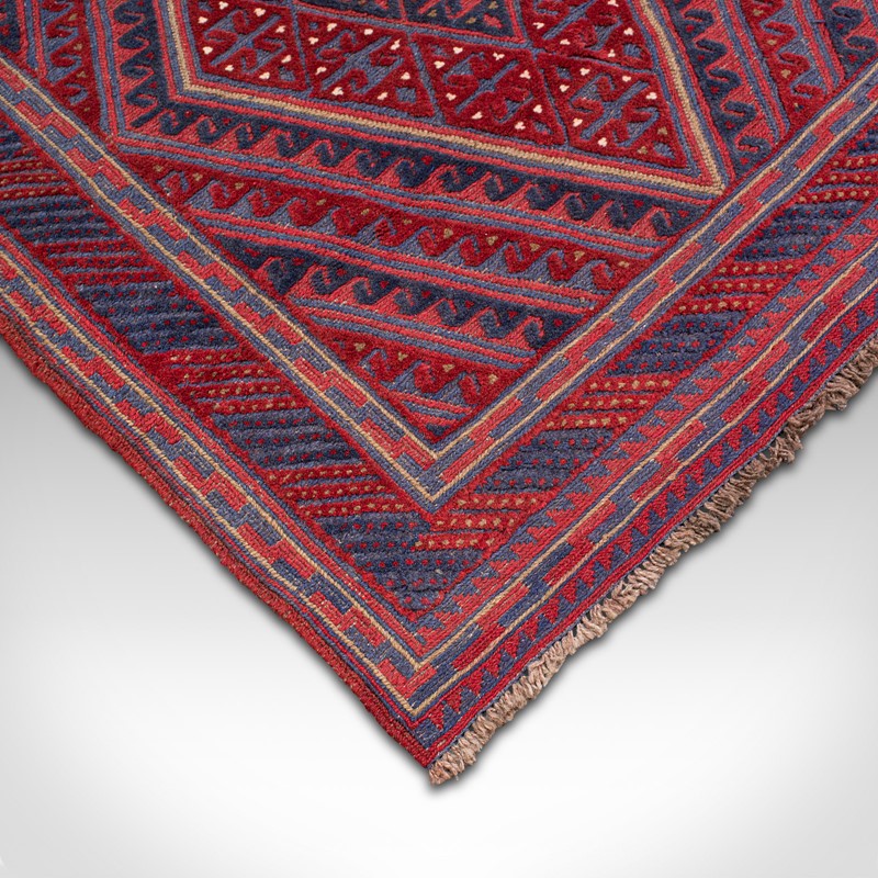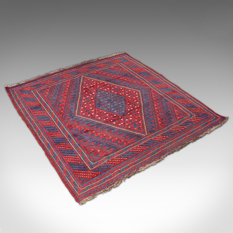 This is an appealing vintage Meshwani Gazek rug, with attractive colour and useful, near-square proportions. Delivered ready to lay.