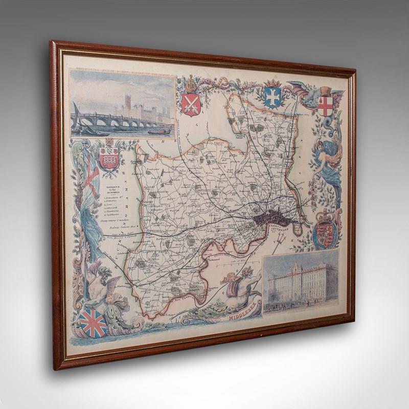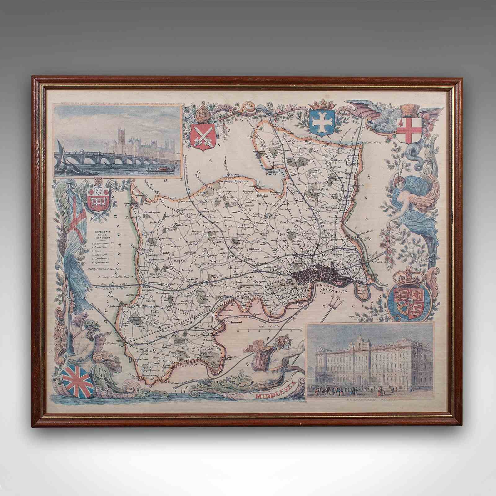 Vintage Middlesex County Map, English, Framed, After Thomas Moule, Cartography