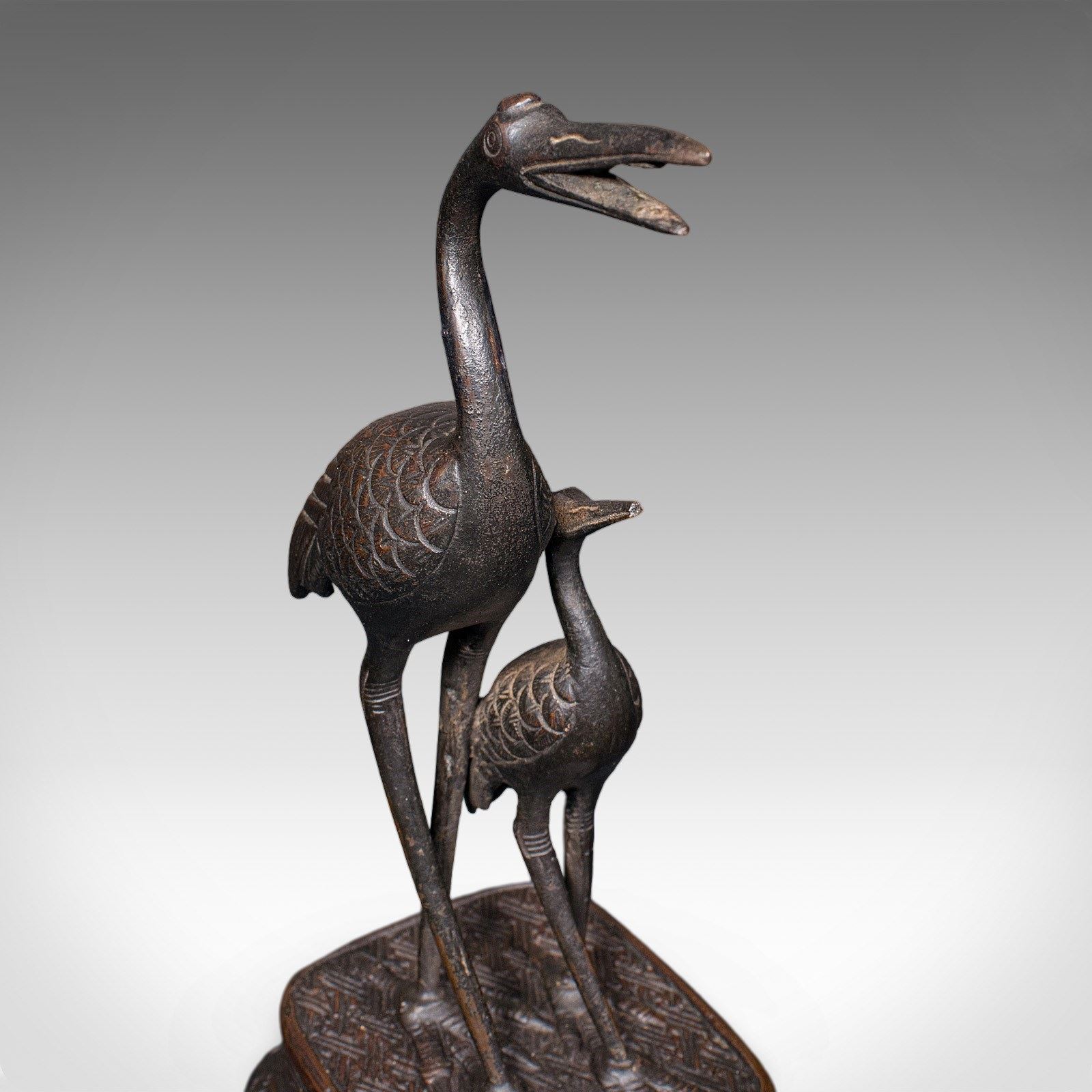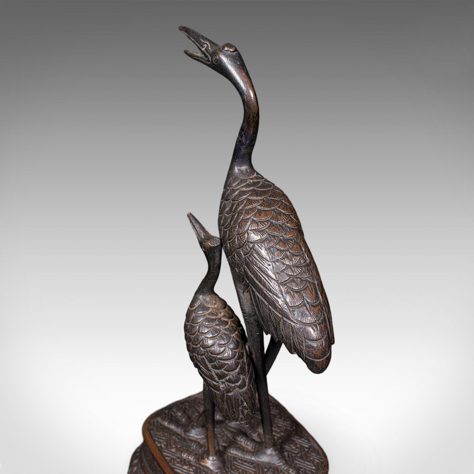 Vintage Okimono Figure, Two Cranes, Japanese, Bronze, Bird Study, Art Deco, 1940