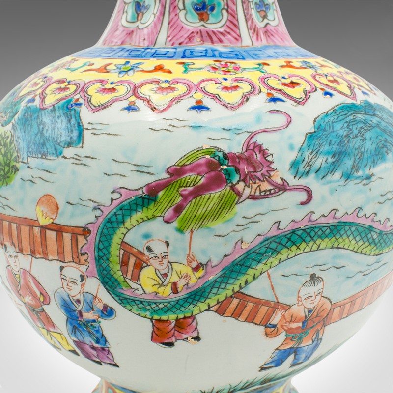 This is a fascinating vintage Oriental baluster vase with striking dragon decor and great colour. Delivered polished and ready to display.