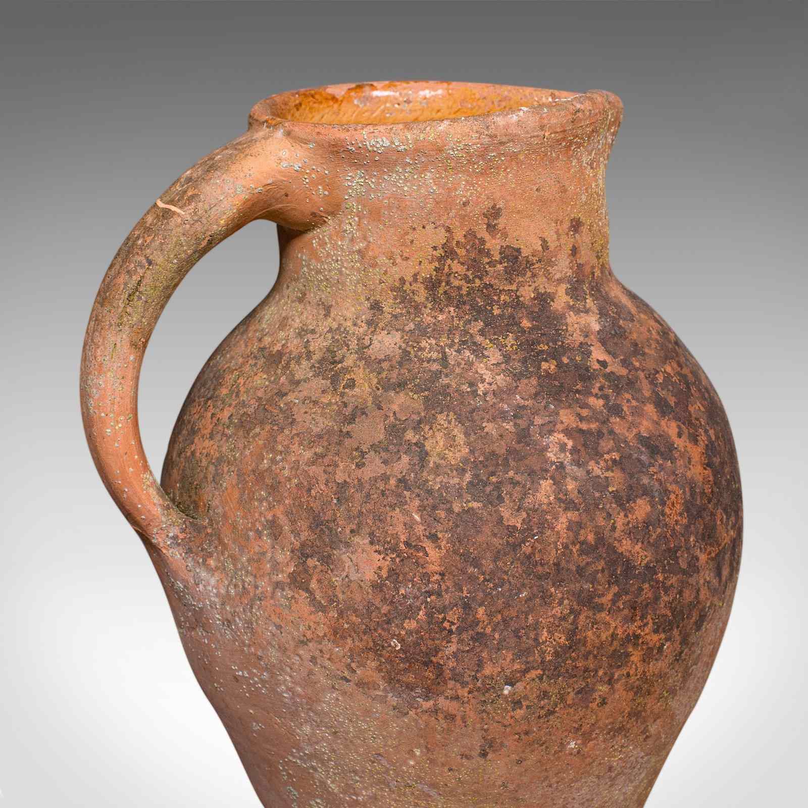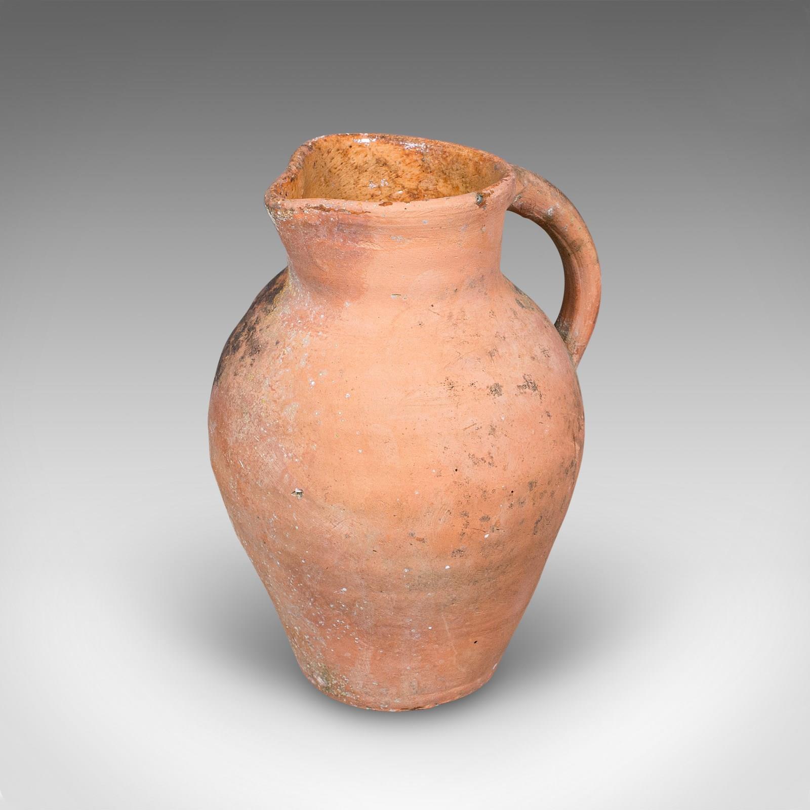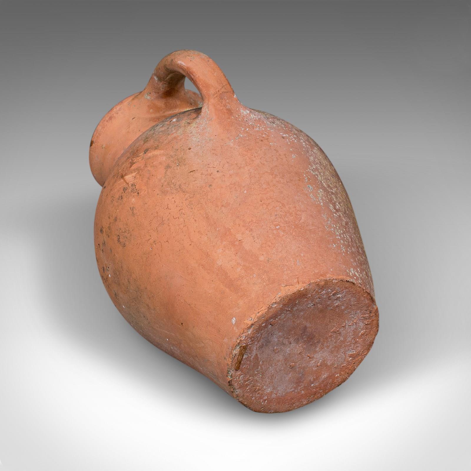 This is a vintage patio planter jug. An Italian, terracotta garden jardiniere urn, dating to the mid 20th century, circa 1960. Displaying timeless Mediterranean character, this charming urn brings rustic warmth and authenticity to any garden or veranda.