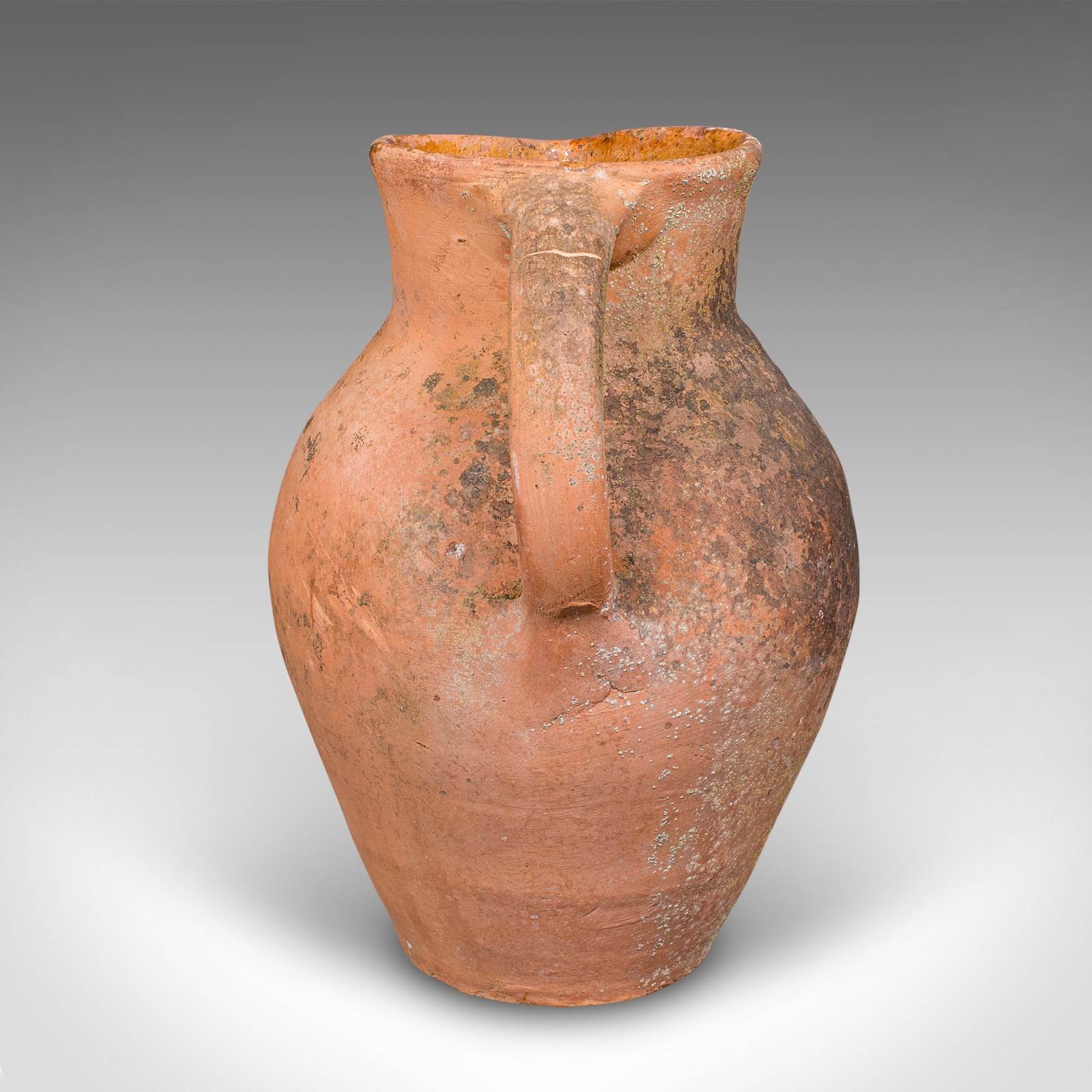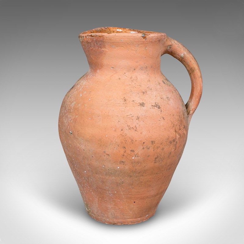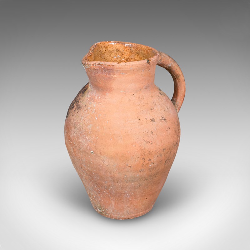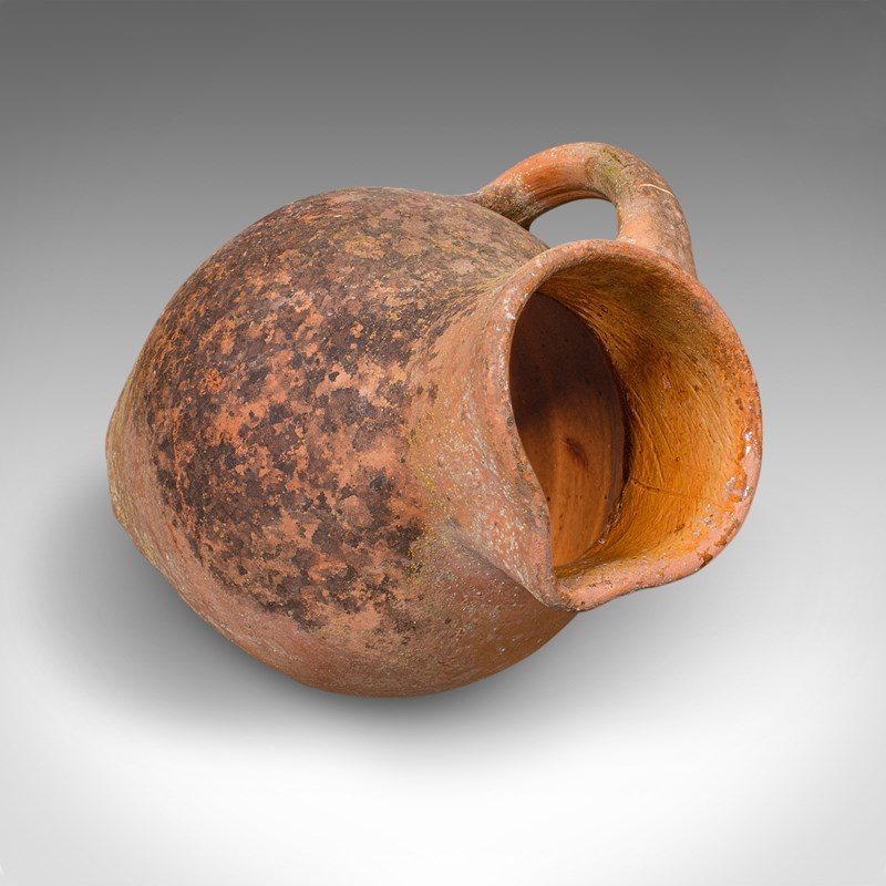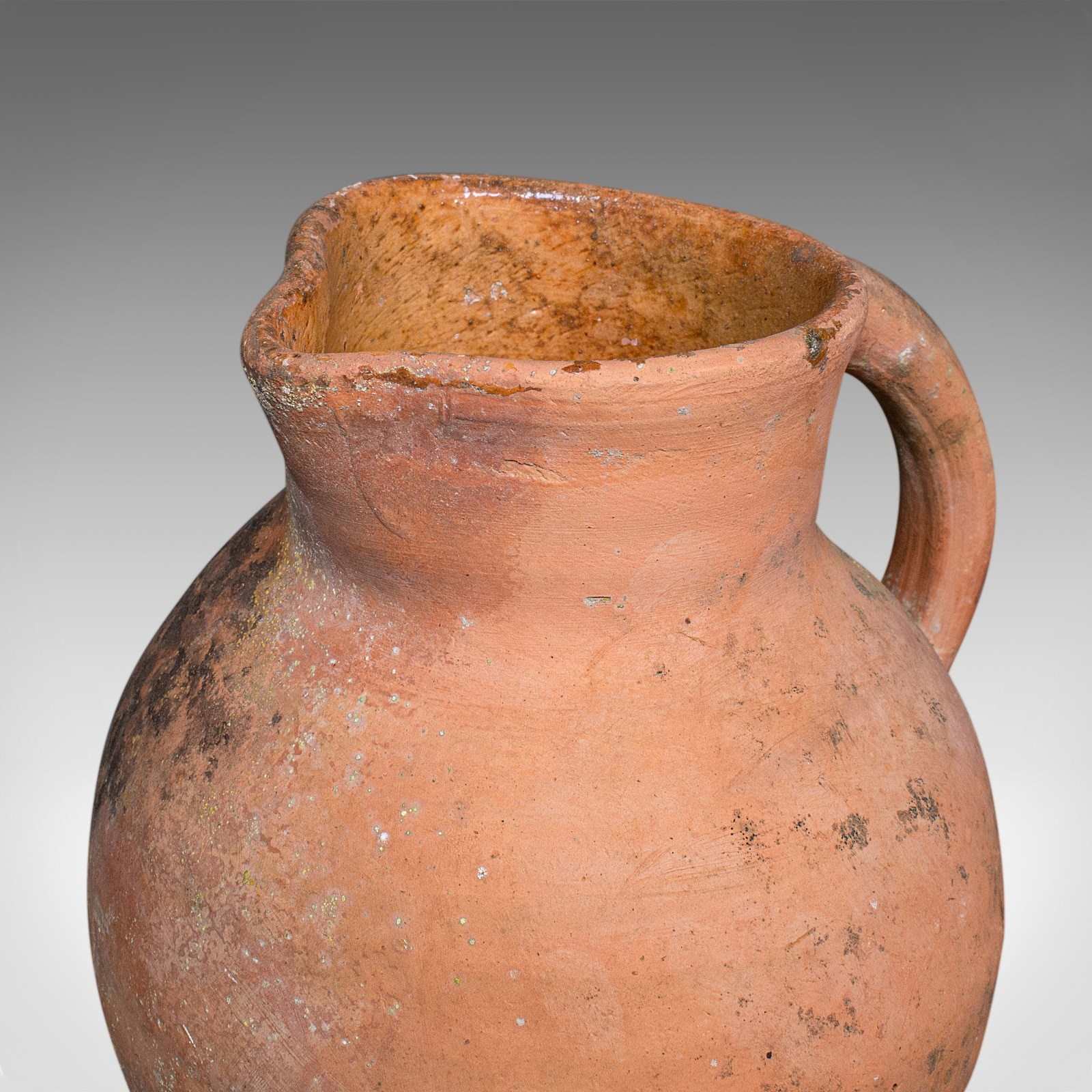 This is a vintage patio planter jug. An Italian, terracotta garden jardiniere urn, dating to the mid 20th century, circa 1960. Displaying timeless Mediterranean character, this charming urn brings rustic warmth and authenticity to any garden or veranda.