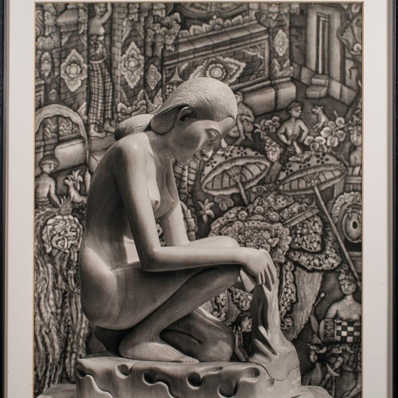 This is a fine vintage monochrome photograph of Balinese wood carving. The photo presents attractive tonality and appealing composition. Delivered ready to display.