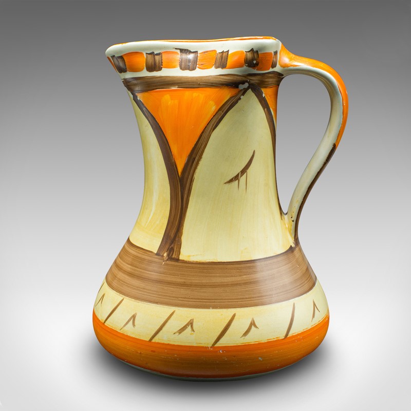 Vintage Pinch Neck Jug, English, Hand Painted, Ceramic, Pourer, Art Deco, C.1930