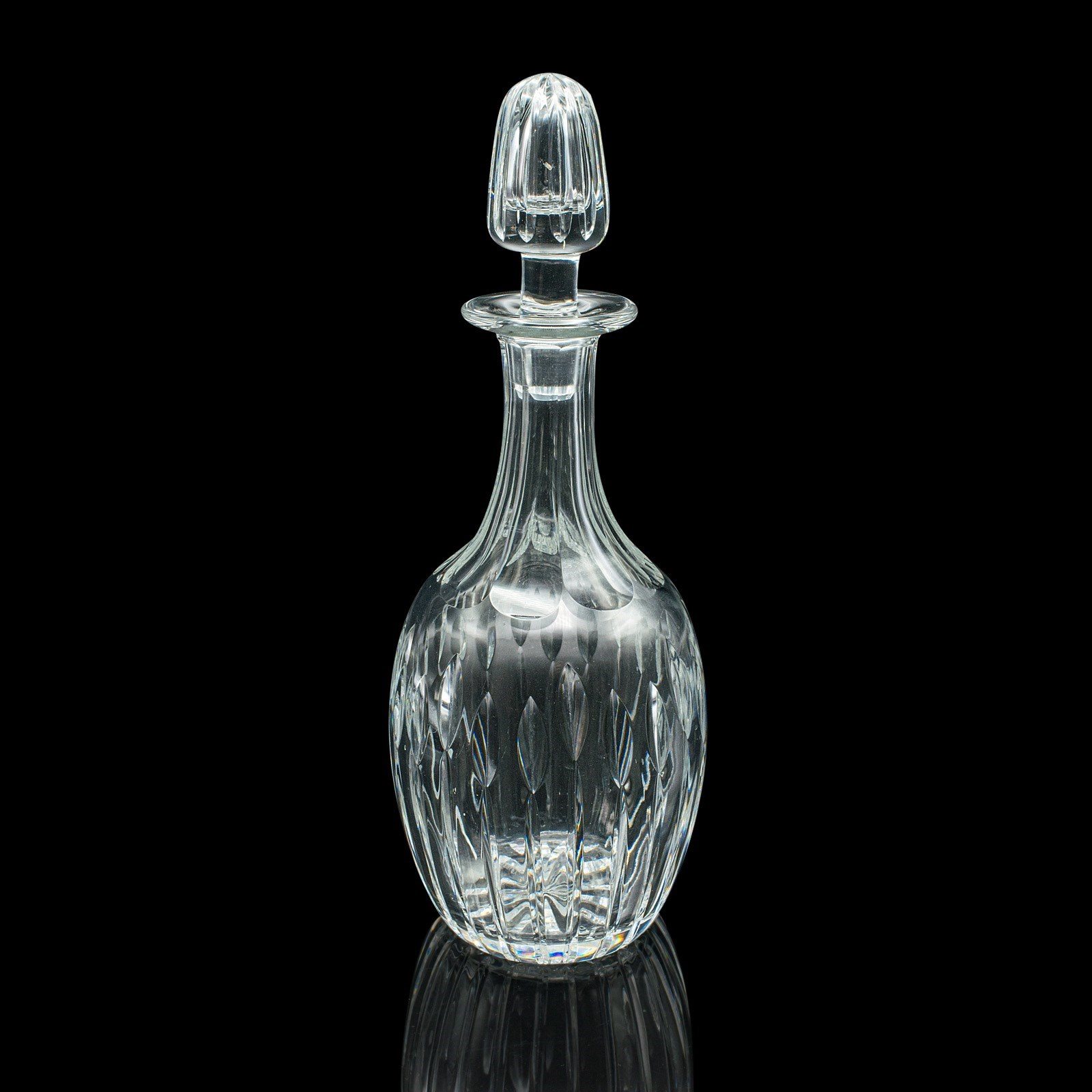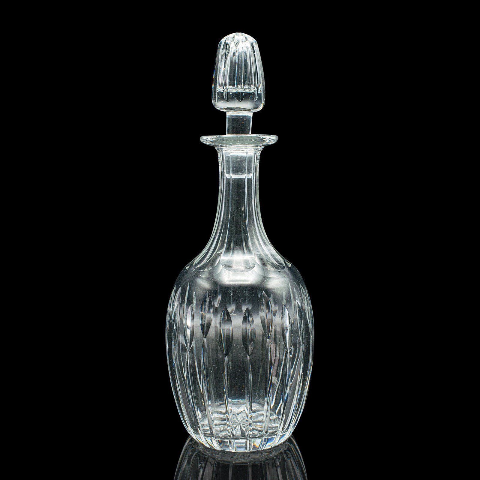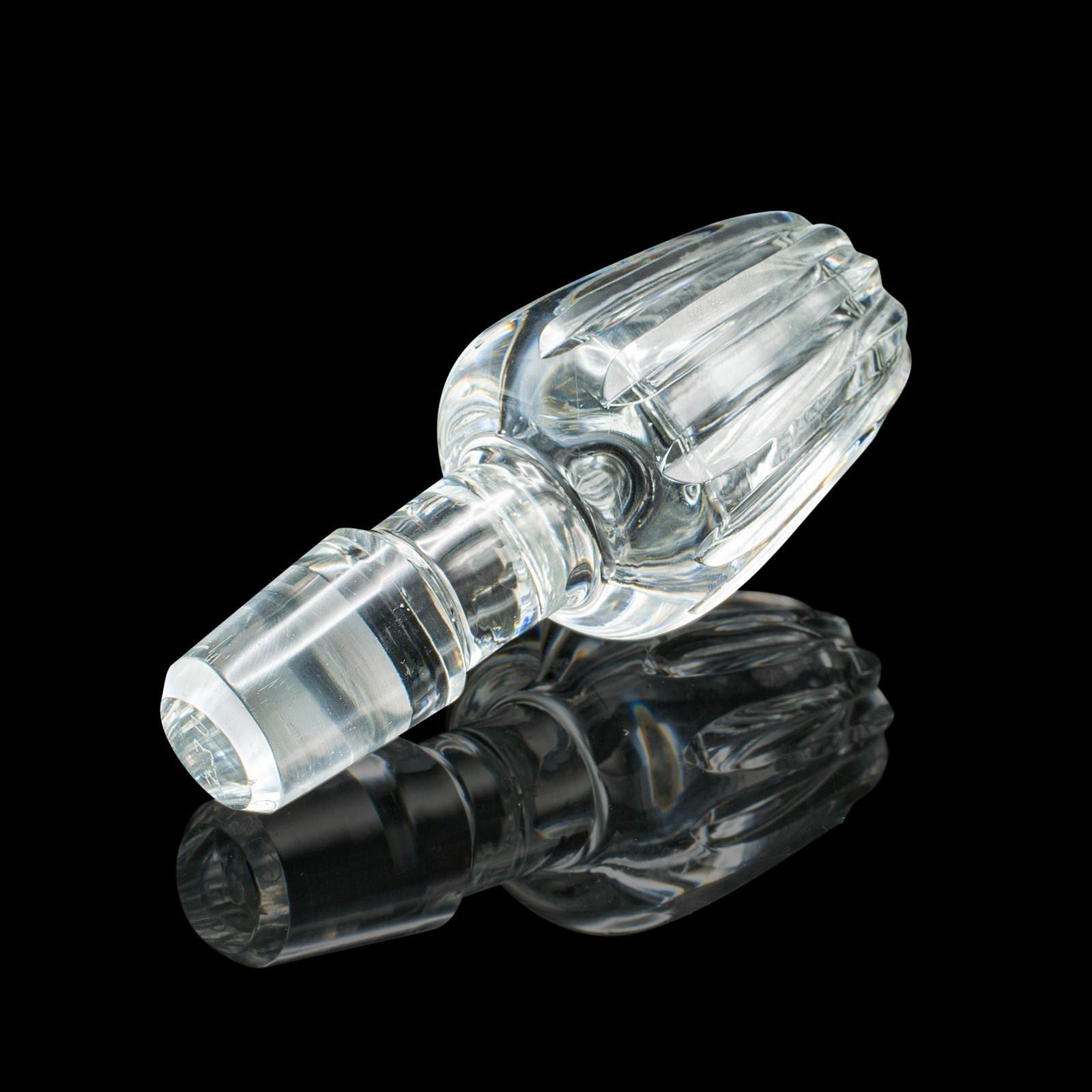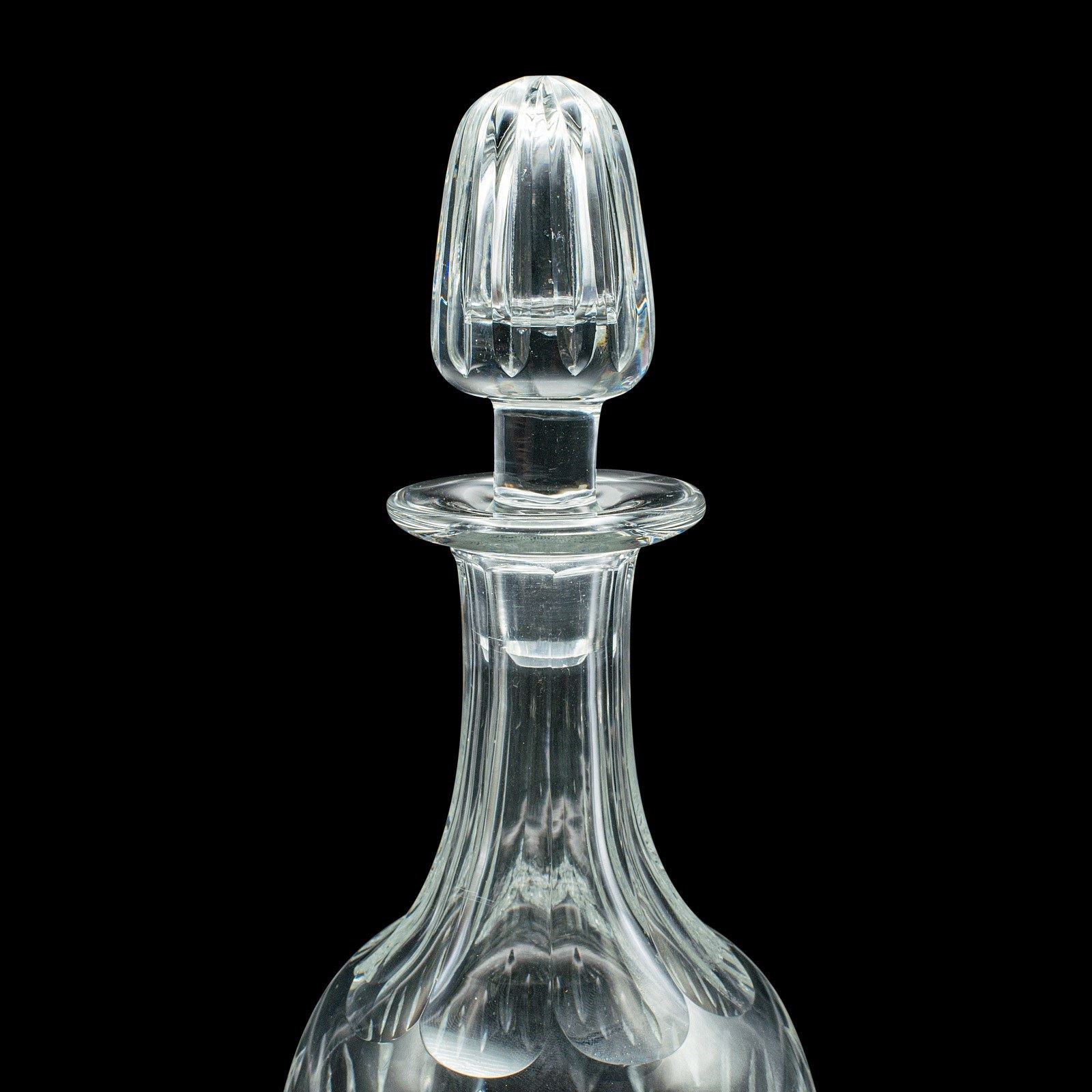 A handsome English decanter with timeless appeal, this mid-century glass vessel brings refined presentation to any drinks service — a fine addition for collectors of quality barware or cut glass tableware.