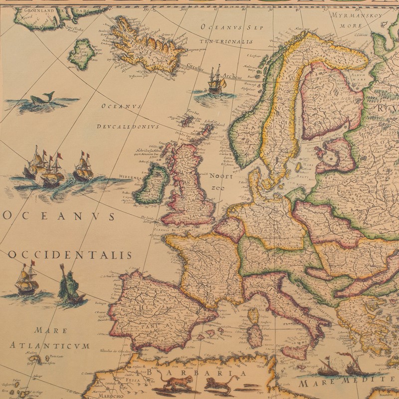 Vintage Reproduction 17th Century Map of Europe, American, Cartography, Blaeuw