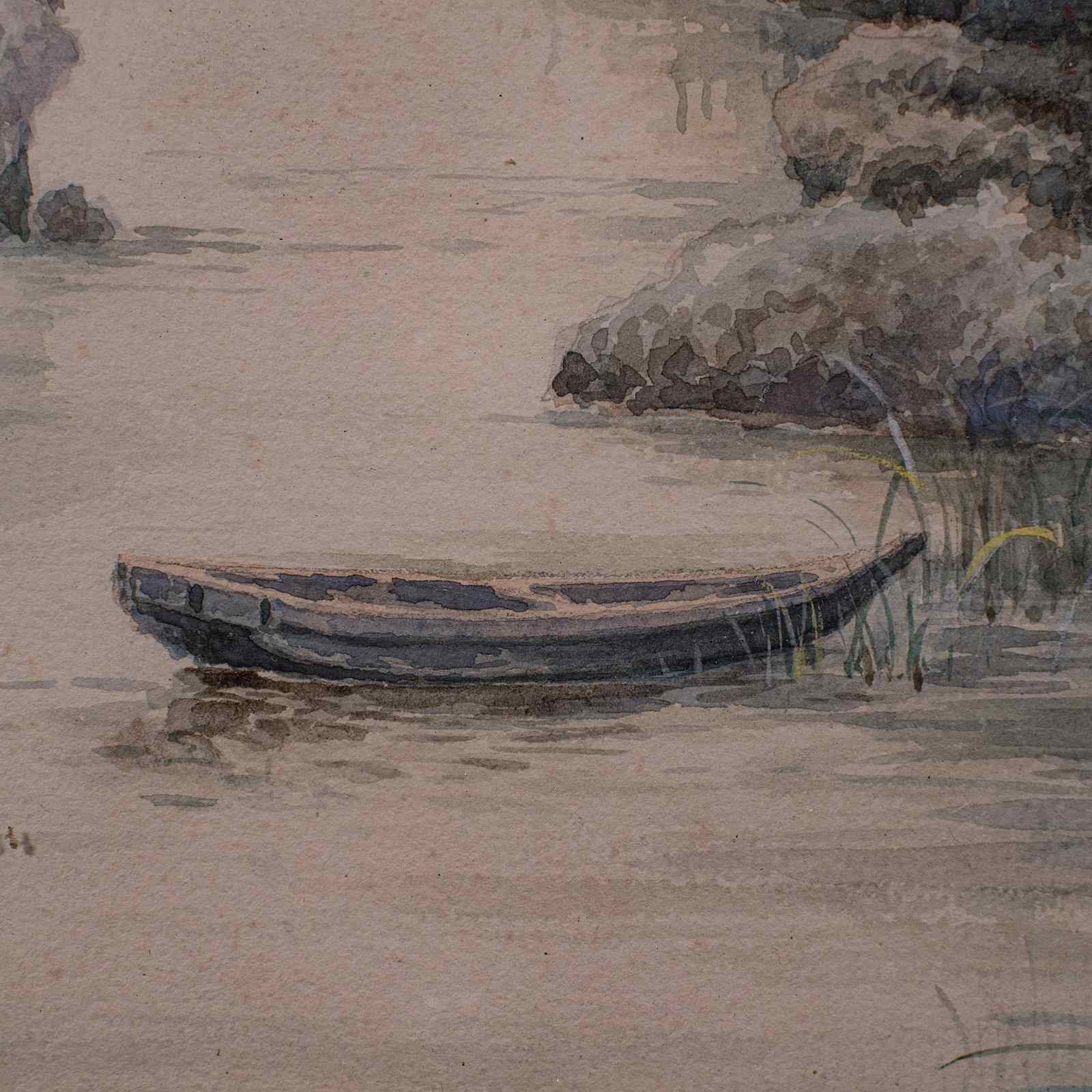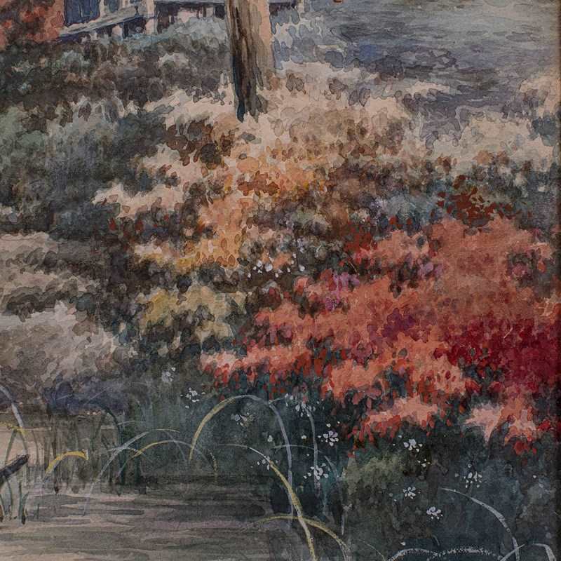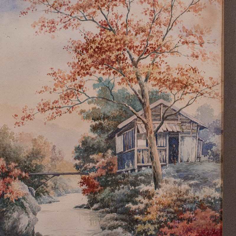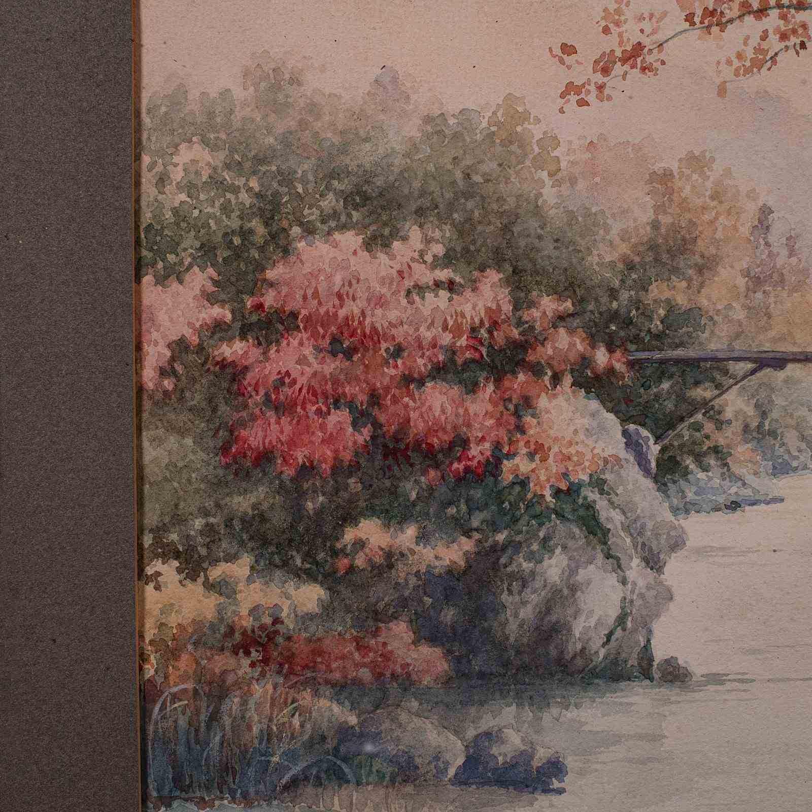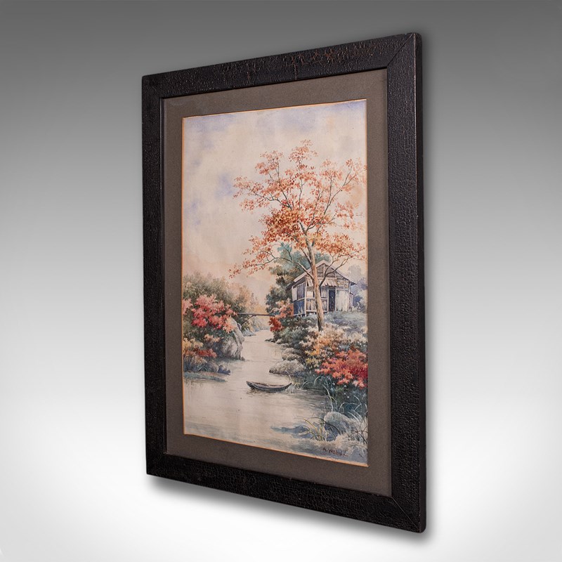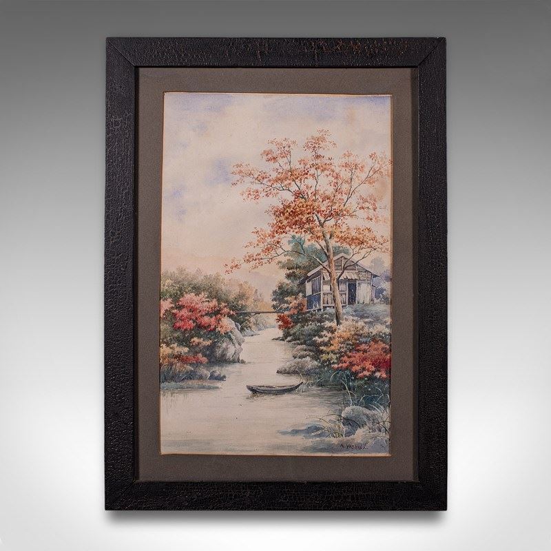 Vintage River Landscape Painting, Japanese School, Watercolour, Art, Mid Century