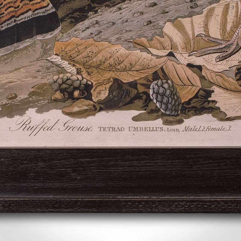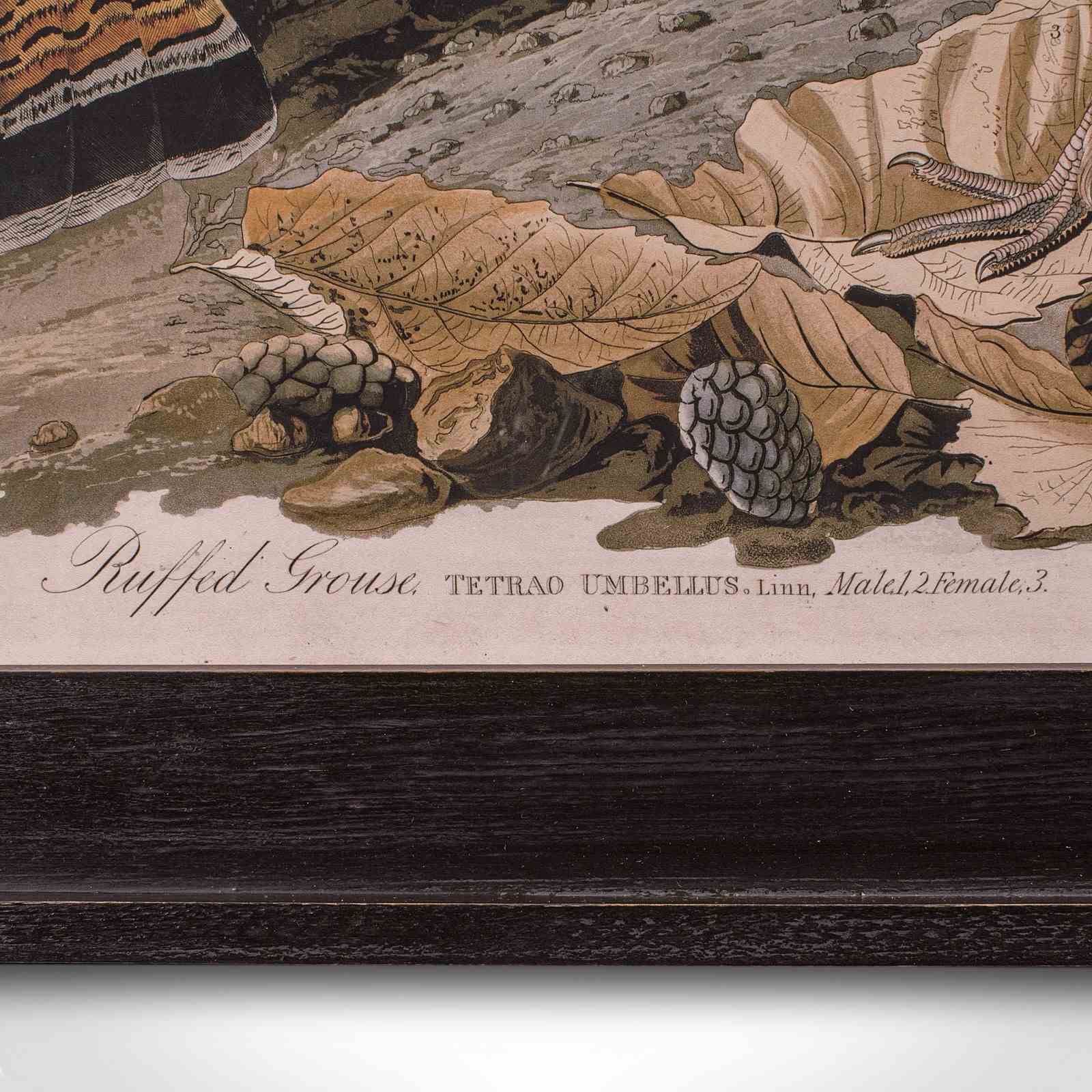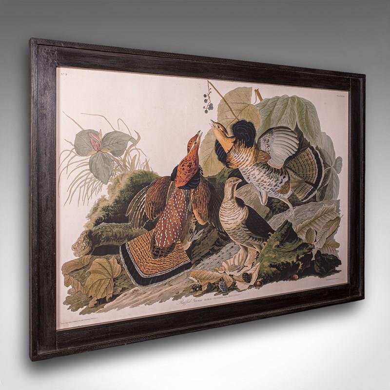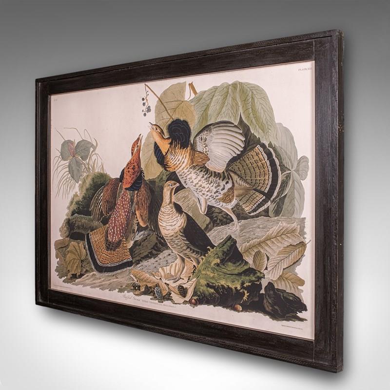 Vintage Ruffed Grouse Picture, English, Framed Print, JJ Audubon, Wildlife Art