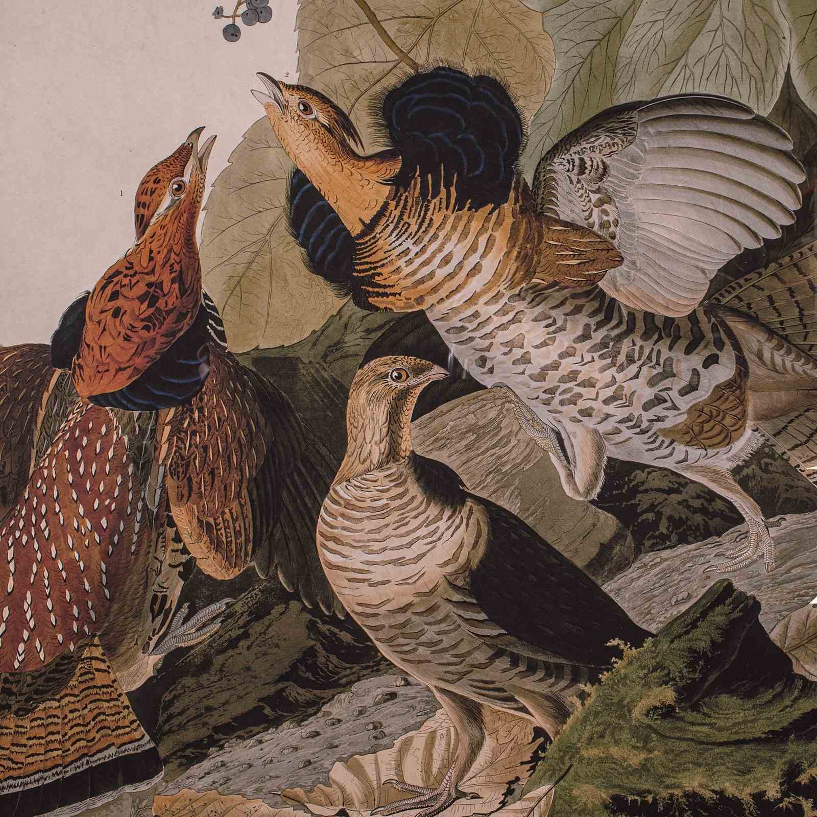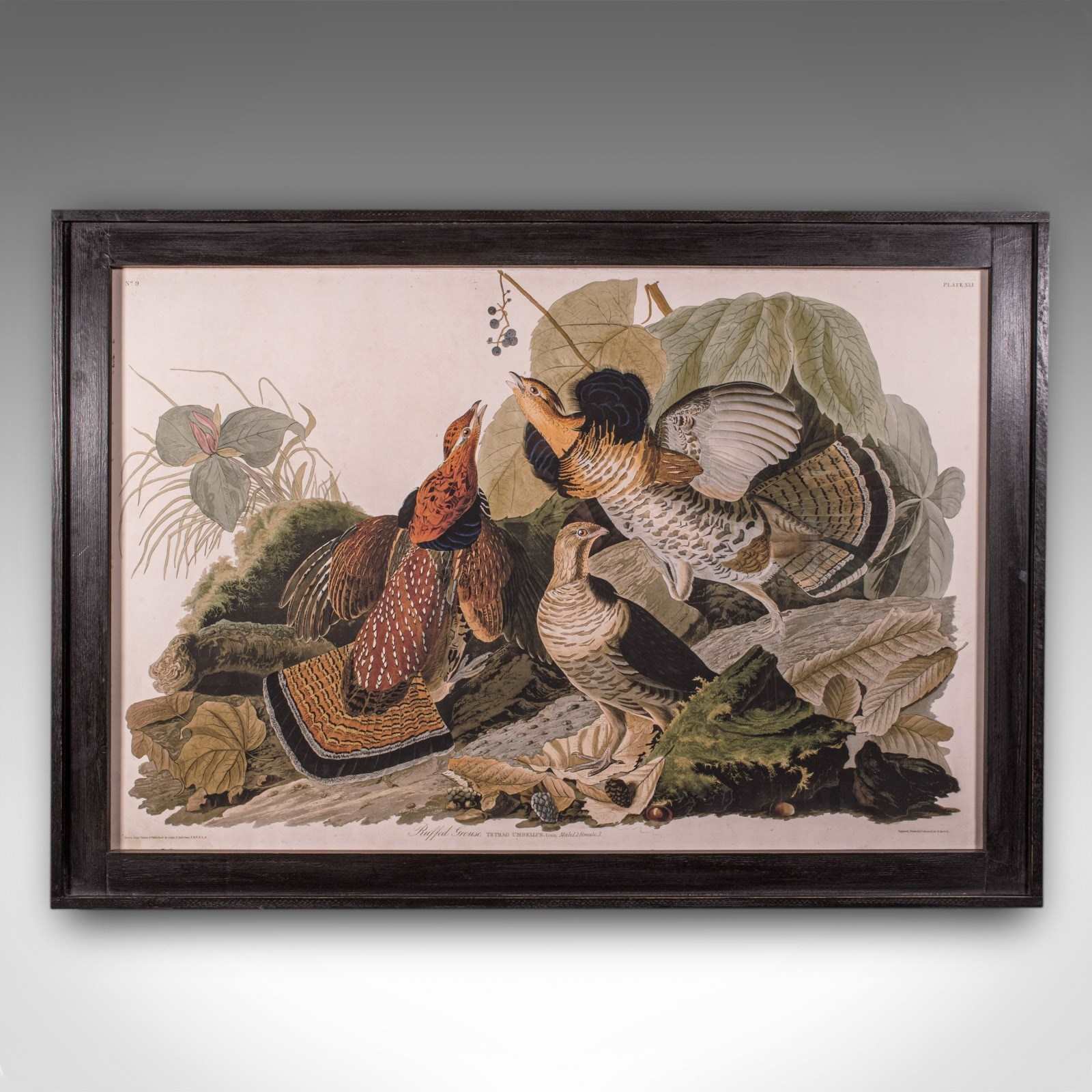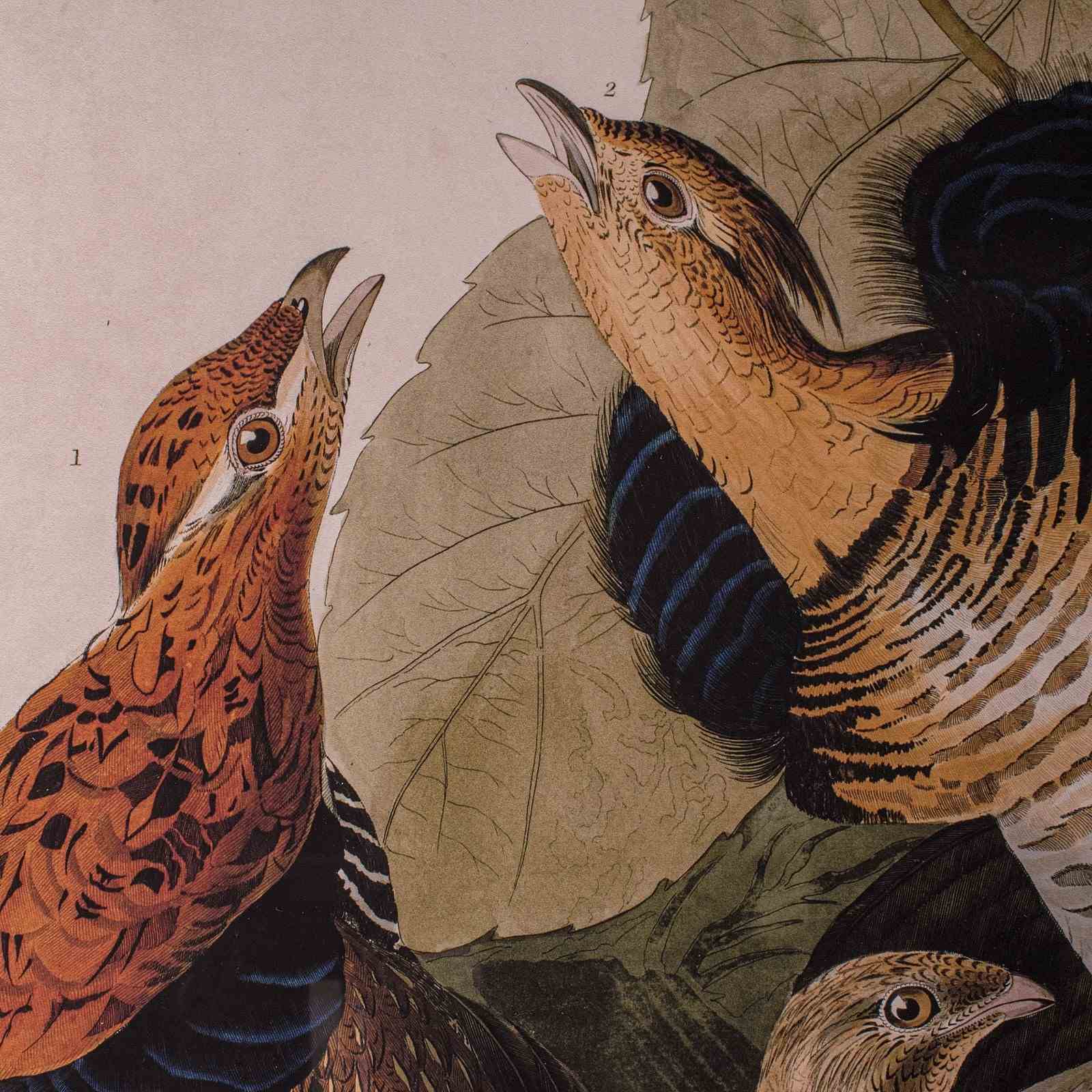 Vintage Ruffed Grouse Picture, English, Framed Print, JJ Audubon, Wildlife Art
