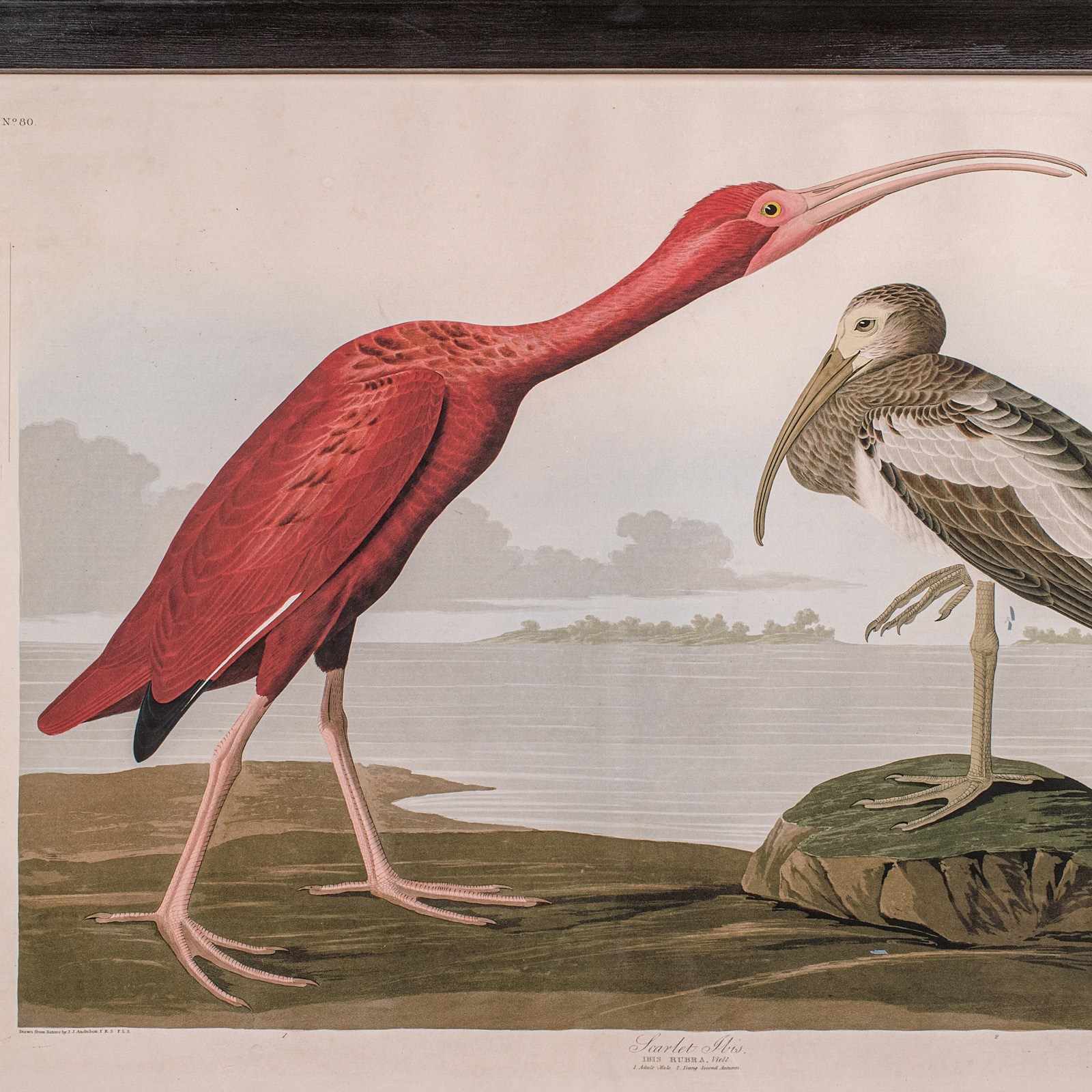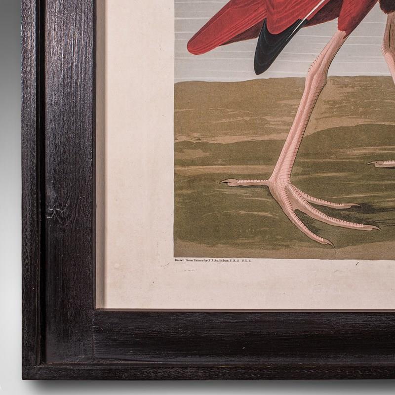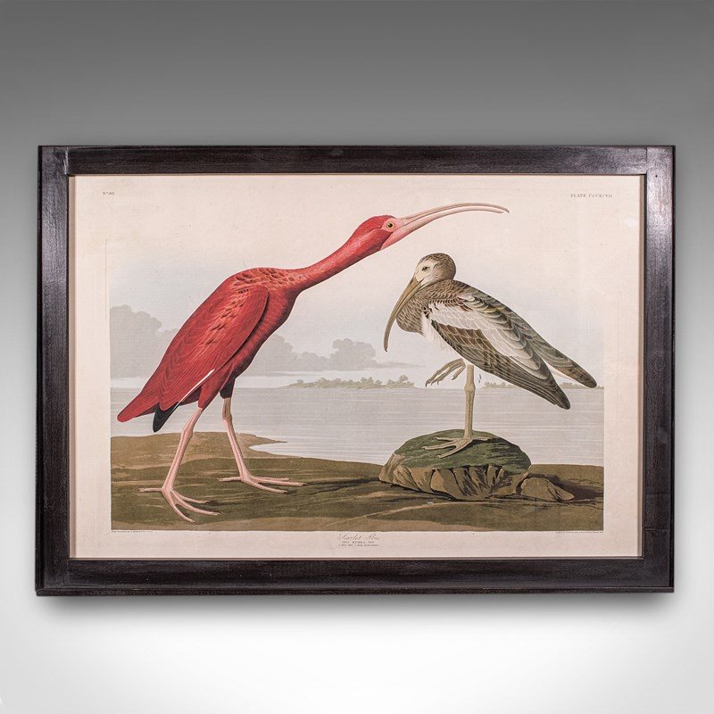 Vintage Scarlet Ibis Picture, English, Framed Print, JJ Audubon, Wildlife Art