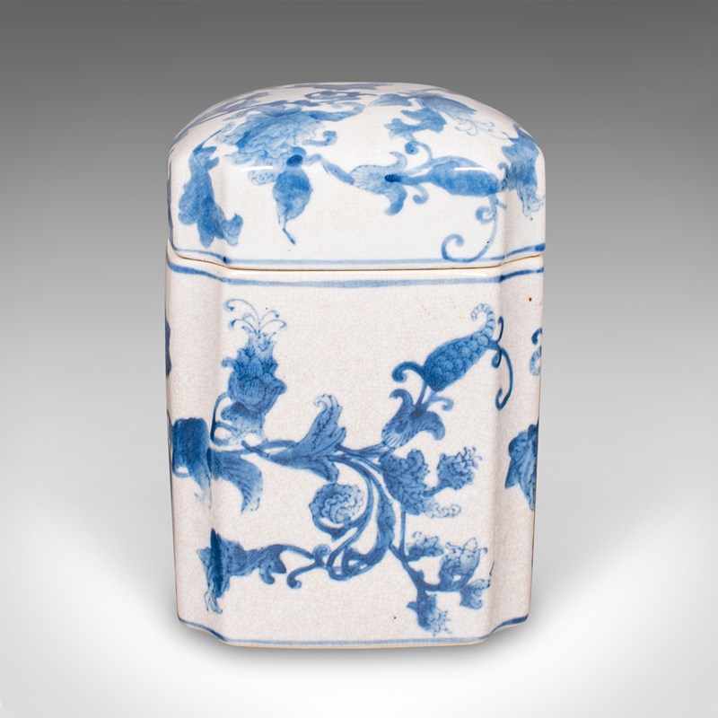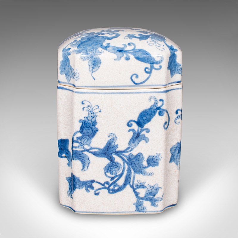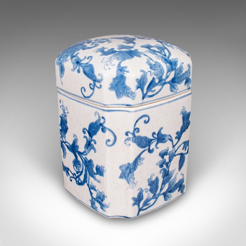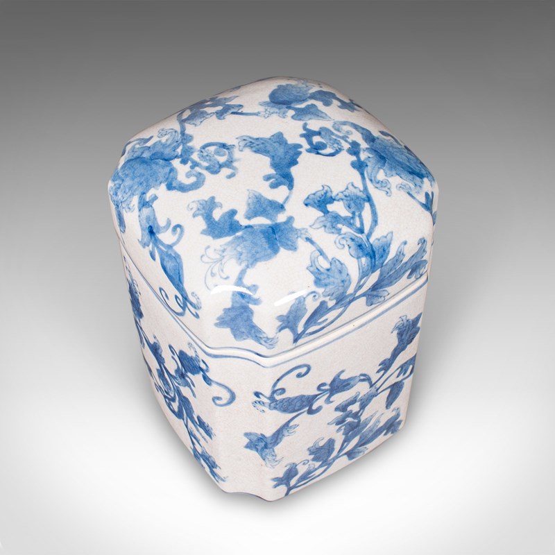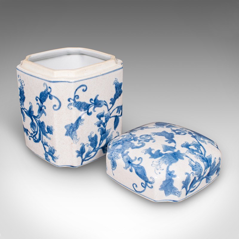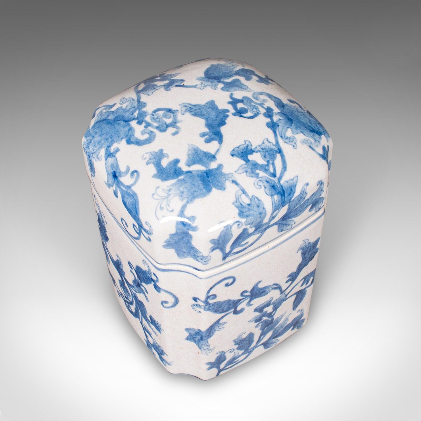 This is a vintage spice jar. An Oriental, ceramic lidded biscuit canister, dating to the late 20th century, circa 1980. Delightfully practical with timeless decorative appeal.