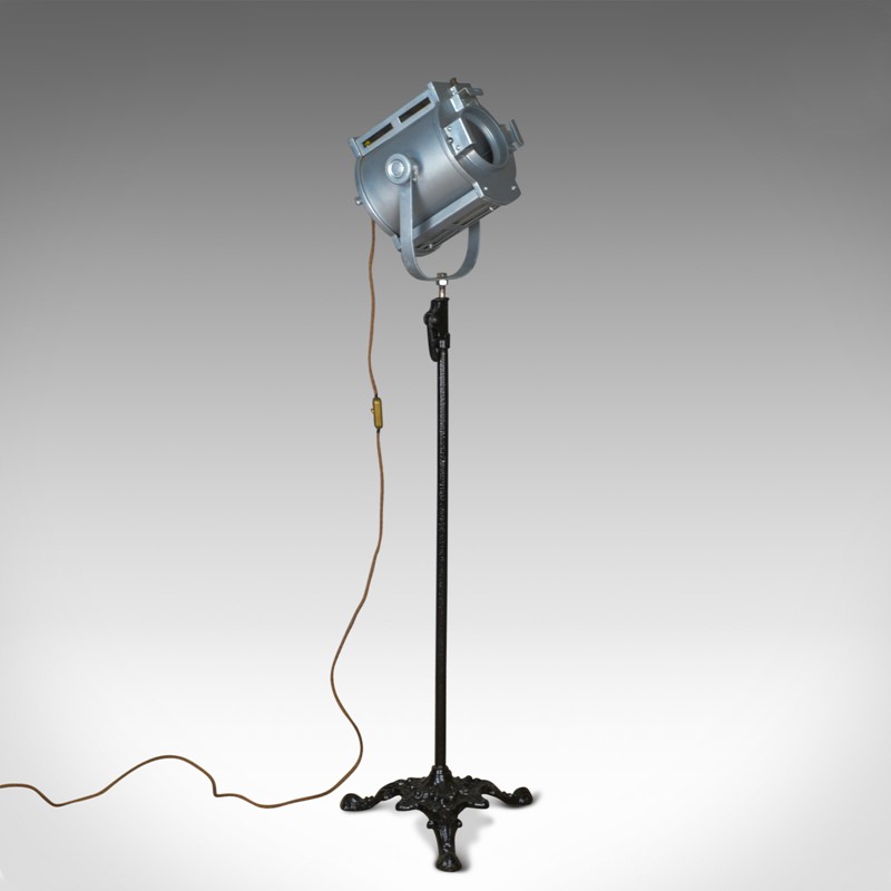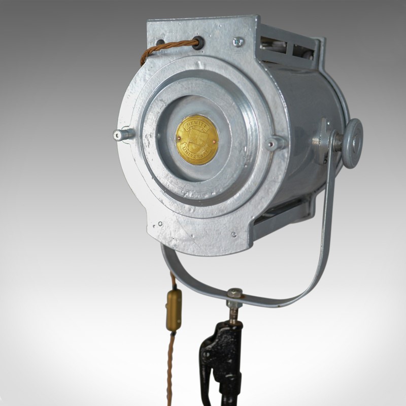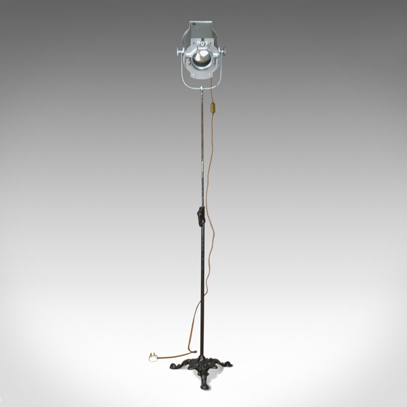 This is a vintage theatre lamp by Hewitt Universal mounted to a Victorian cast iron stand.