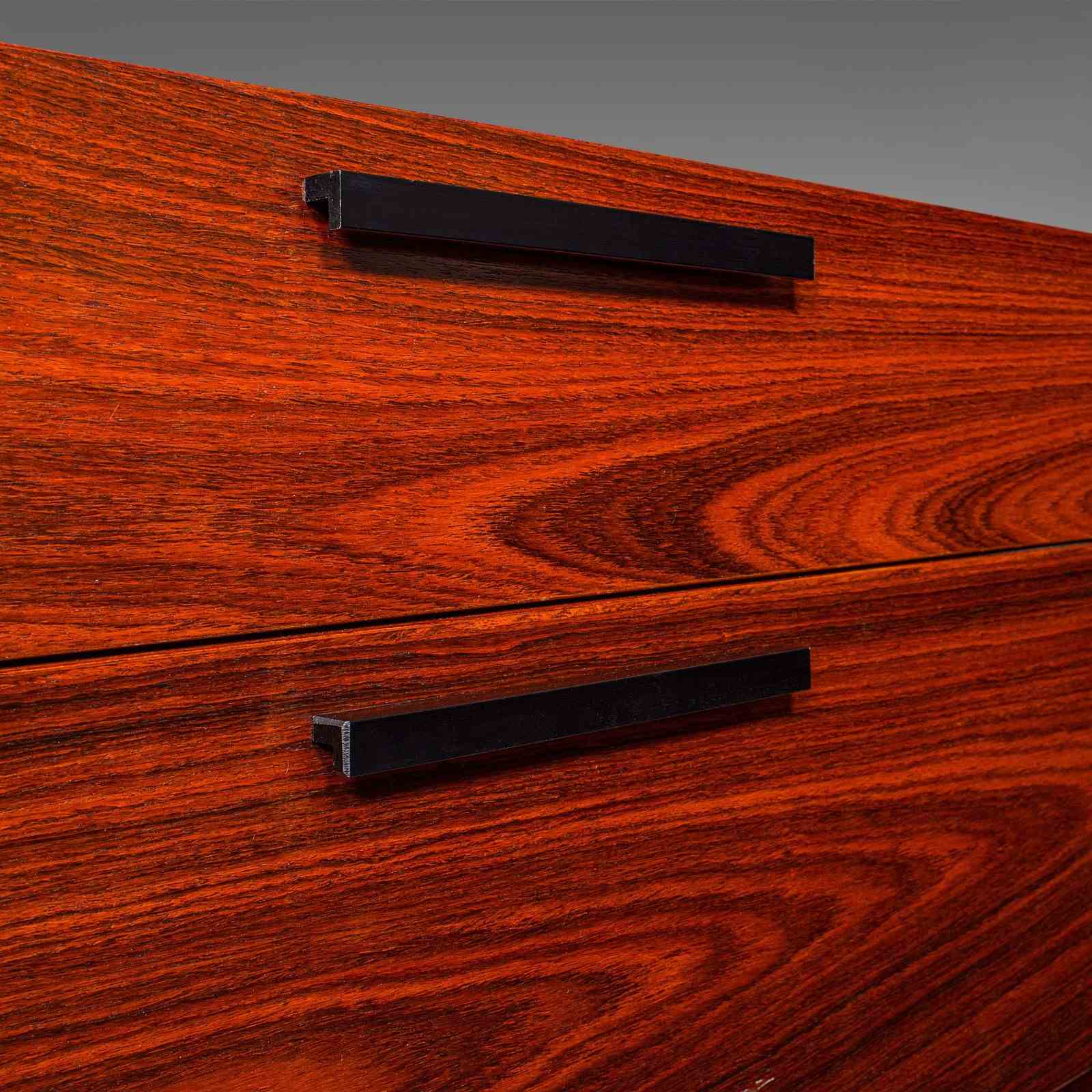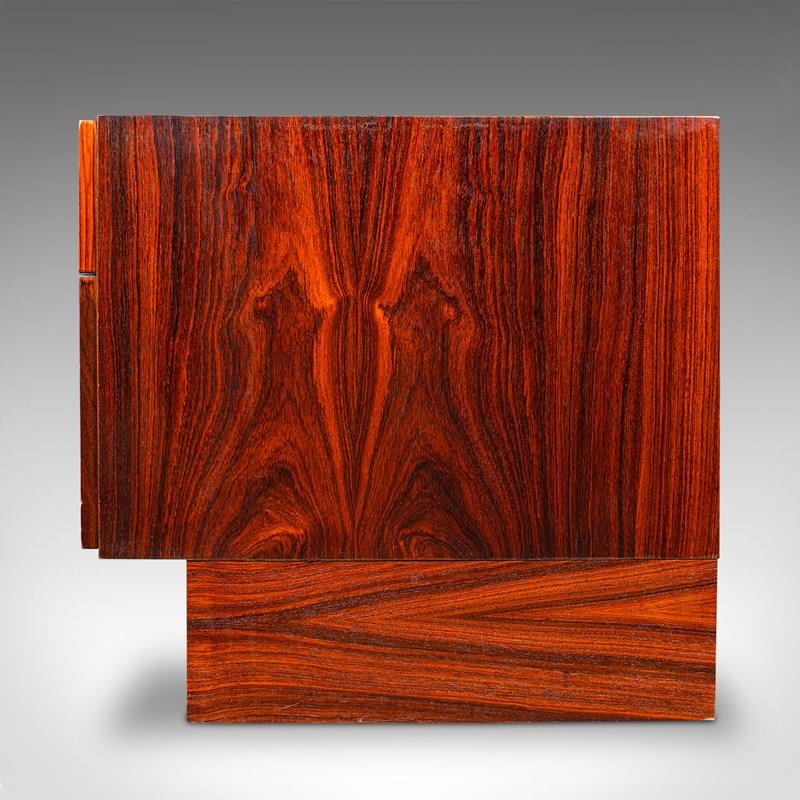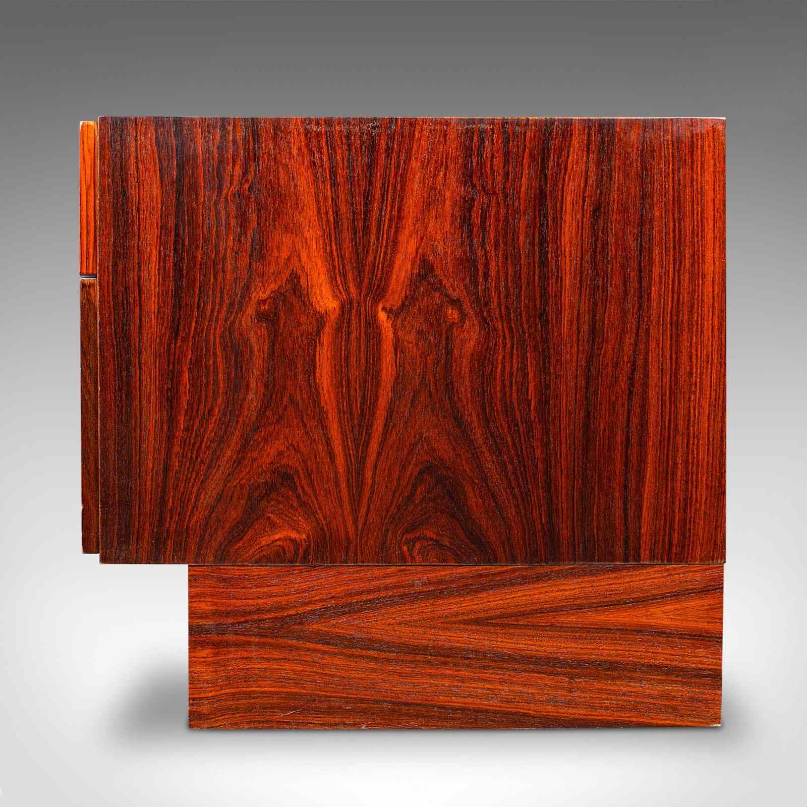 A superb example of mid-century Scandinavian craftsmanship, this vintage rosewood HiFi cabinet by the renowned Danish designer Ib Kofod Larsen for Faarup offers elegance, warmth and practicality in equal measure. Perfectly suited for the stylish audio enthusiast, this fine piece presents exceptional design details and a rich patina developed over six decades.