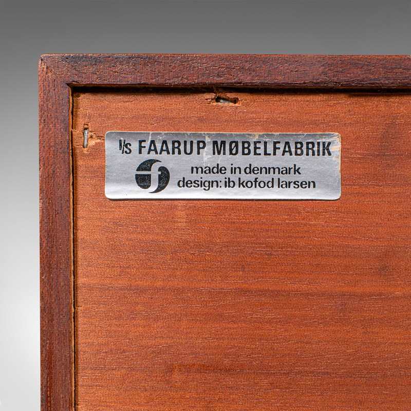 A beautifully designed mid-century media cabinet, showcasing the exceptional artistry of Ib Kofod Larsen. This piece embodies the sophisticated charm of Danish modern design, perfectly suited to complement both classic and contemporary living spaces. Solid joints and construction, delivered ready for the home.