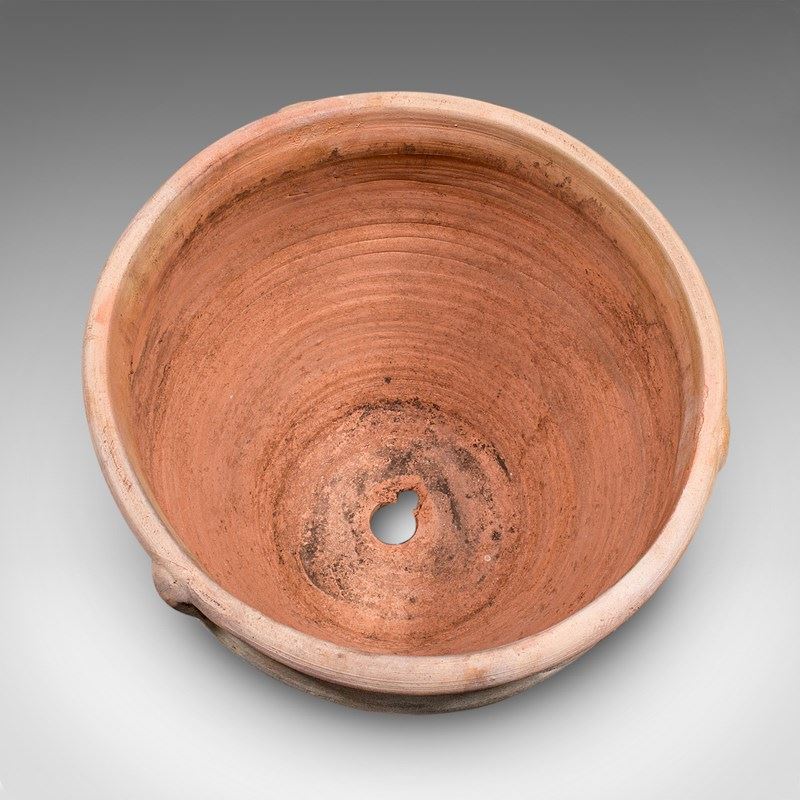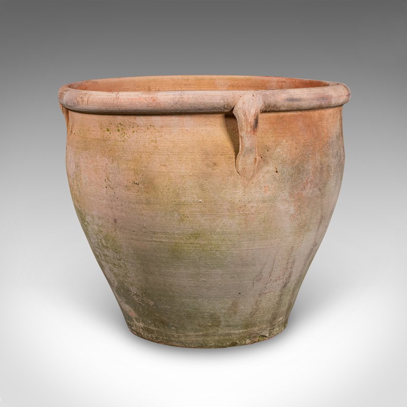 This is a fine vintage Italian terracotta jardiniere, offering graceful form and rustic charm for any patio or garden setting. Delivered ready to display.