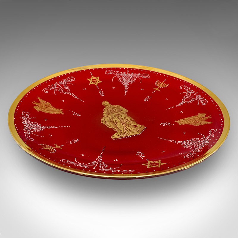 Vintage Venetian Art Glass Fruit Dish, Italian, Gilt, Decorative Plate, Moses