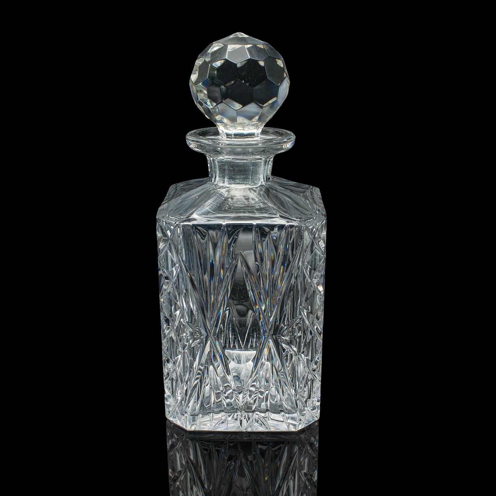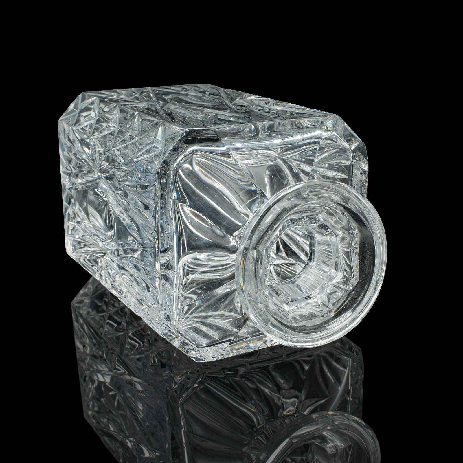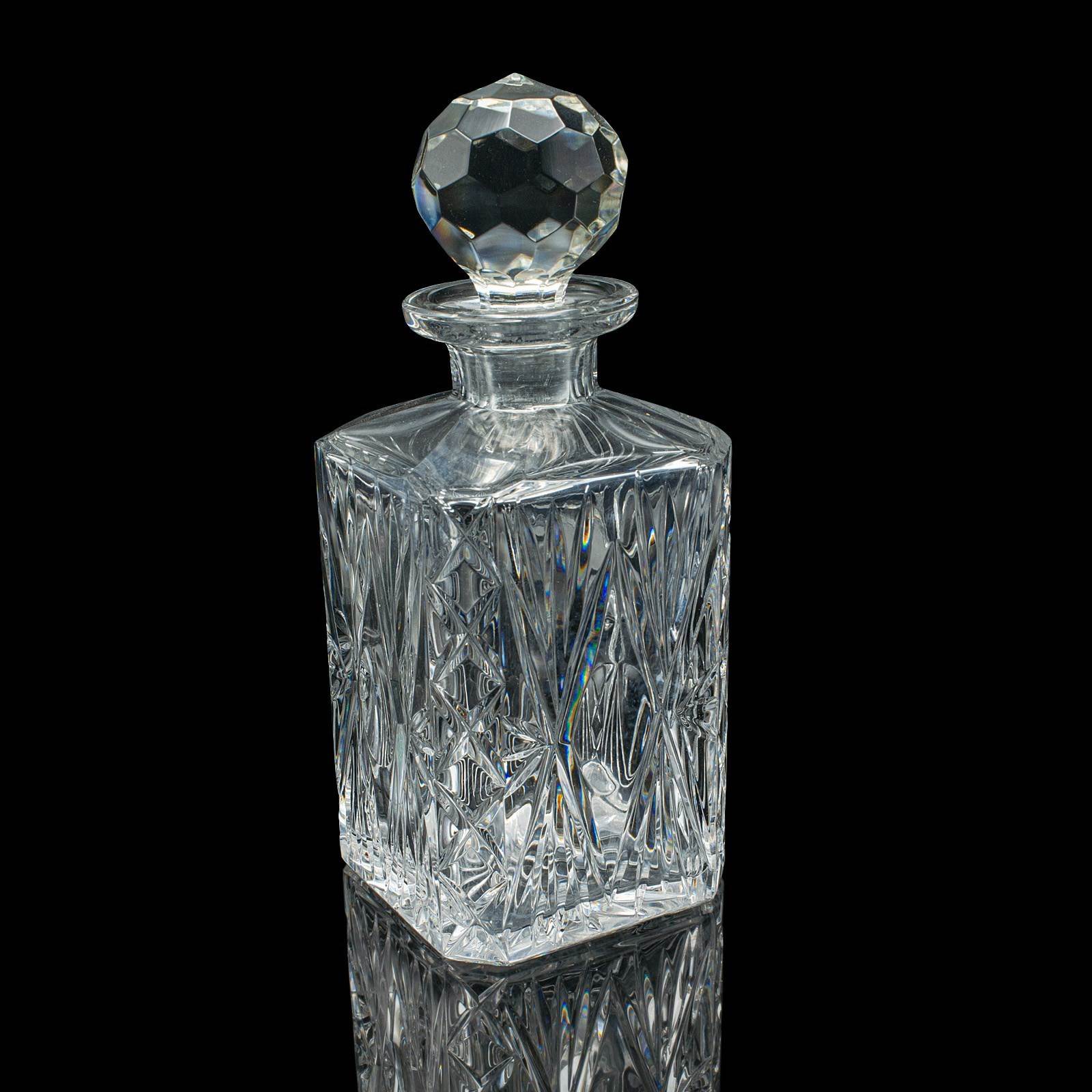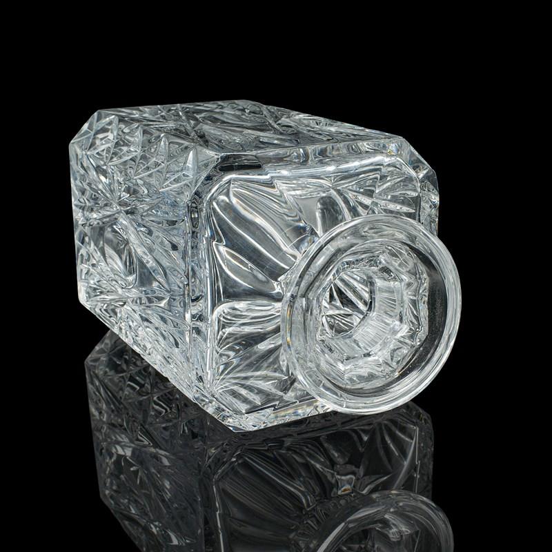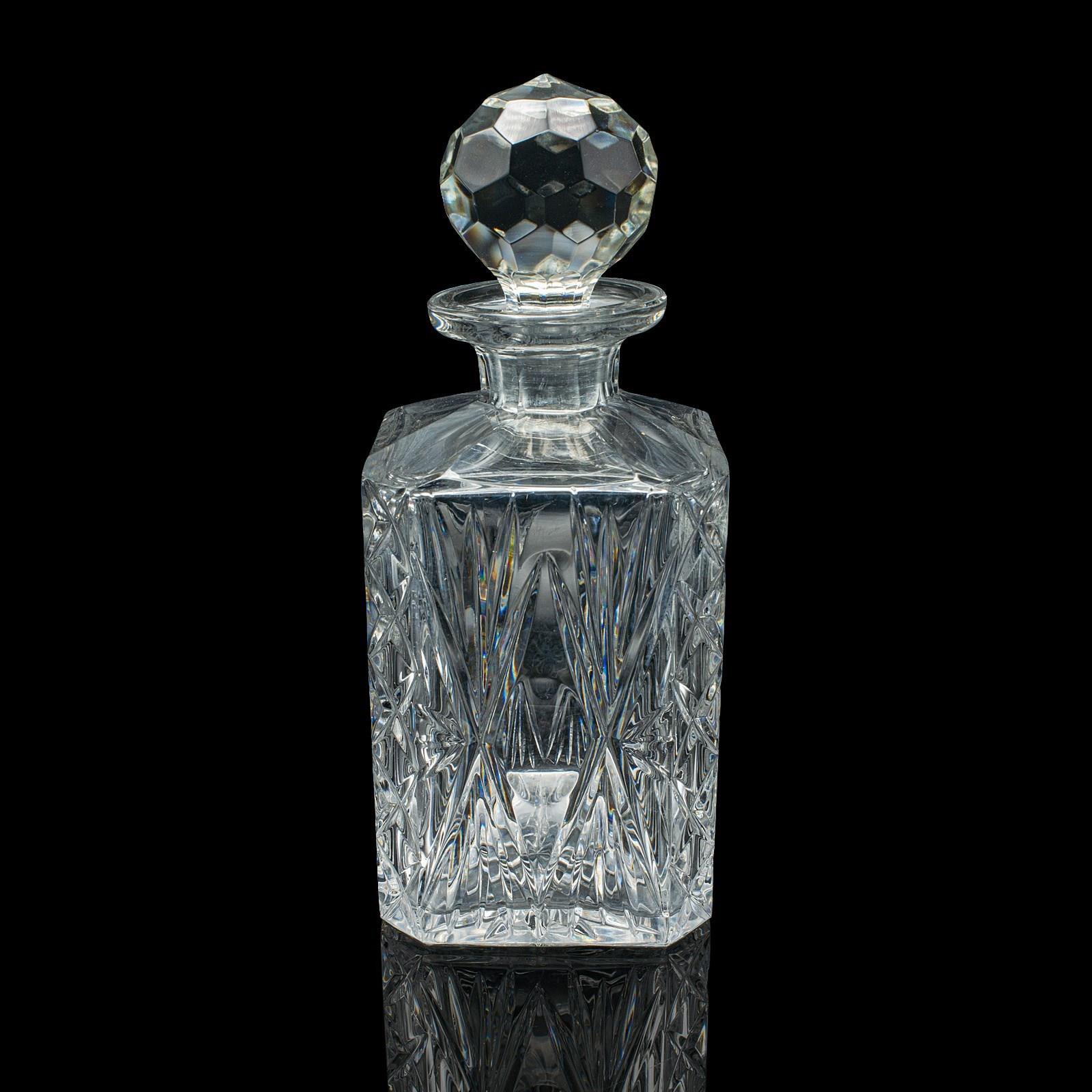 This is a vintage whiskey decanter. An English, cut crystal glass Scotch bottle, dating to the early 20th century, circa 1930. A handsome and tactile example, with bright finish and classic cut detail, ideal for the presentation of fine spirits.