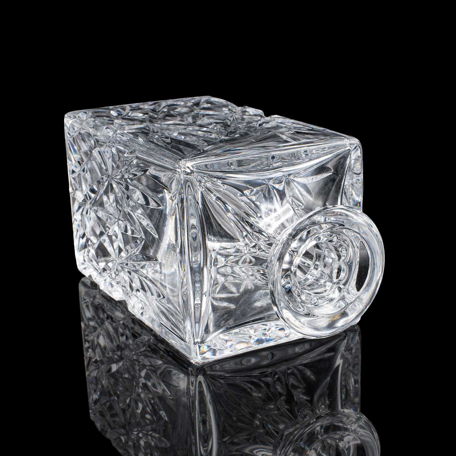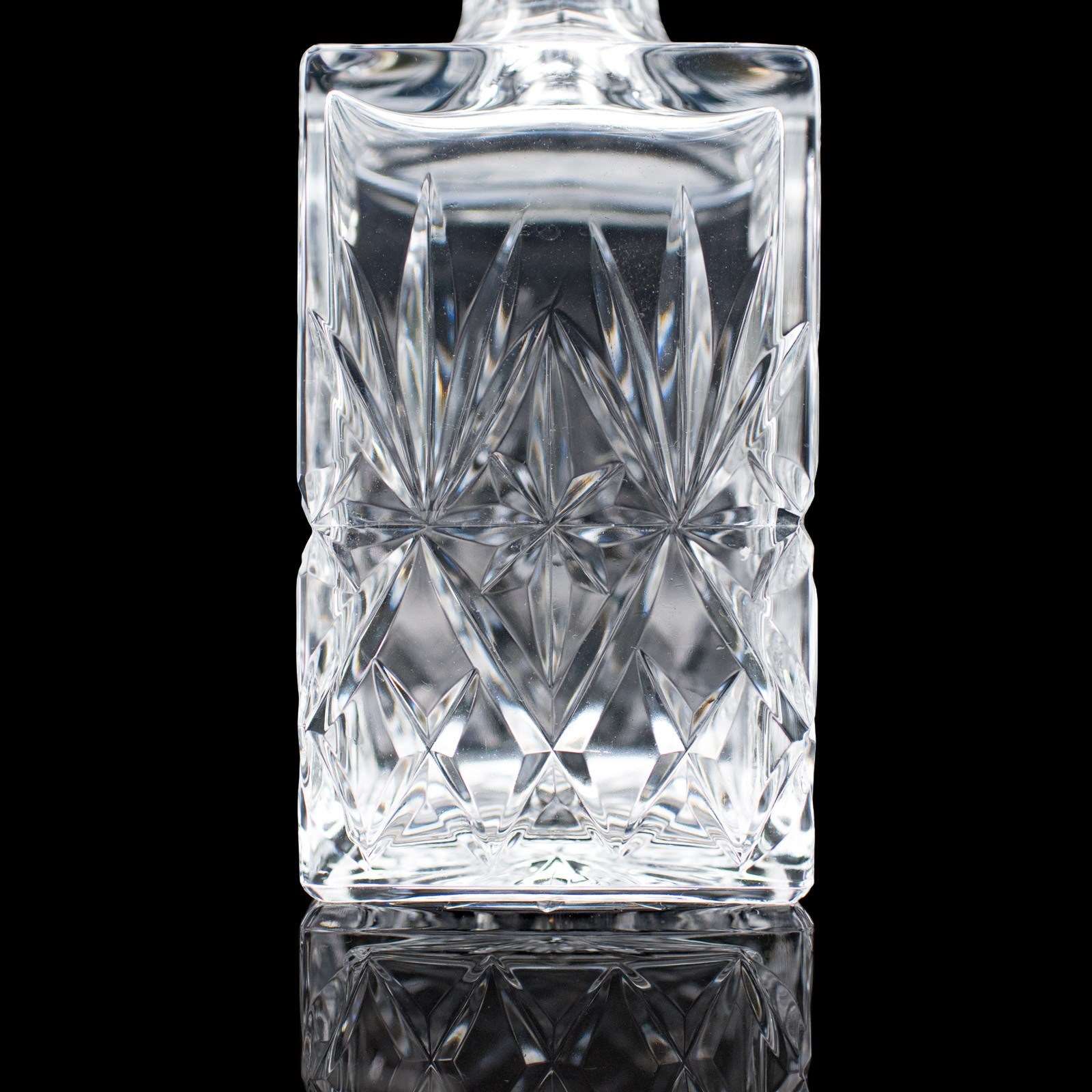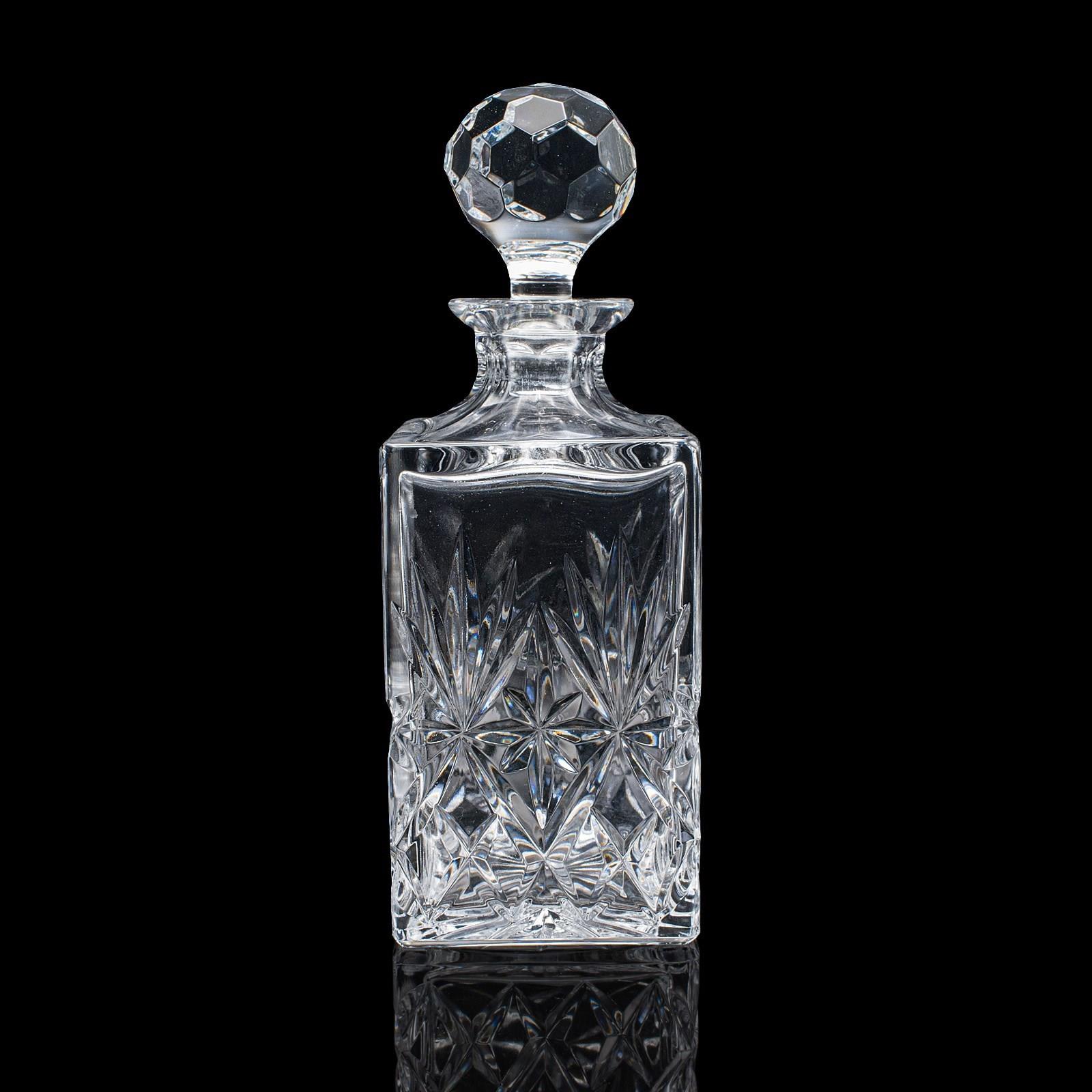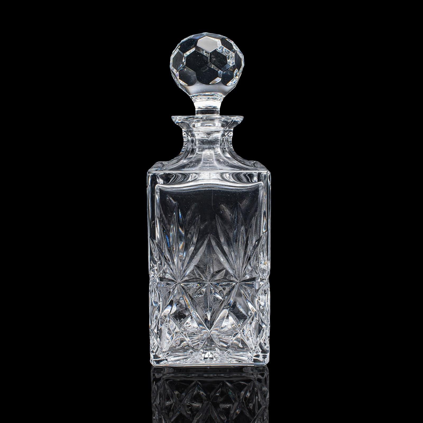 This is a vintage whisky decanter. An English, cut glass Scotch bottle, dating to the late 20th century, circa 1970. A substantial and tactile example, with bright finish and classic cut detail.