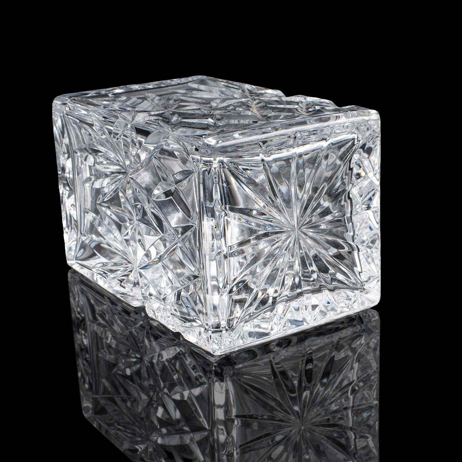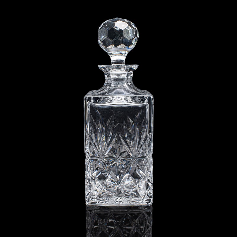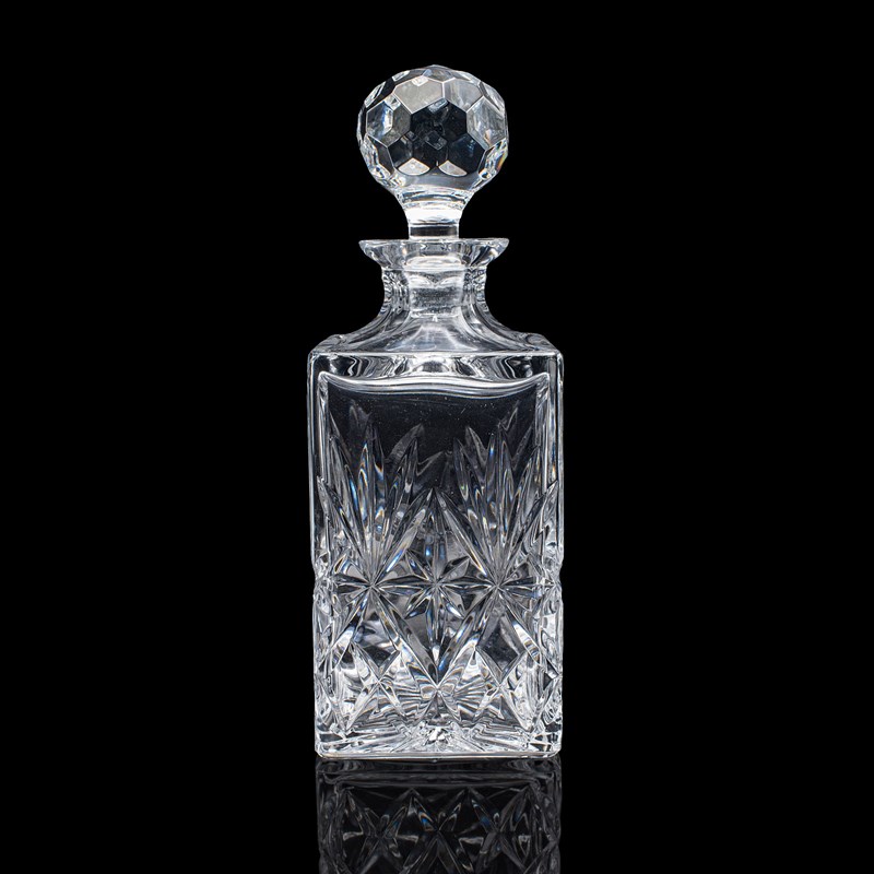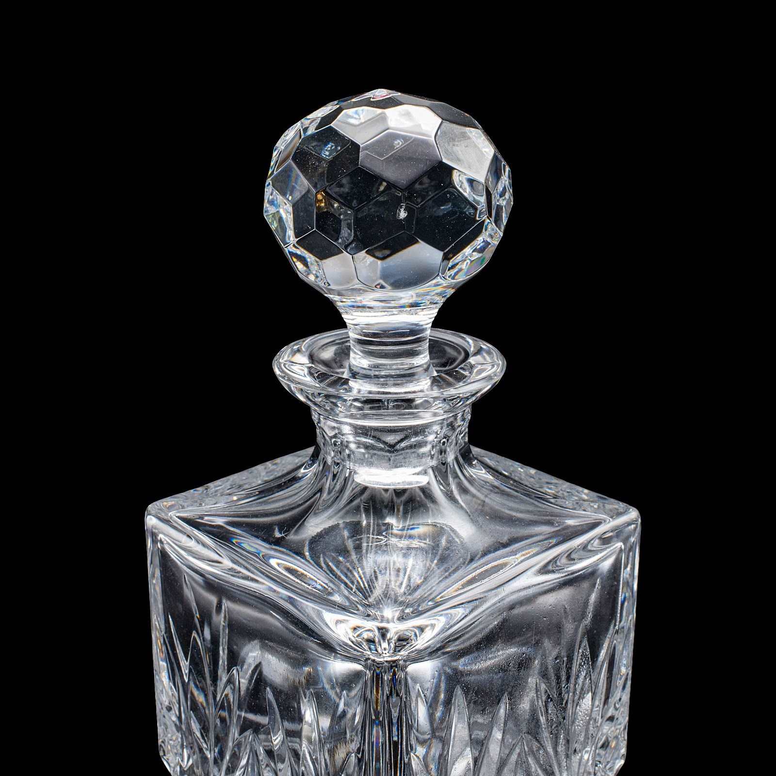 This is a vintage whisky decanter. An English, cut glass Scotch bottle, dating to the late 20th century, circa 1970. A substantial and tactile example, with bright finish and classic cut detail.