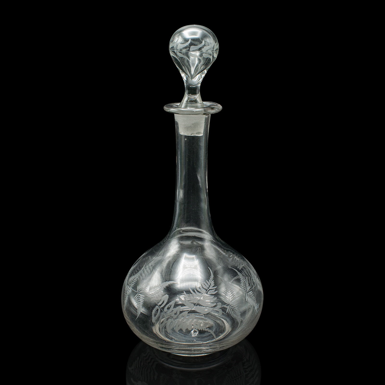 A stylish piece of English mid-century glassware, this etched wine decanter combines timeless elegance and functionality, making it a fine addition to any entertaining space or vintage collection. Delivered ready for the home.