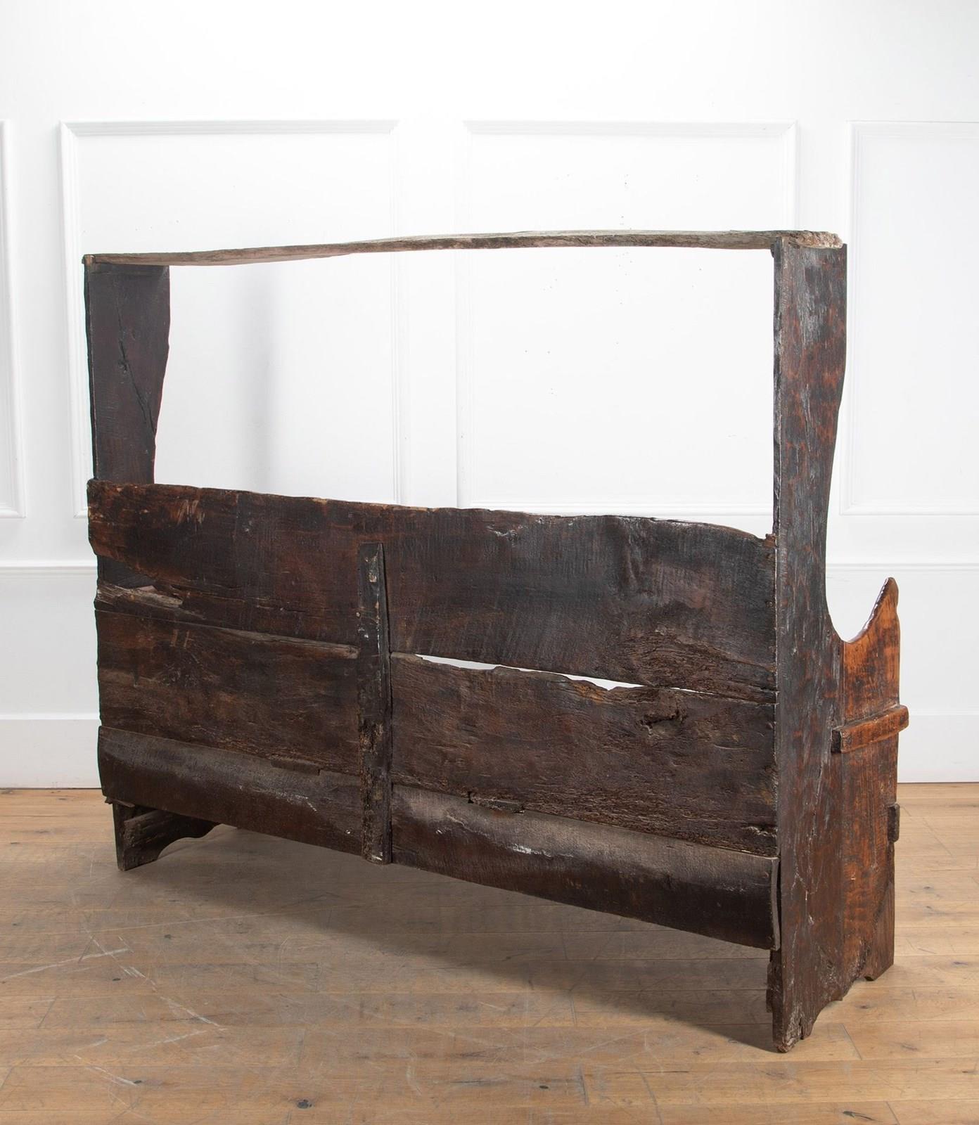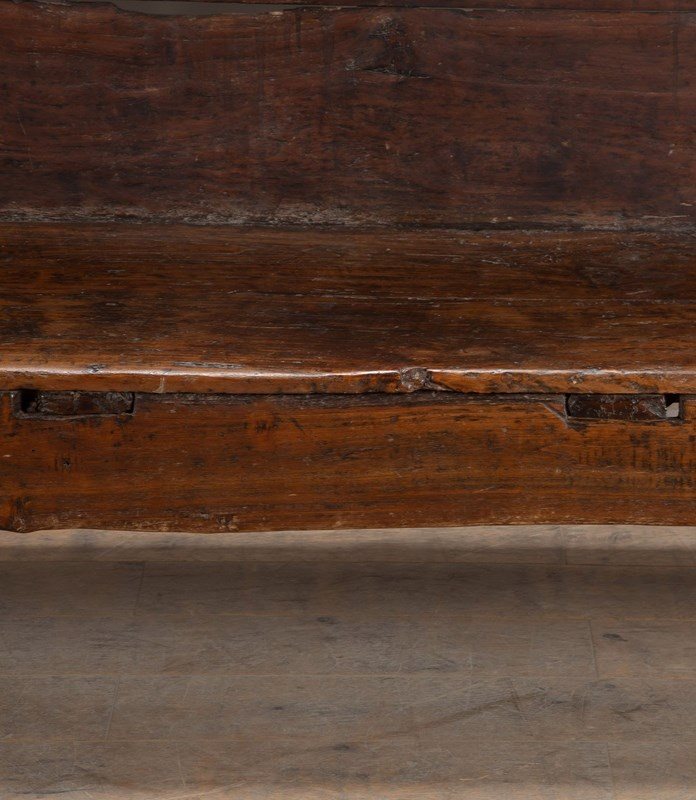 An 18th Century primitive Catalan settle bench with warm tones and fabulous patina.