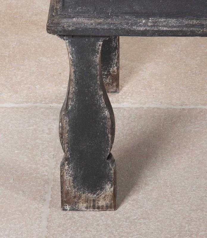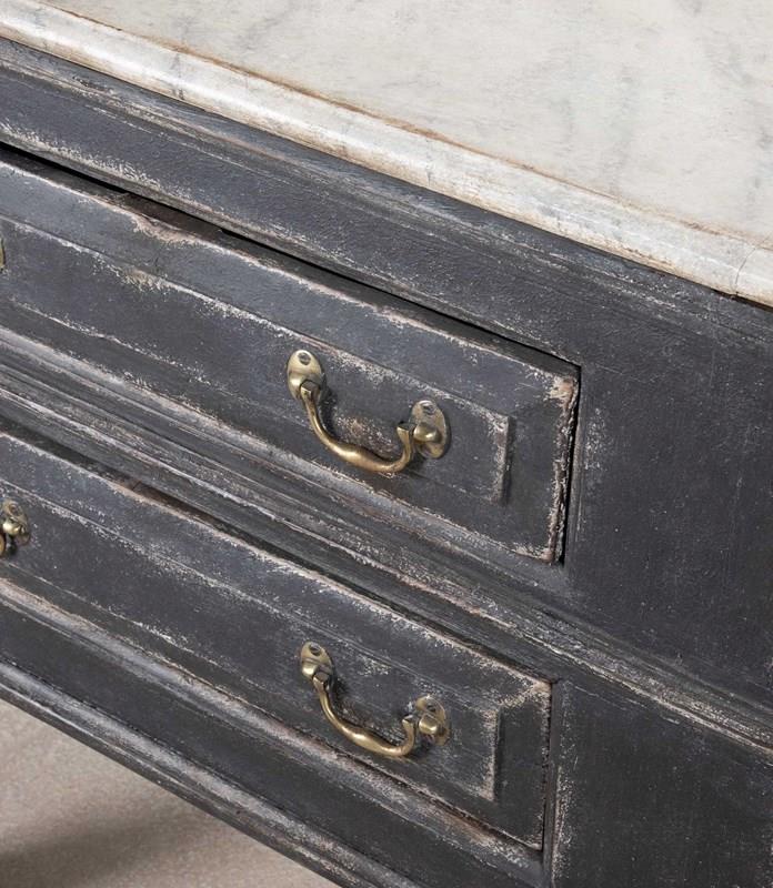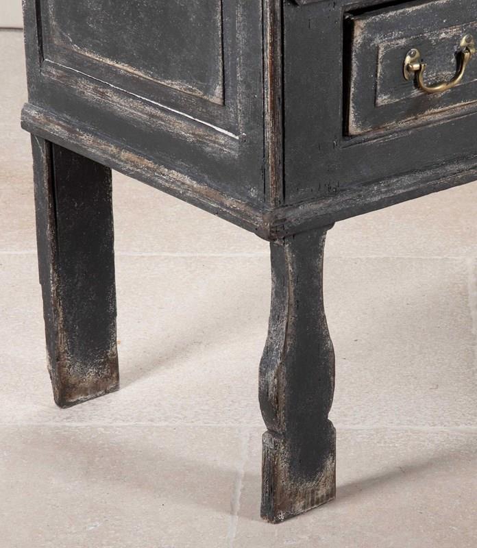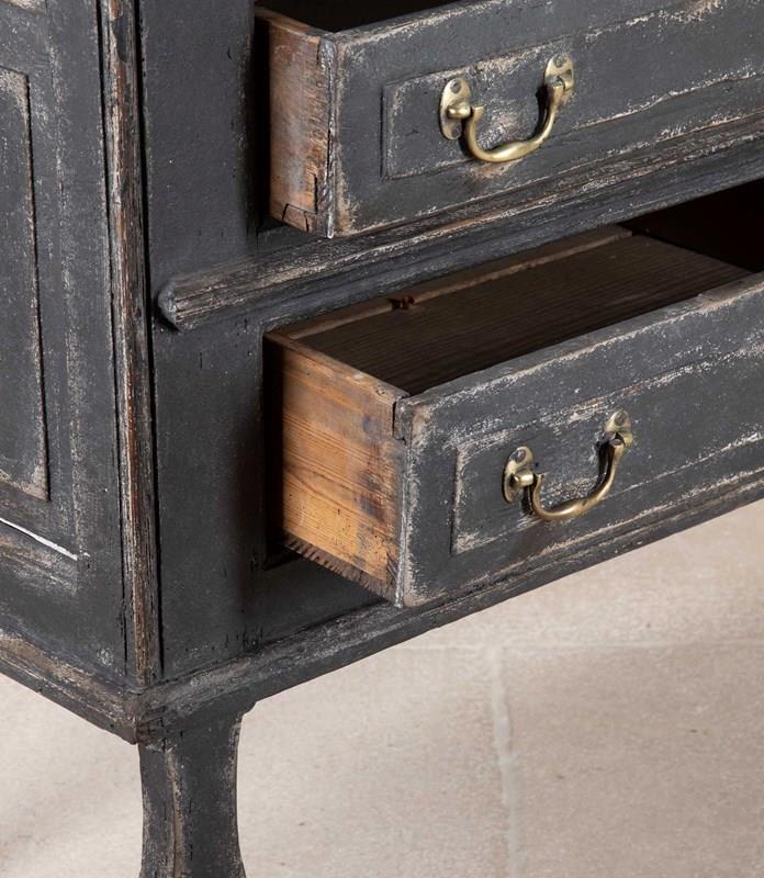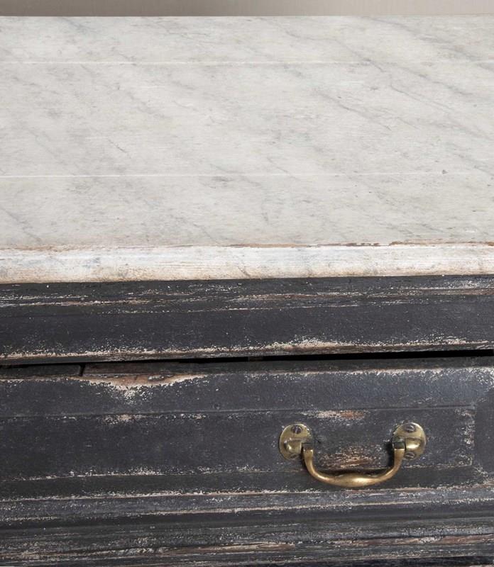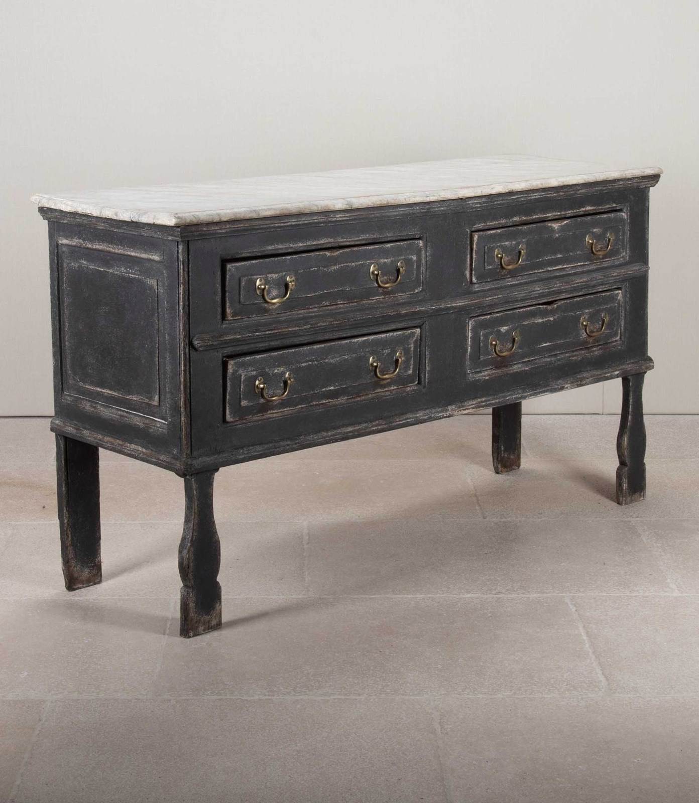 Early 18th Century English silhouette leg pine dresser base. With four drawers and a painted faux marble top. Circa 1730.