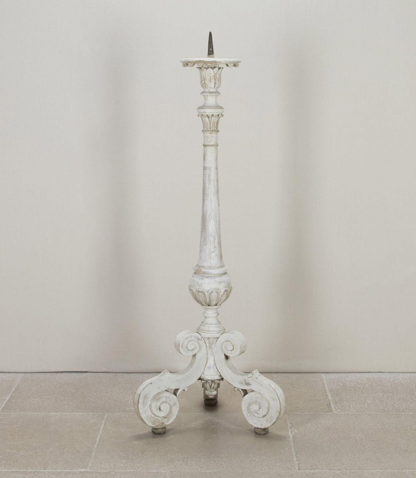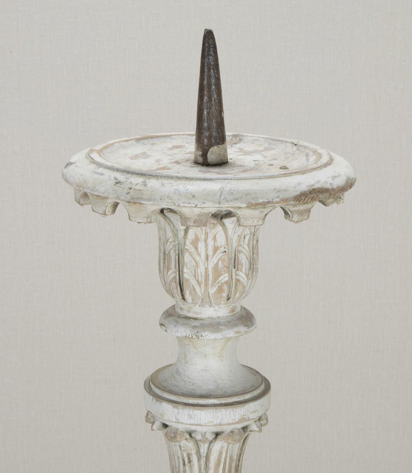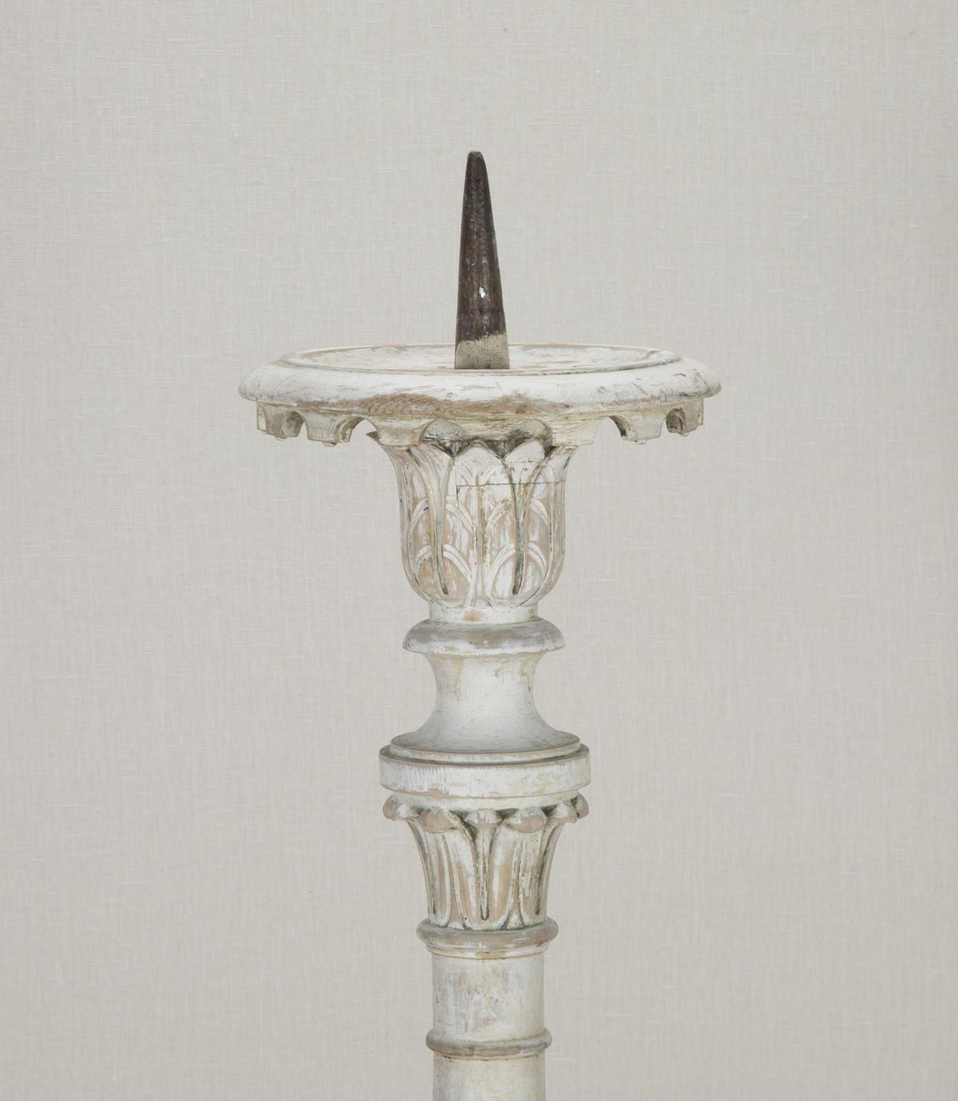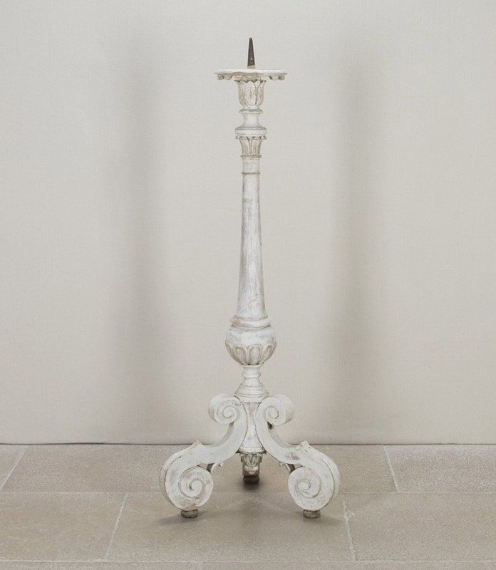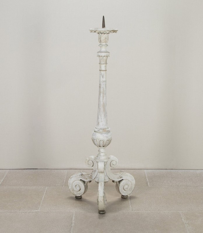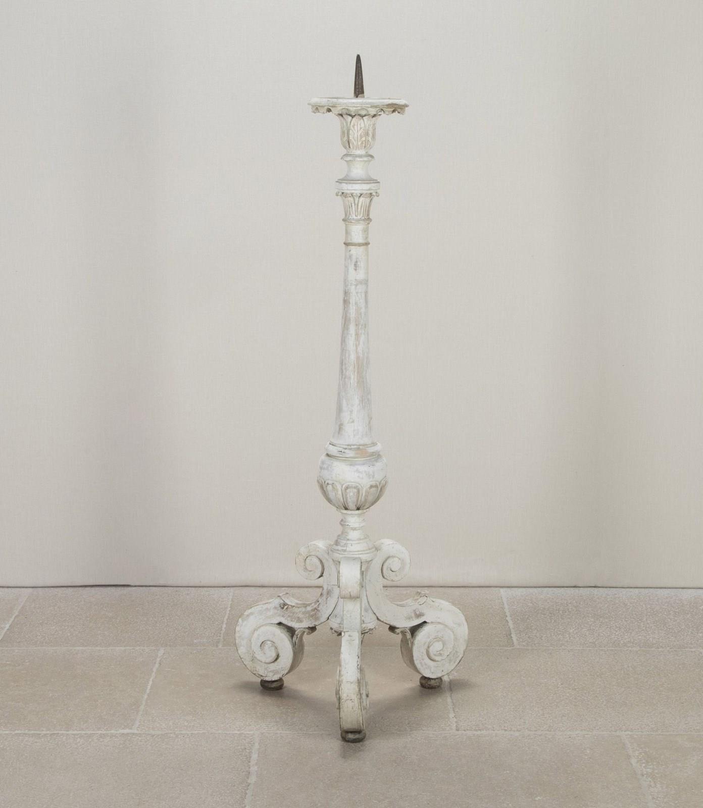 Finely carved 18th Century French floor standing altar candlestick in early paint.
