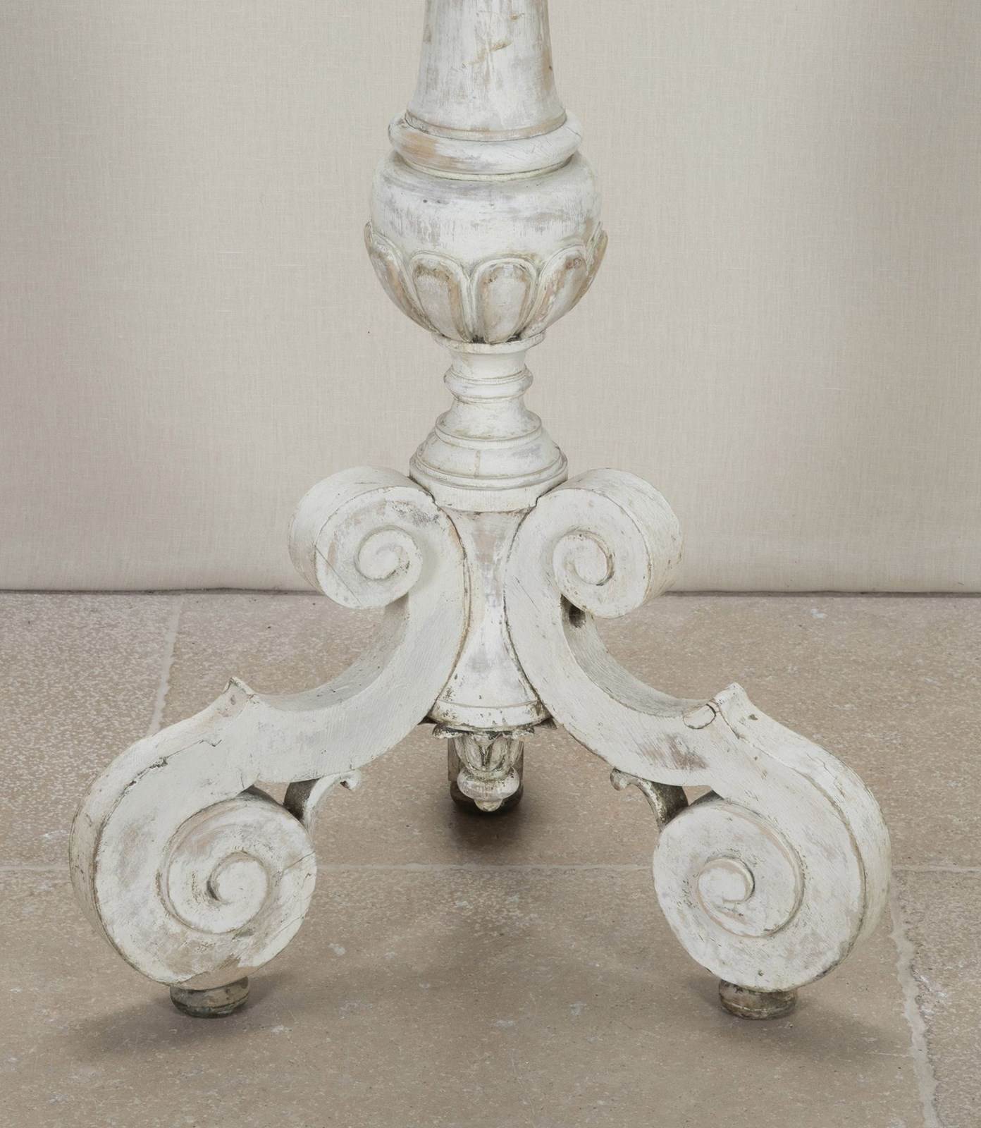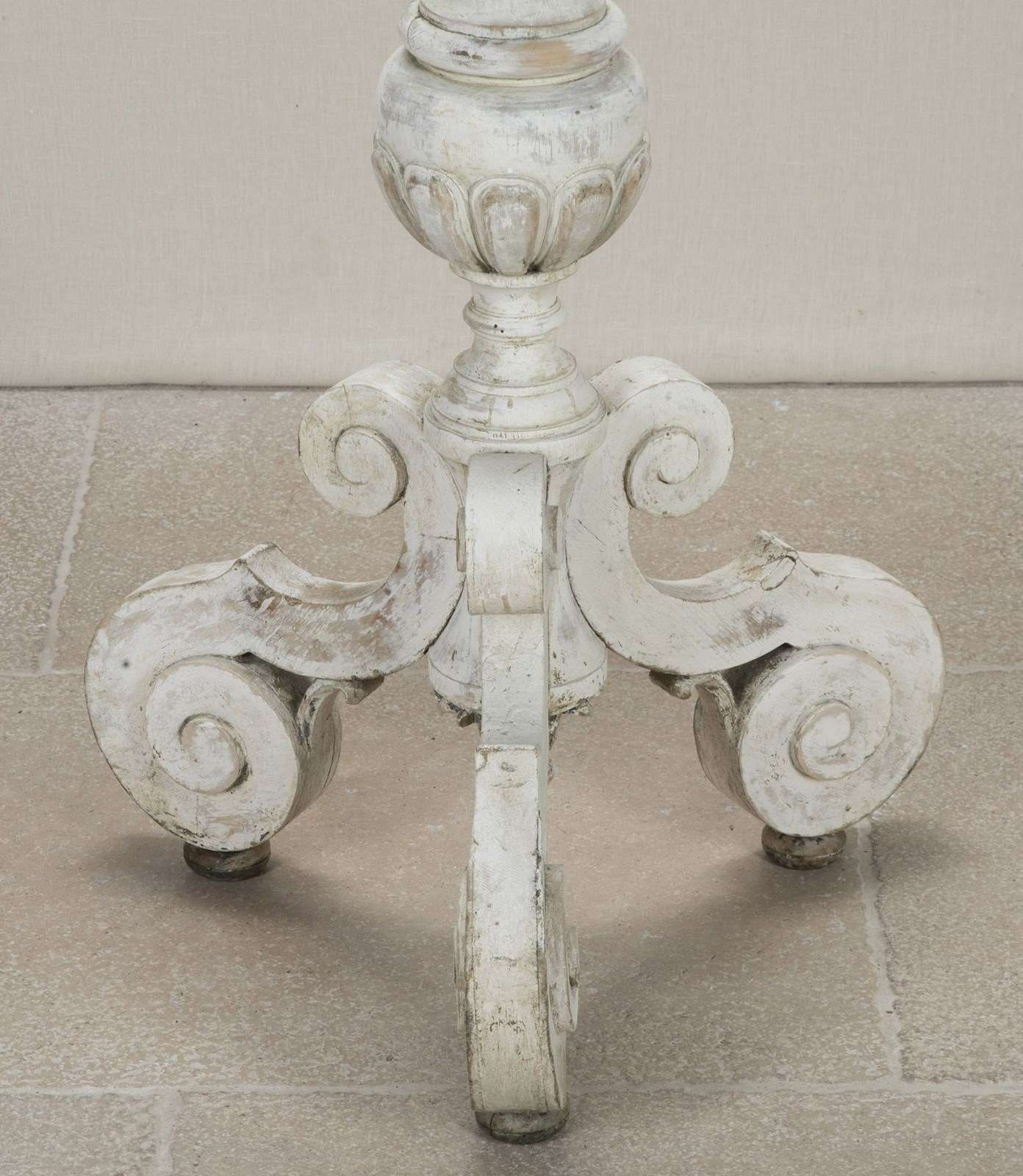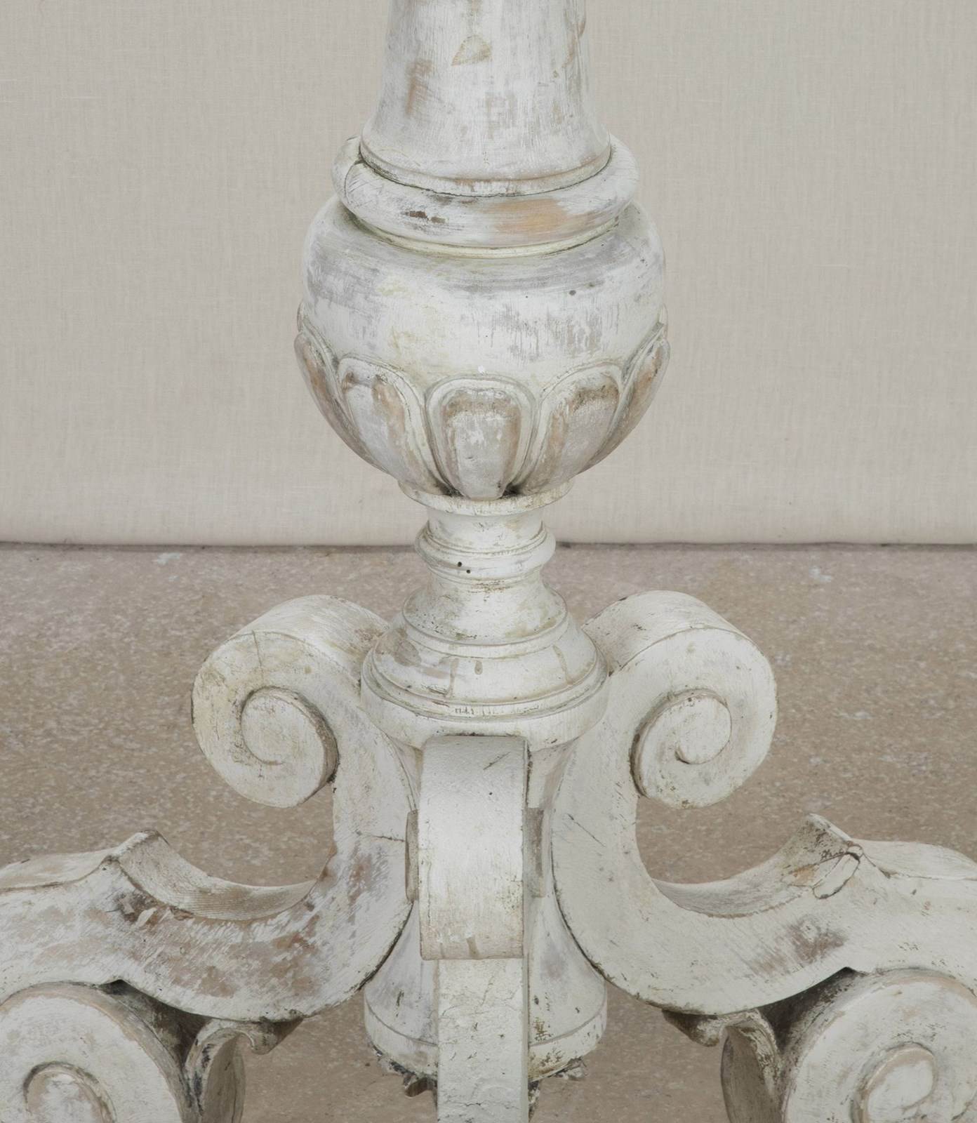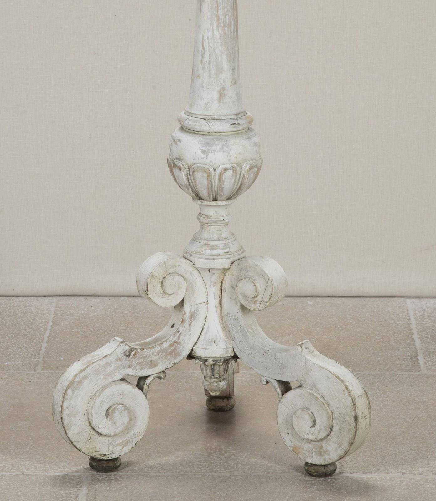 Finely carved 18th Century French floor standing altar candlestick in early paint.