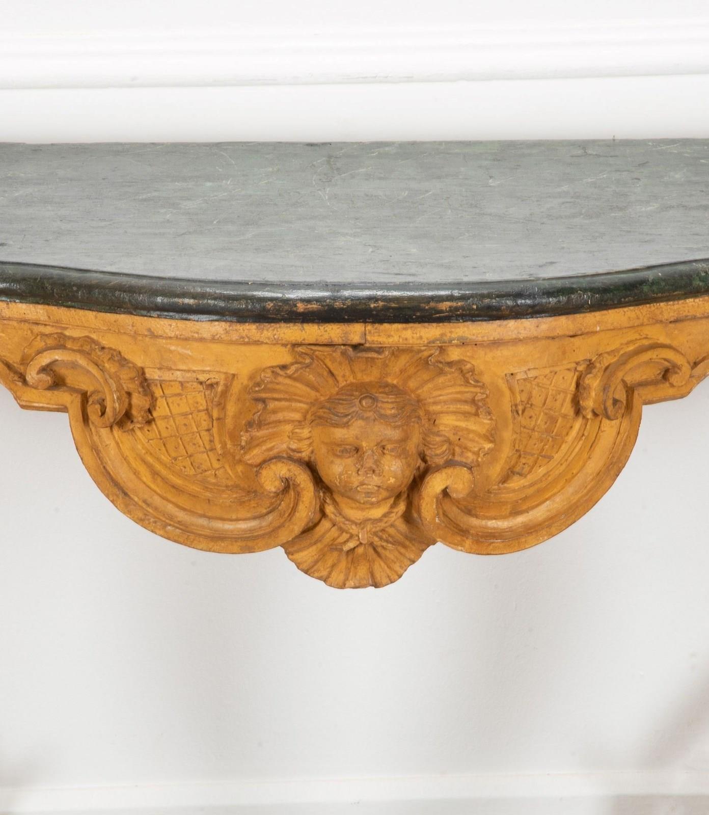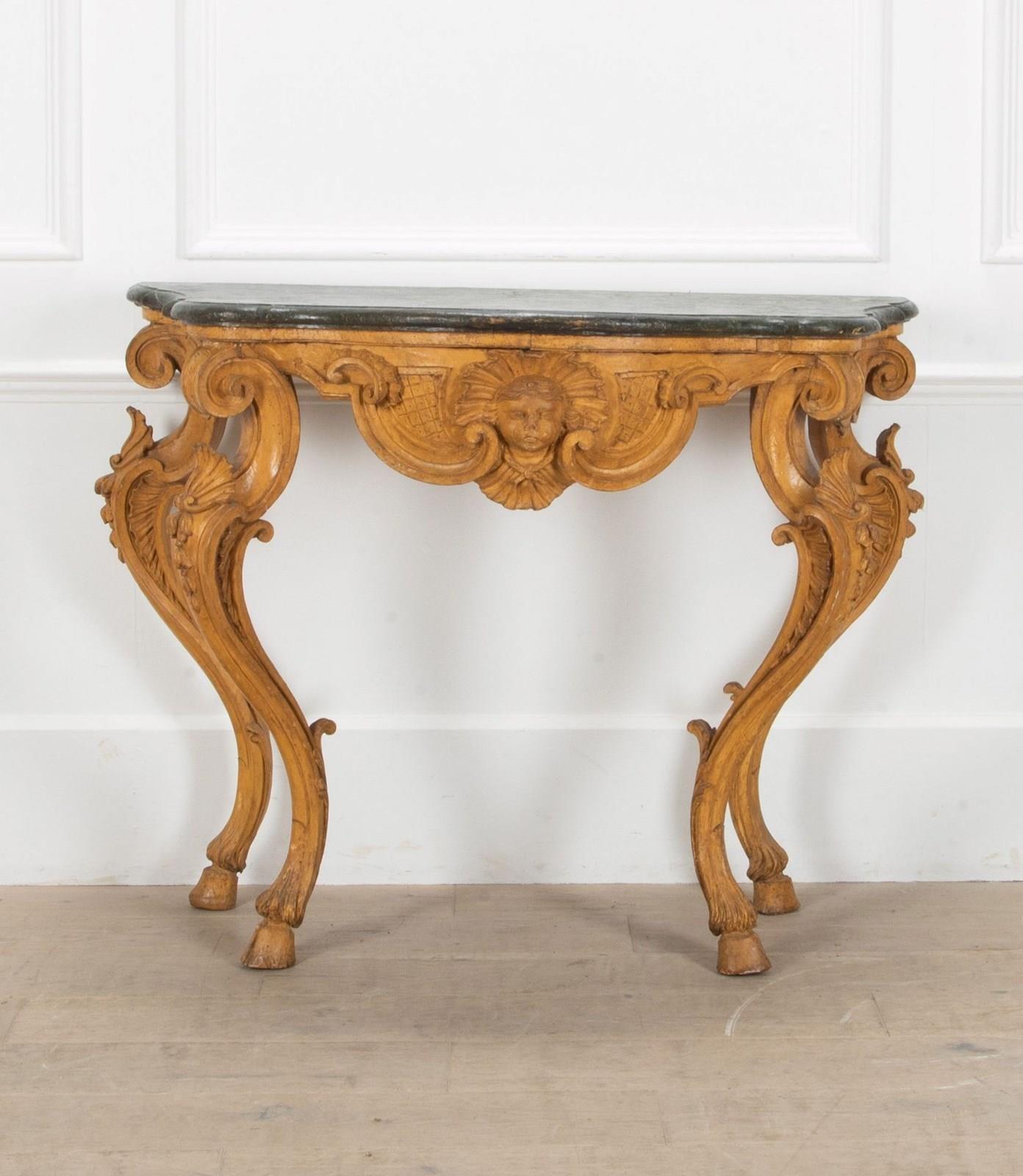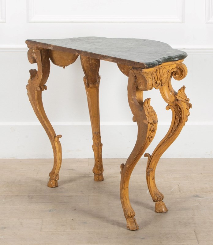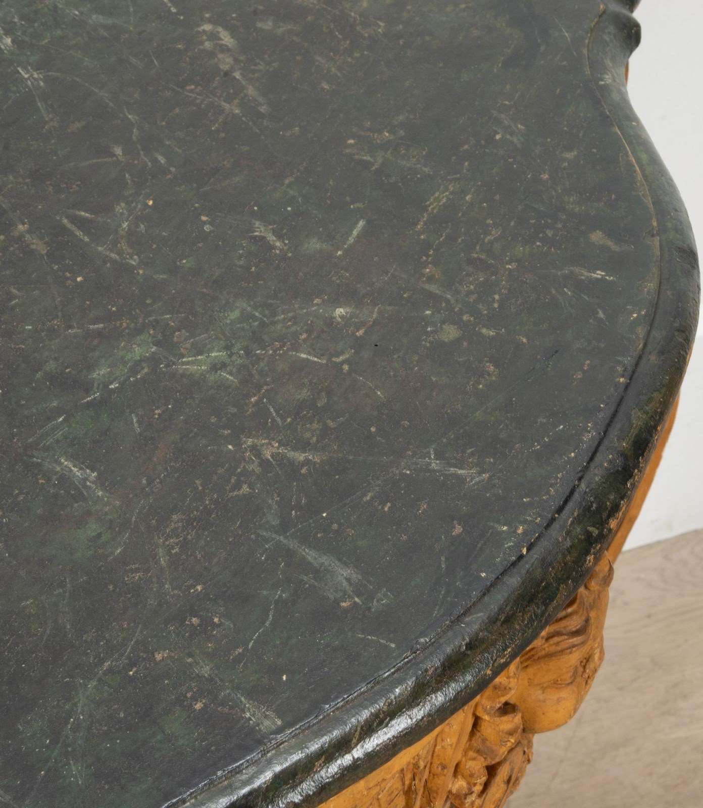 With original faux marble top and incredible carved wooden legs terminating on hairy hoof feet.