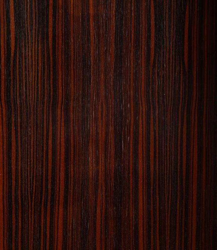 Veneered on all sides in macassar ebony and hinged in simple brass. This is an exceptional piece of mid-century simplicity allowing the beauty of the wood to dominate the piece.