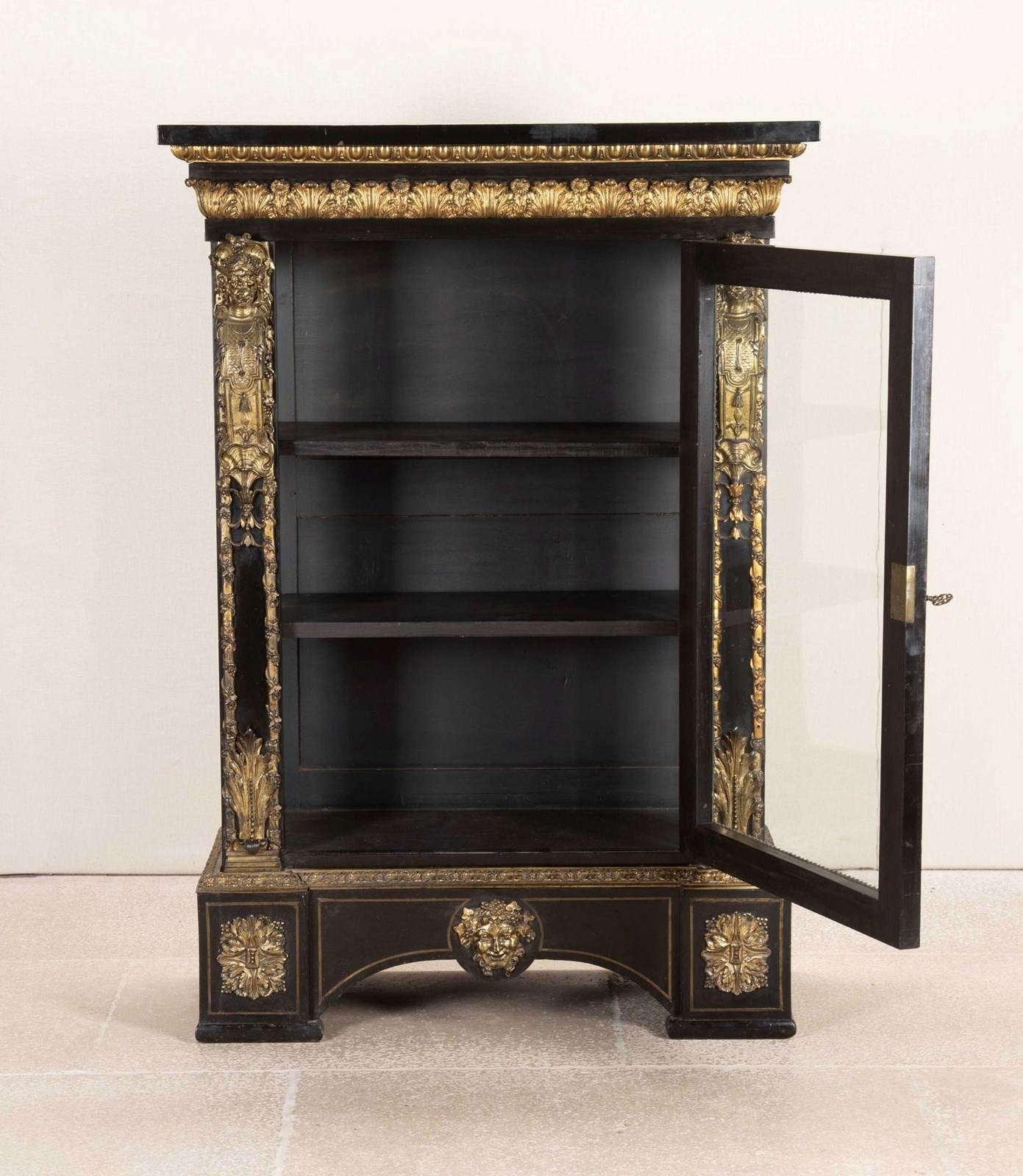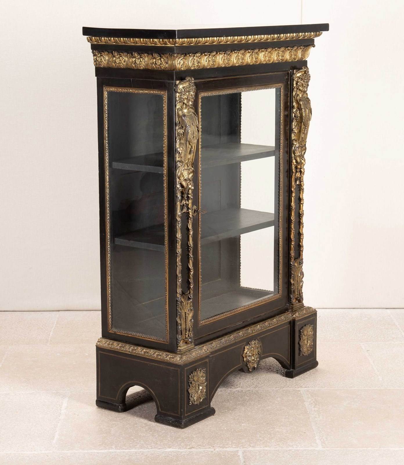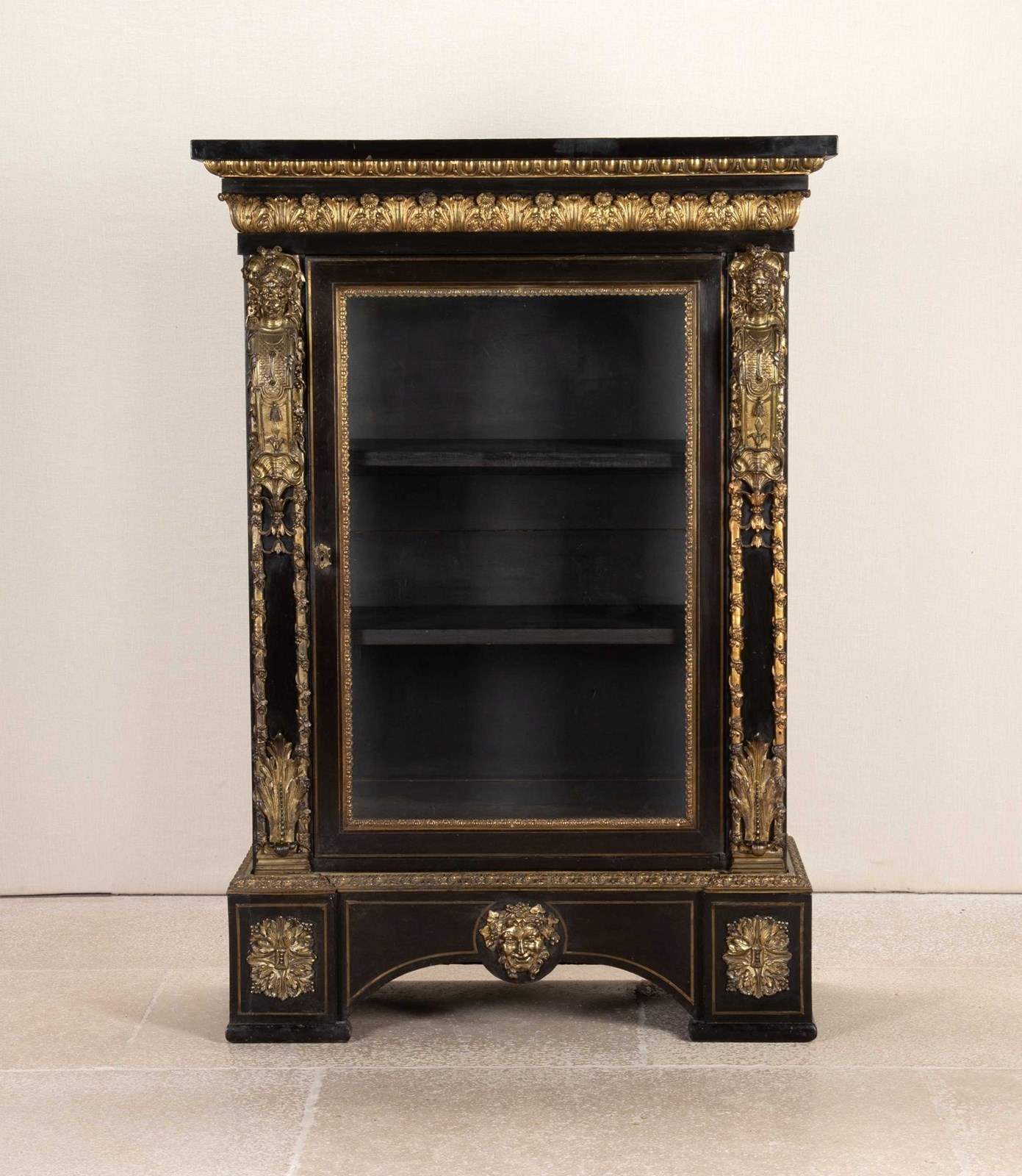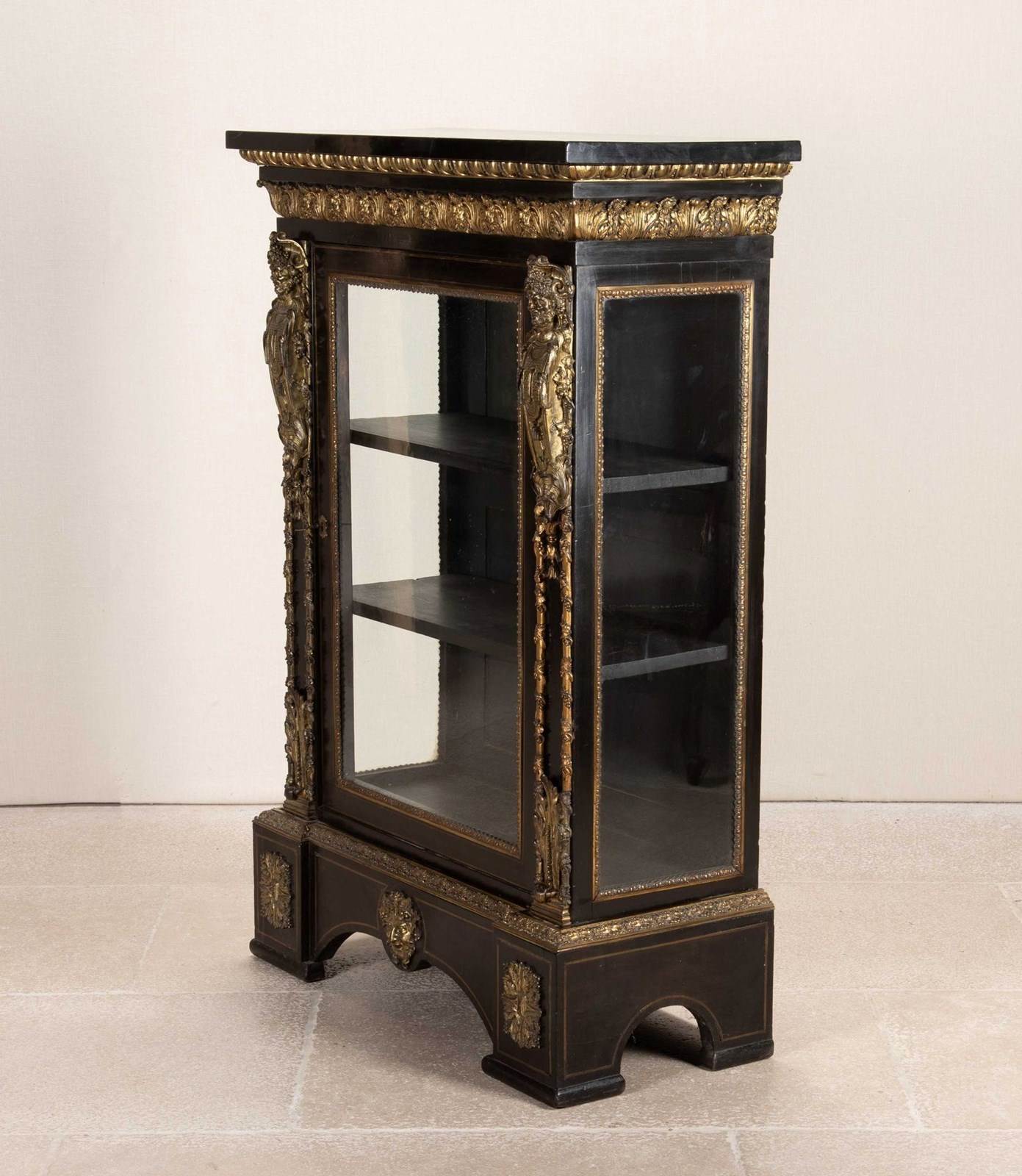 19Th Century French Ebonised Pier Cabinet With Gilt Bronze Decoration