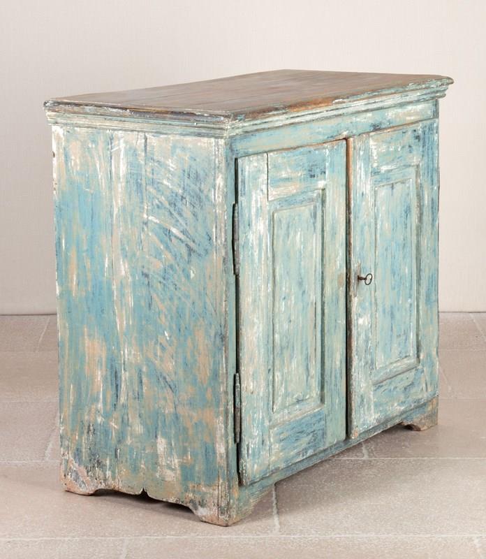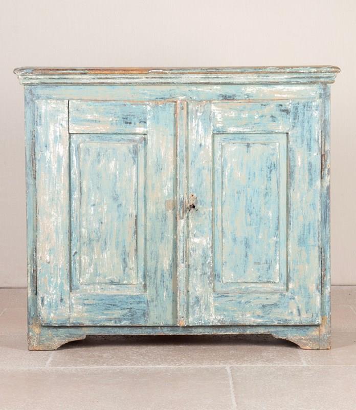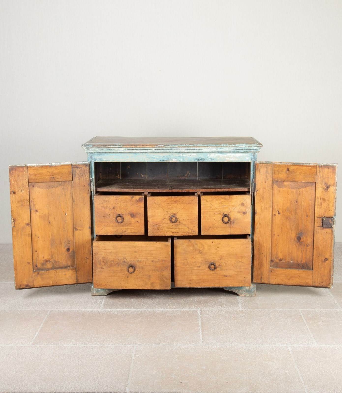 19th Century Italian buffet from the Dolomites with blue painted decoration.