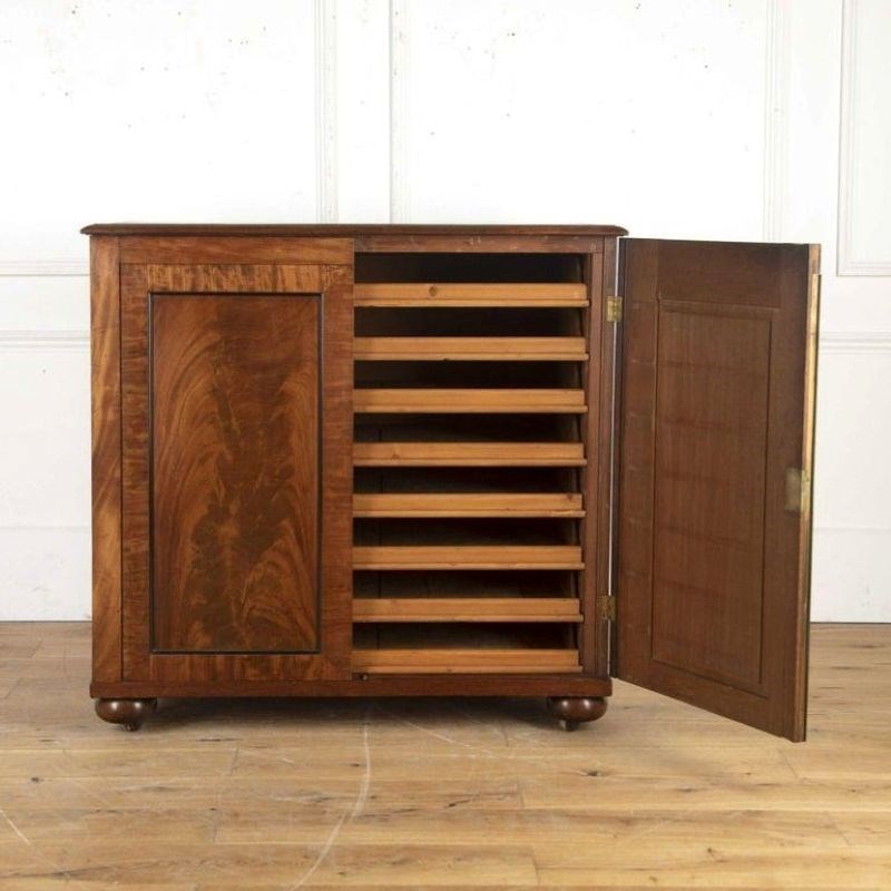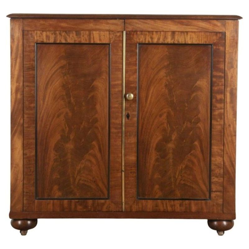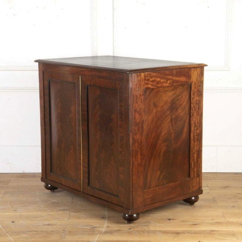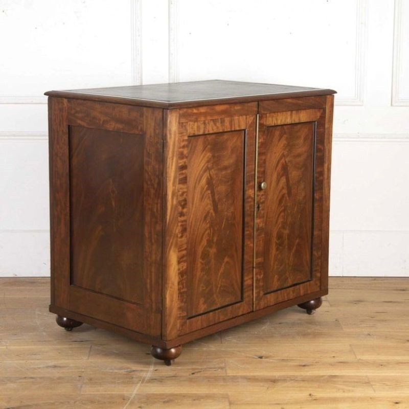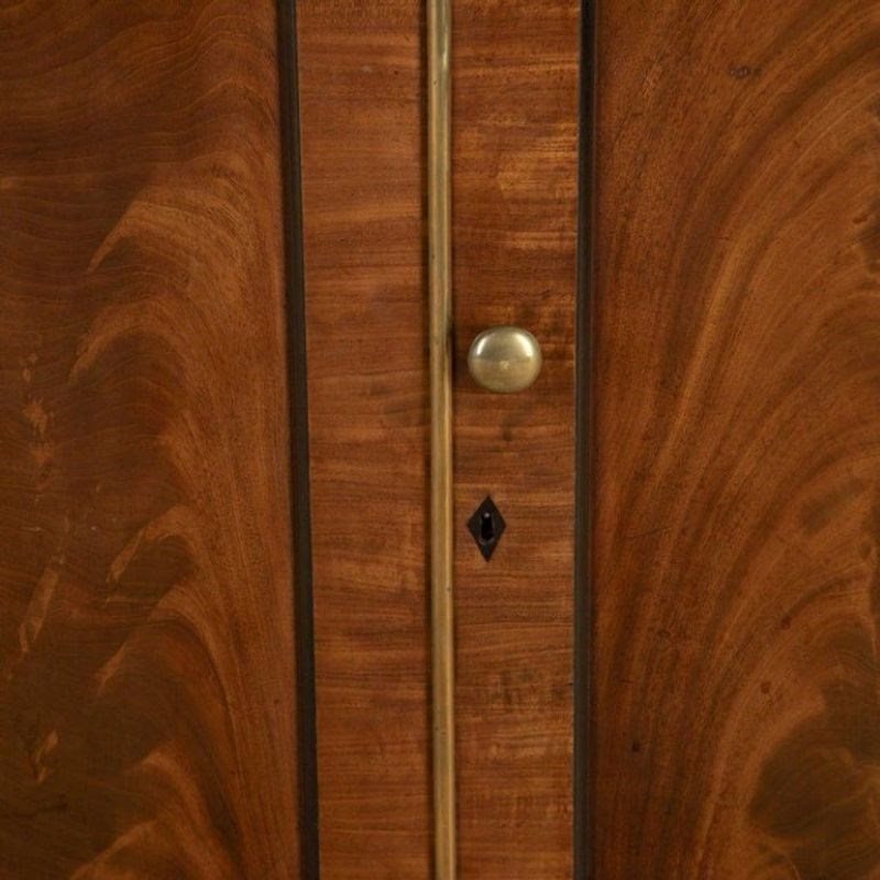 The sides and back are also panelled and this cabinet has been polished in the round, so it will happily stand in the middle of a room. This piece has simply stunning graining and colour throughout. With great compact proportions, it will be a fine addition to any home office or library setting.