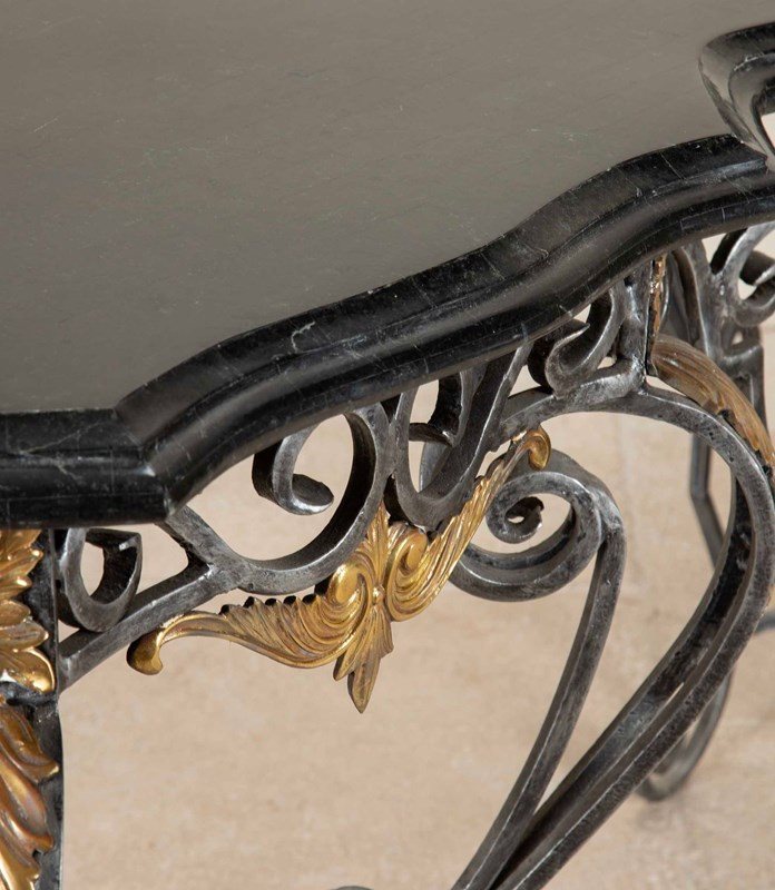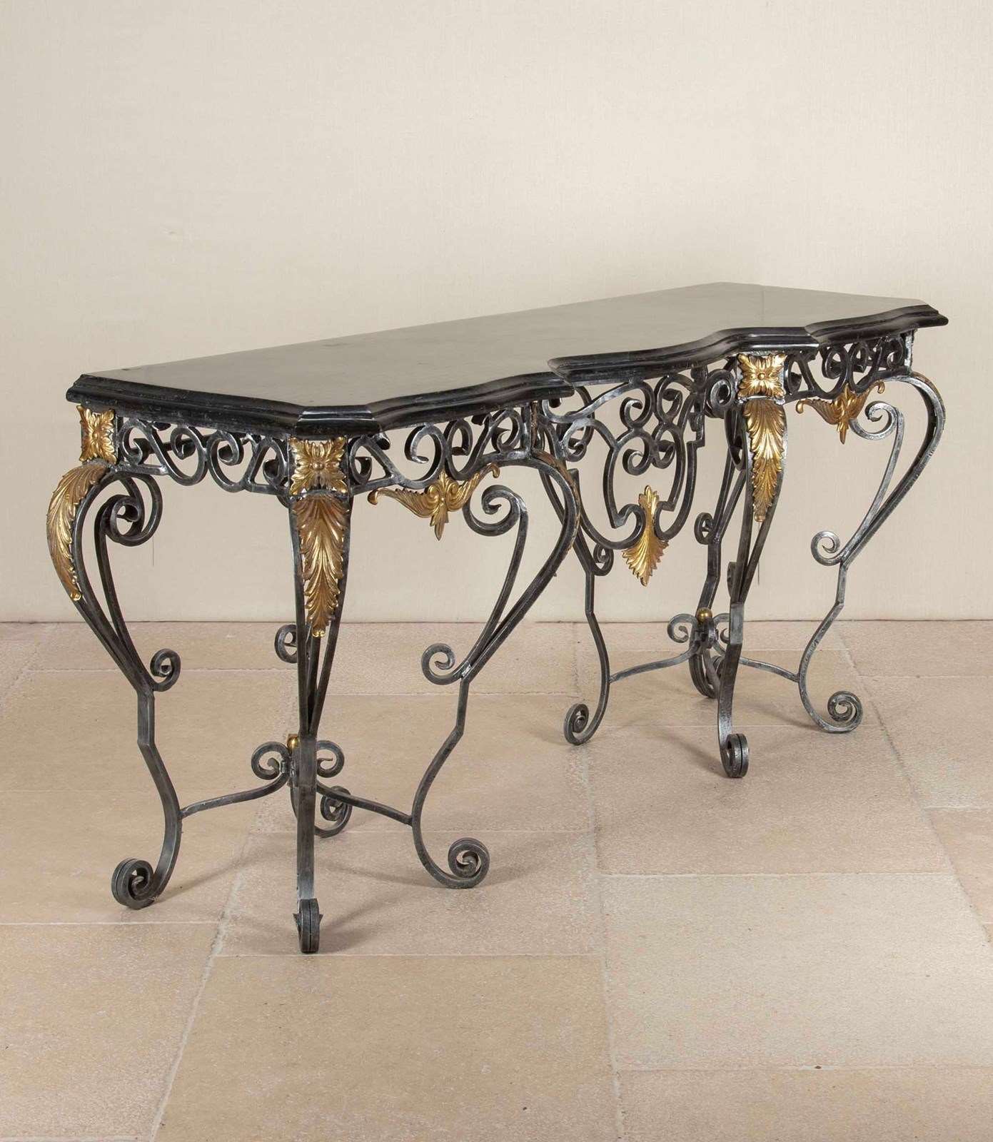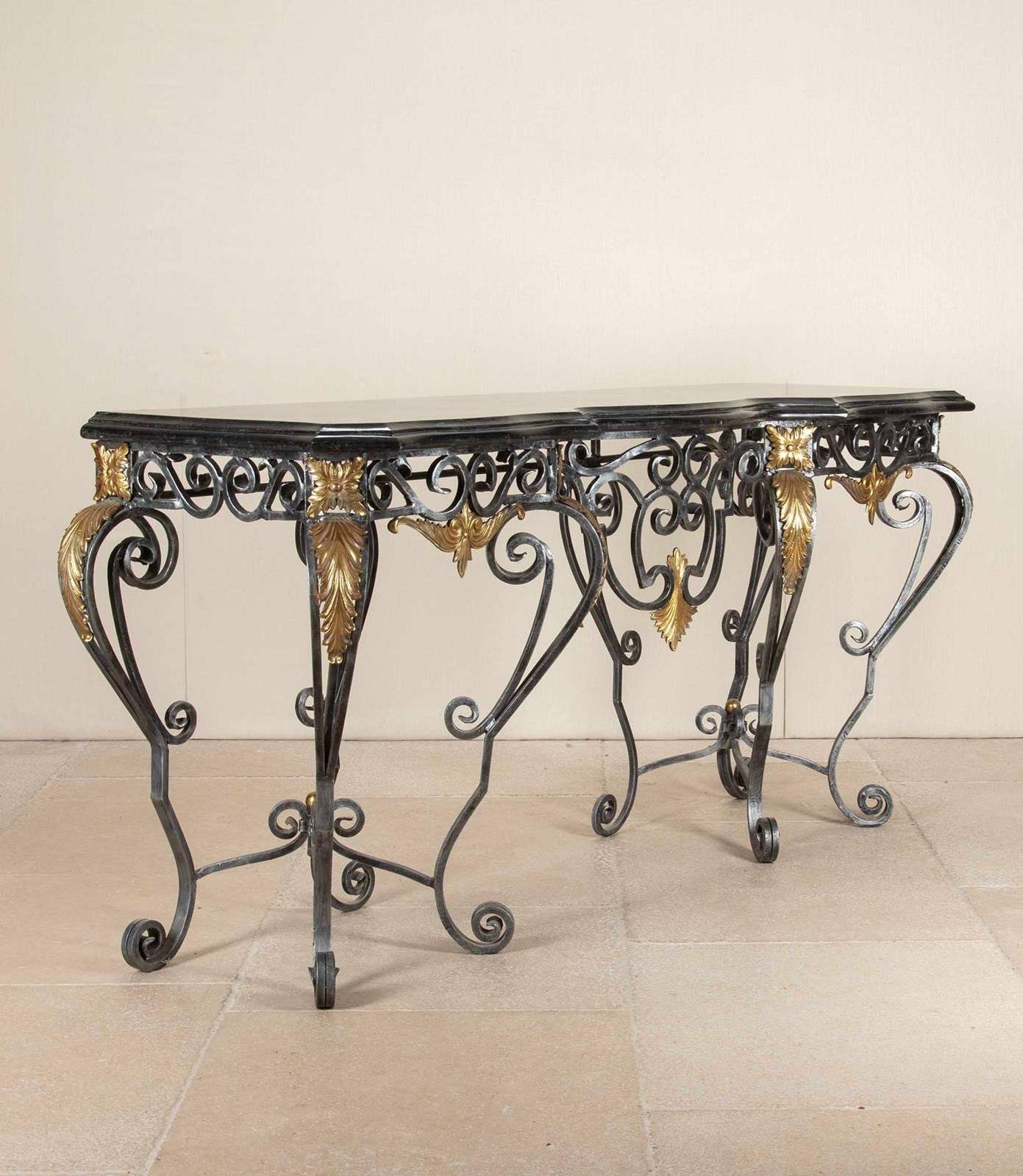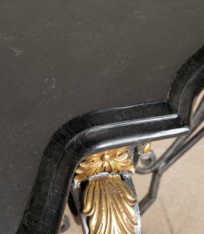 A substantial 20th Century French iron brass and tessellated marble console table.