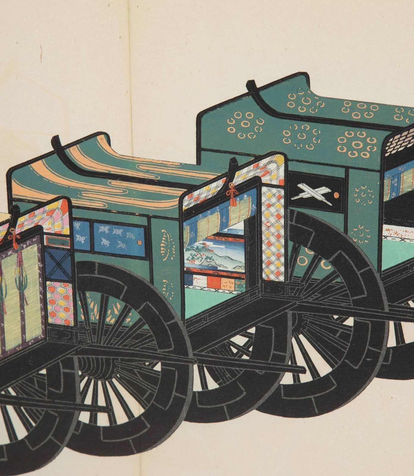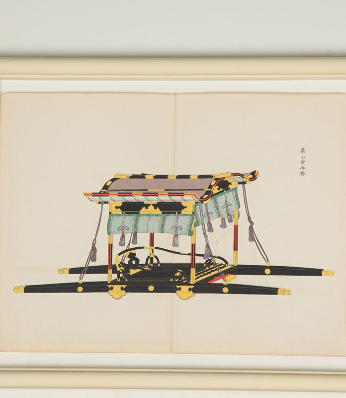 In sumptuous colours of traditional palanquins and ceremonial carriages published by Yoshikawa Hanshichi, Tokyo, 1900.