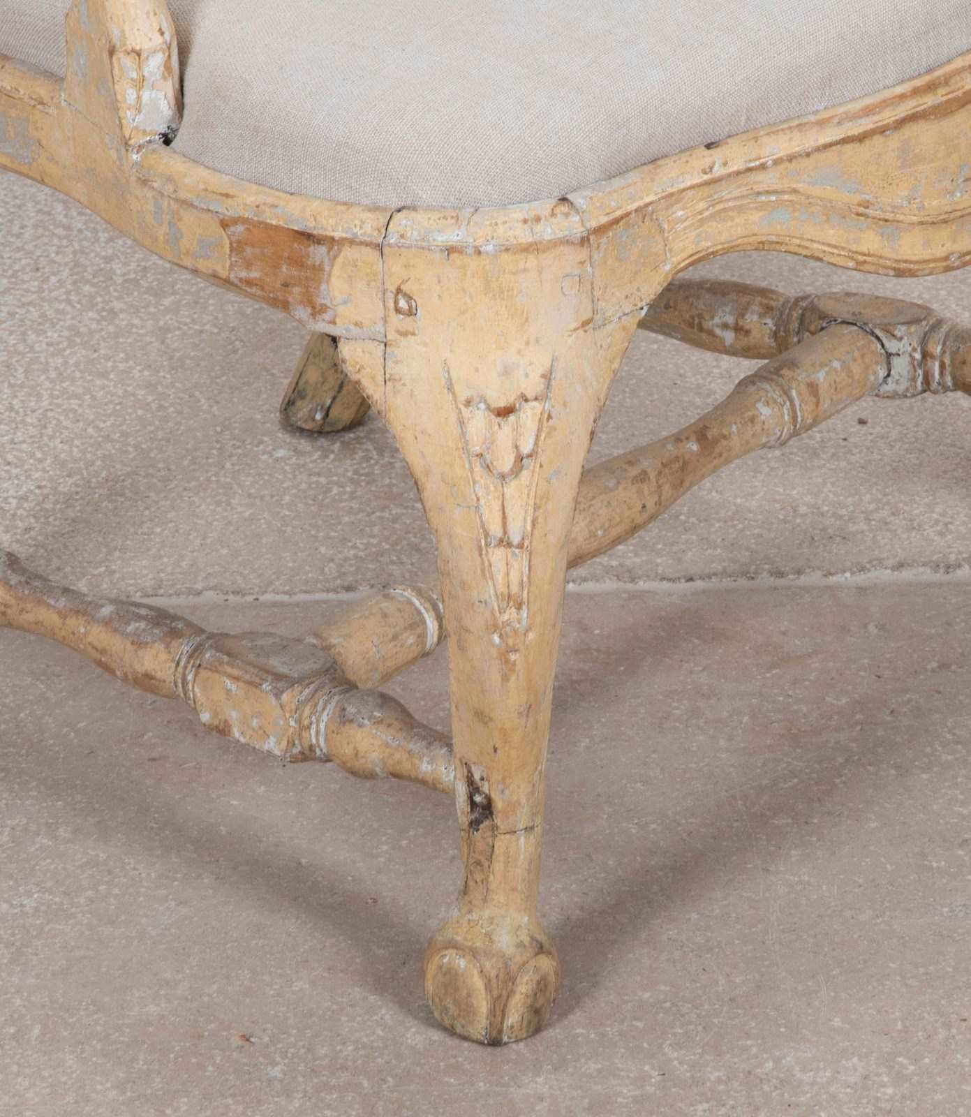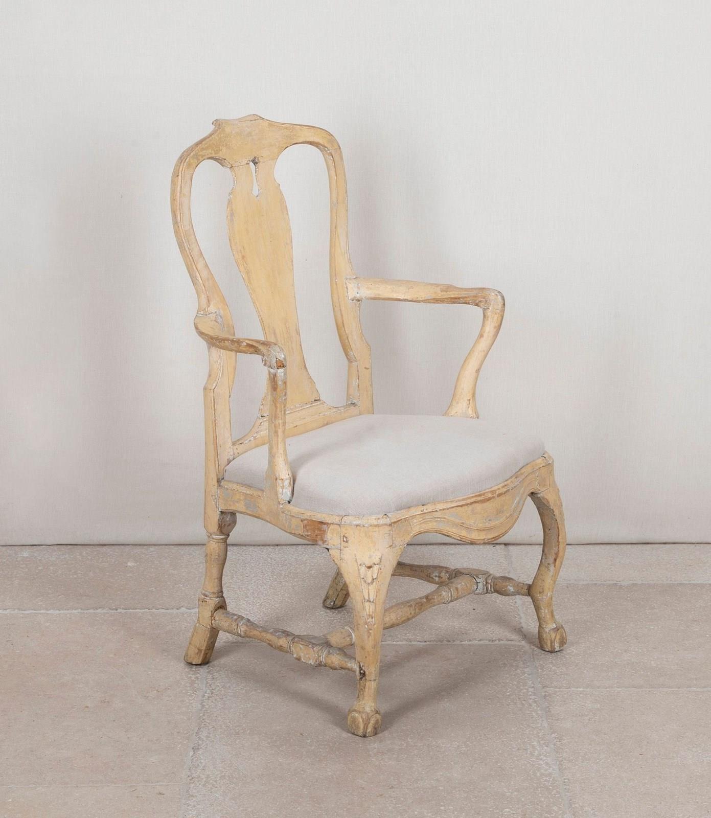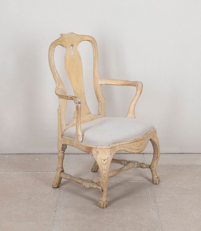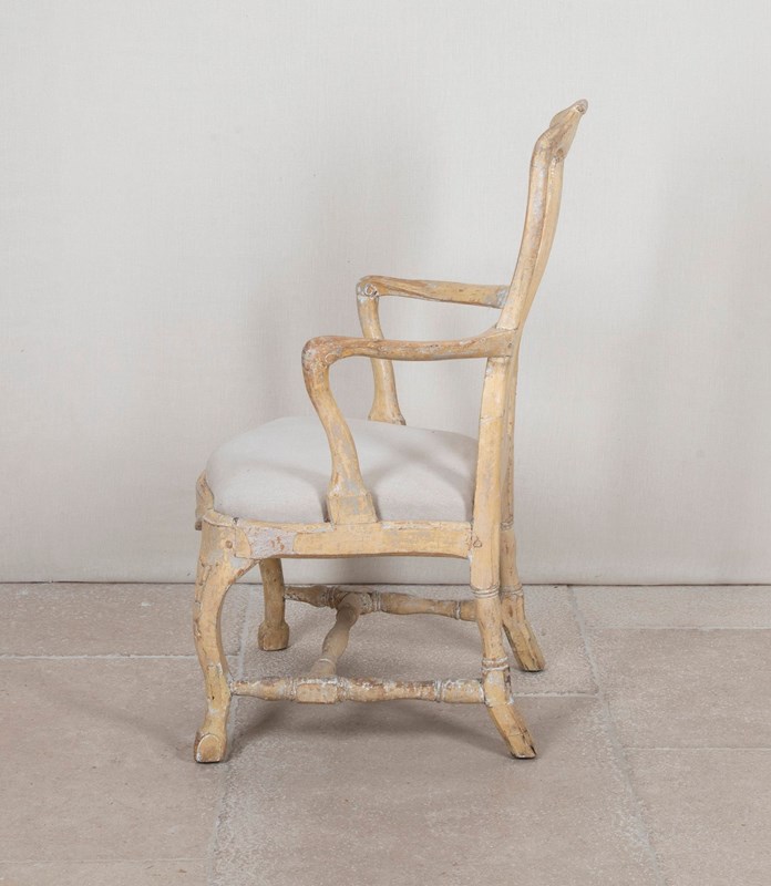 Early 19Th Century Swedish Rococo Painted Open Armchair